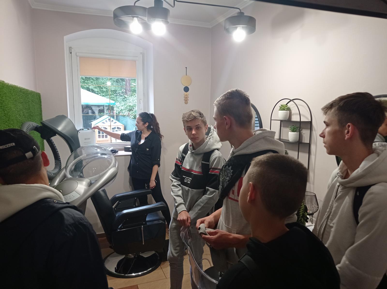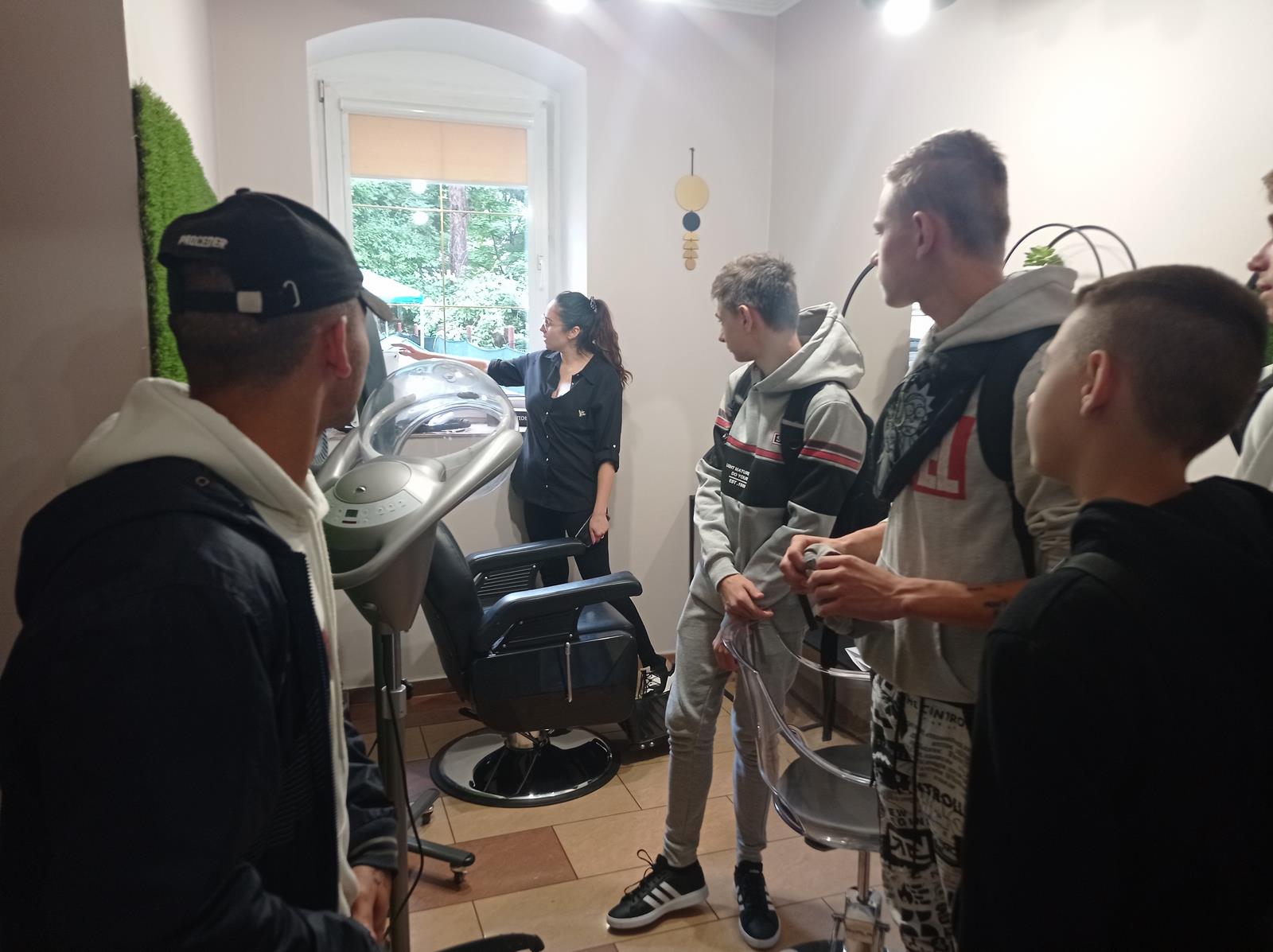 W ramach tematu z doradztwa zawodowego „Zawody wokół nas”, doradca zawodowy Pan Sławomir Kudliński zorganizował uczniom klas 8 szkoły podstawowej wycieczkę do Salonu Fryzjerskiego „URODA” Pani Barbary Walczak w Grodkowie.