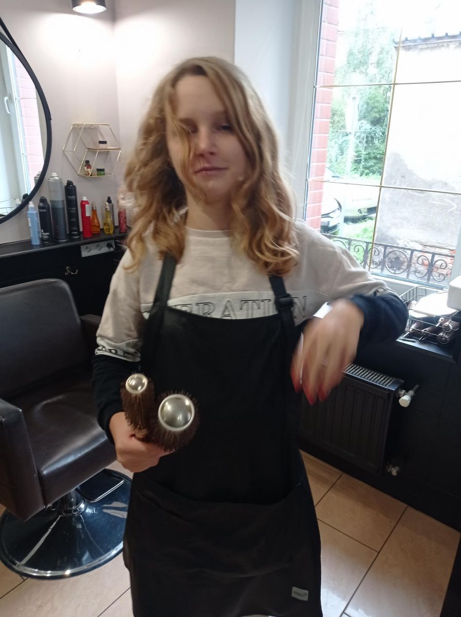 Uczniowie zapoznali się ze specyfiką zawodu fryzjera, poznali narzędzia pracy, nowoczesne urządzenia pielęgnujące włosy, a także omówiono najnowsze trendy w koloryzacji. Nie zabrakło również słodkiego poczęstunku. Za co bardzo dziękujemy!