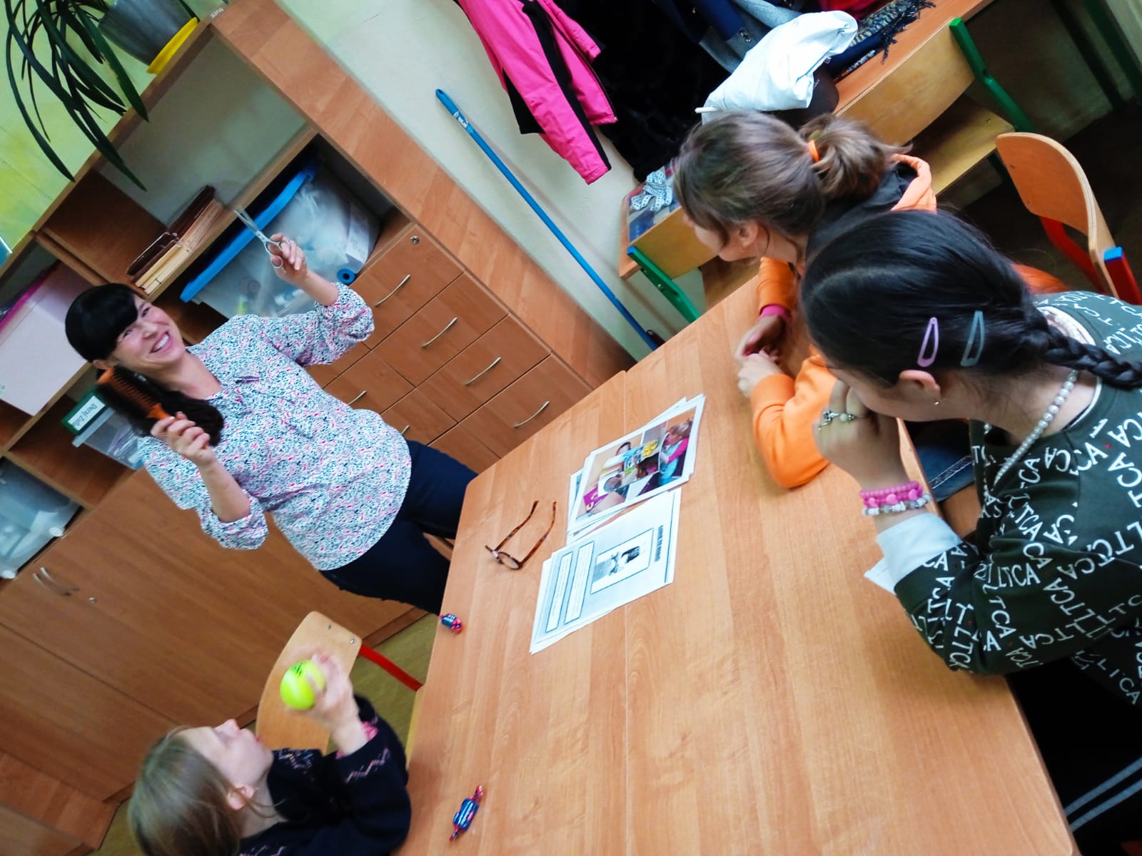 Celem zajęć było rozpoznawanie własnych zainteresowań, zdolności i predyspozycji zawodowych poprzez aktywny udział w przygotowanych zajęciach warsztatowych. Uczennicom bardzo podobały się zajęcia. Chętnie i z zaangażowaniem uczestniczyły w proponowanych zabawach tematycznych, zagadkach pantomimicznych oraz tworzeniu własnego portfolio. W zajęciach uczestniczył szkolny doradca zawodowy- Sławomir Kudliński.