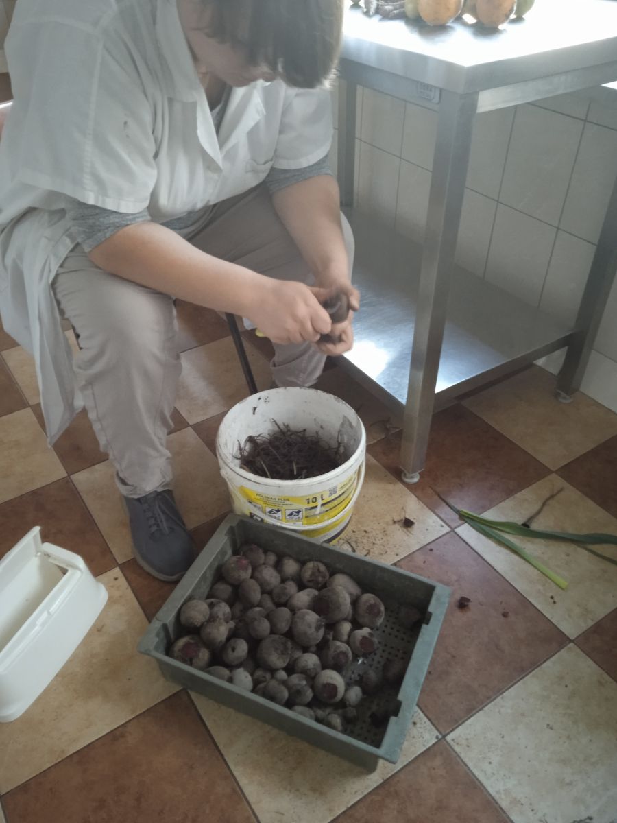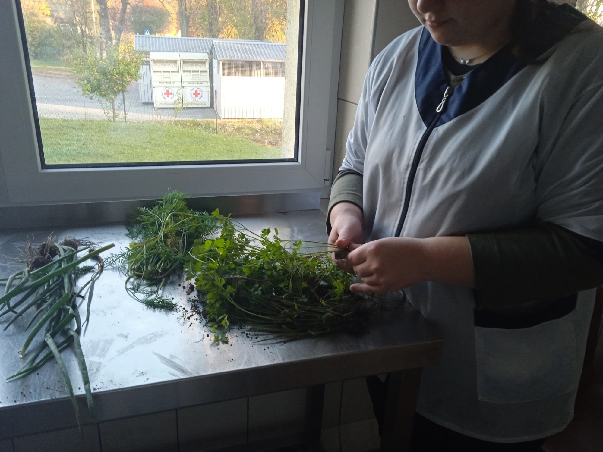 Uczennice klasy III szkoły branżowej zebrały plony, które zostaną wykorzystane na zajęciach praktycznych do sporządzania zdrowych i smacznych potraw.
