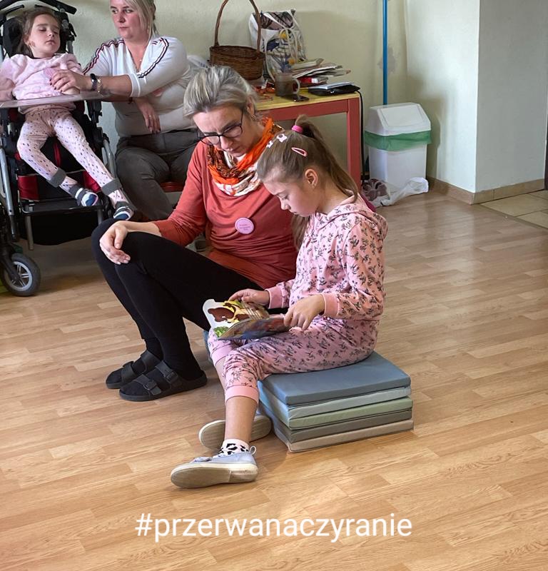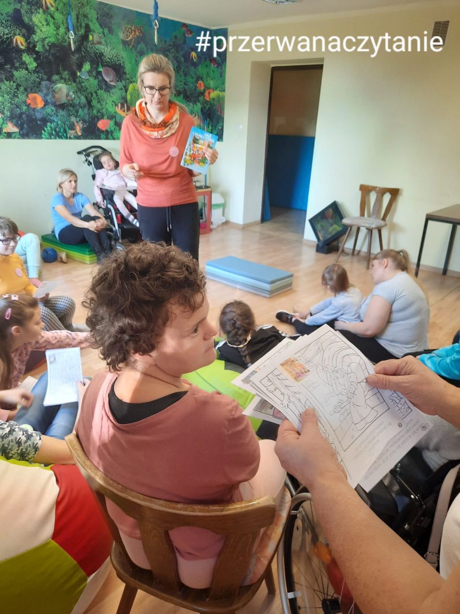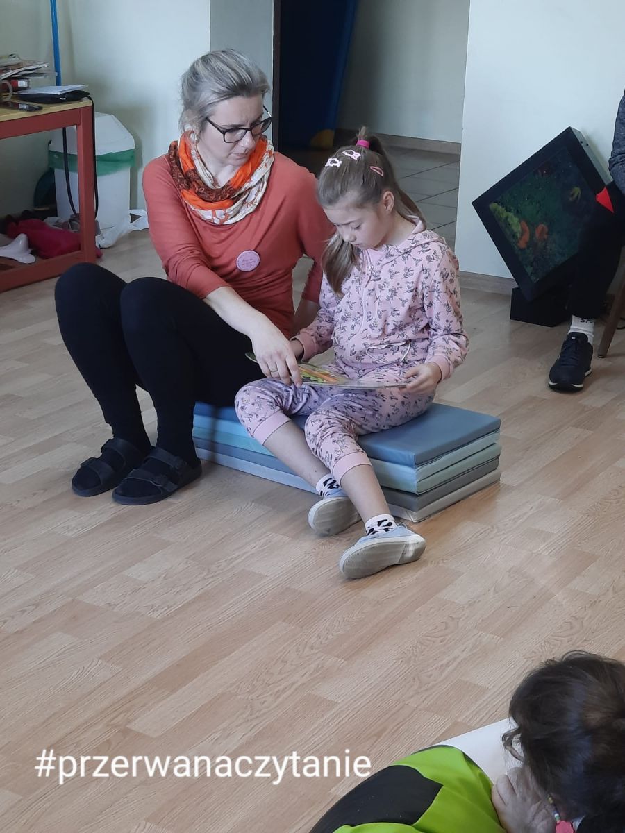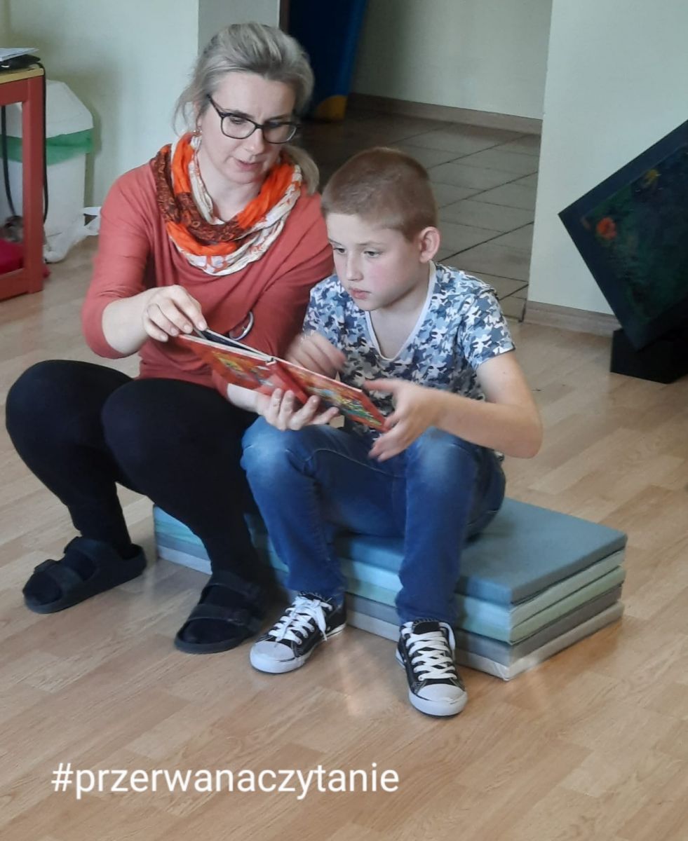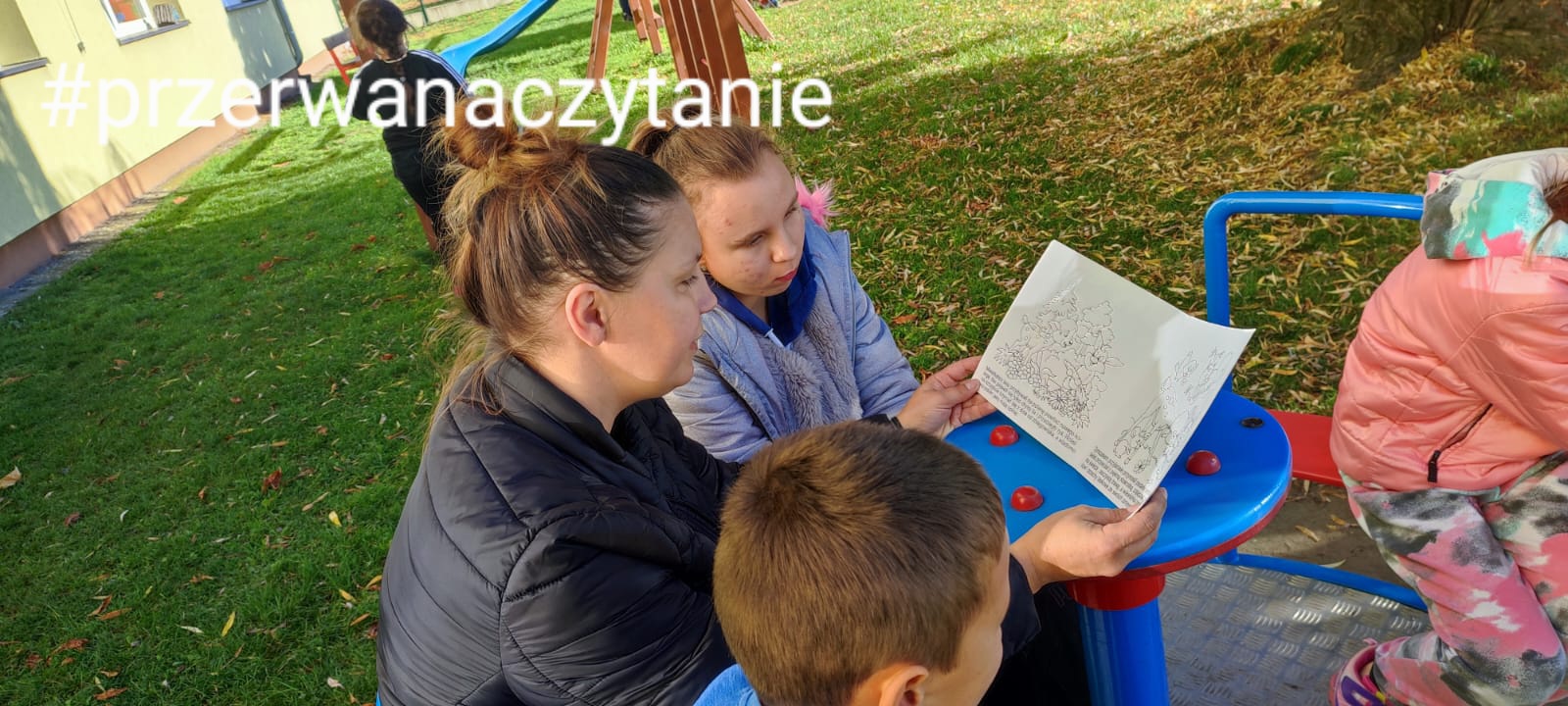 Wszyscy czytaliśmy baśnie, książki o zwierzętach, a także fragmenty lektur i literatury pięknej - „dla każdego coś miłego”. Dodatkowo czytane treści ilustrowały prezentacje i przygotowane obrazki i kolorowanki, z których powstała gazetka ścienna: „Zrób sobie przerwę – POCZYTAJ!!!”.