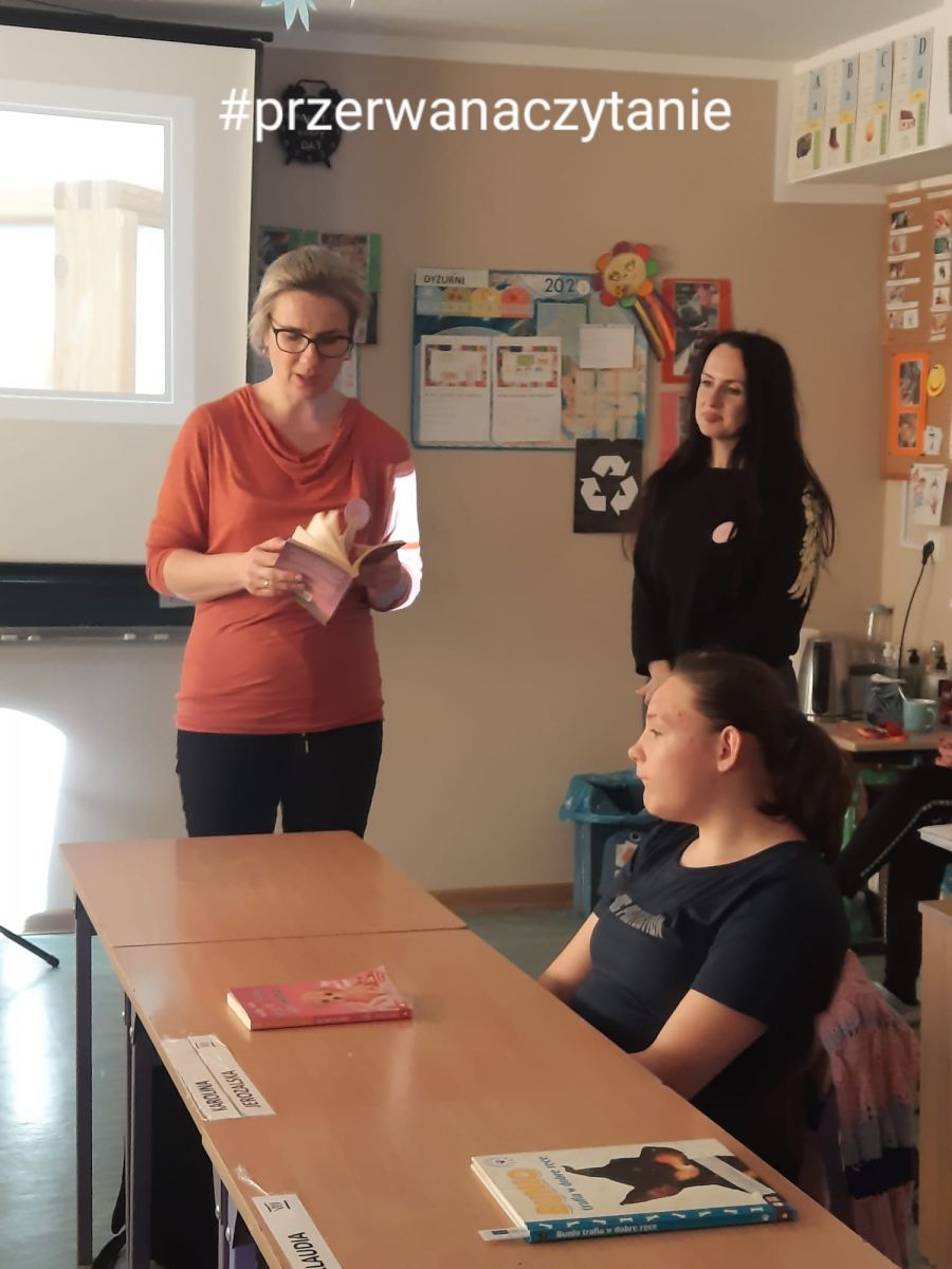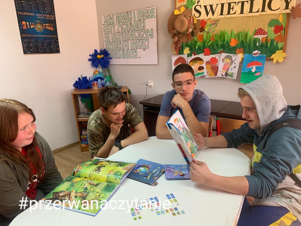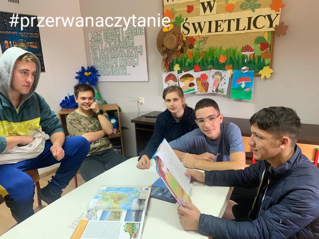 W ostatnią środę października (26.10.2022), uczniowie naszej Szkoły wzięli ogólnopolskiej akcji „Przerwa na czytanie – bicie rekordu w czytaniu na przerwie”. Przez cały dzień w trakcie przerw lub między innymi zajęciami uczniowie, nauczyciele i pracownicy Szkoły, czytali wybrane teksty.