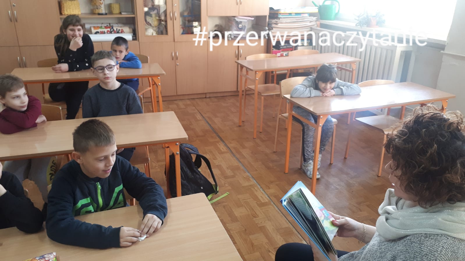 Wcześniej, wszyscy byli poinformowani o planowanym przedsięwzięciu i wielu uczniów „odwiedziło” szkolną bibliotekę, by każdy mógł wybrać lekturę odpowiednią dla siebie. Sam DZIEŃ przebiegał pod znakiem KSIĄŻKI. Od samego rana słychać było głośne czytanie z podziałem na role, grupowe lub czytanie uczestniczące. Poszczególne klasy, świetlica szkolna, wyznaczone miejsca na korytarzach oraz pomieszczenia biurowe stały się „strefami czytania” – wszyscy byli w pełni zaangażowani.