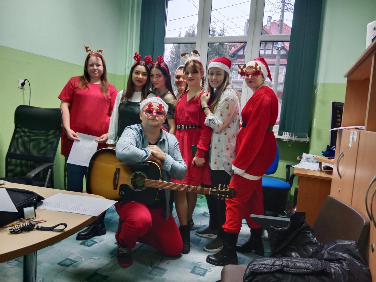 Aby atmosfera była bardziej świąteczna pomocnicy Mikołaja wykonali piękną piosenkę przy dźwiękach gitary. Serdecznie dziękujemy Św. Mikołaju i zapraszamy w następnym roku.