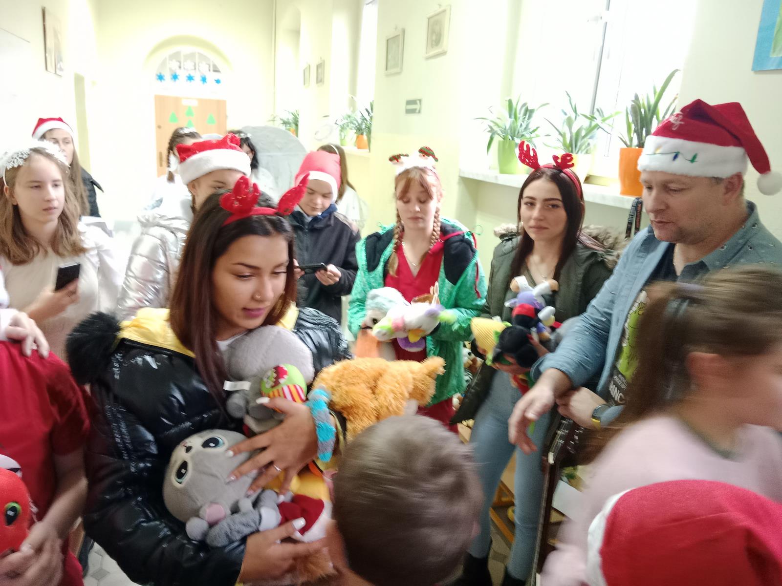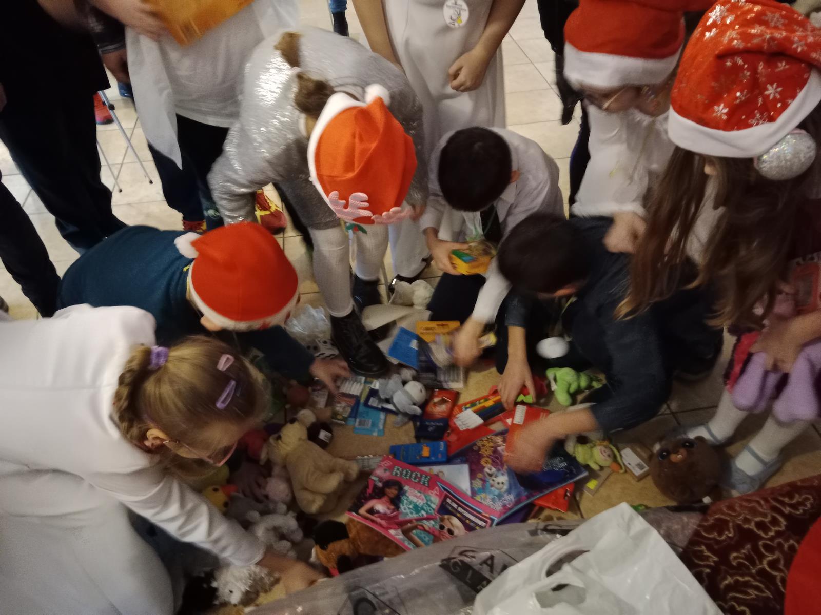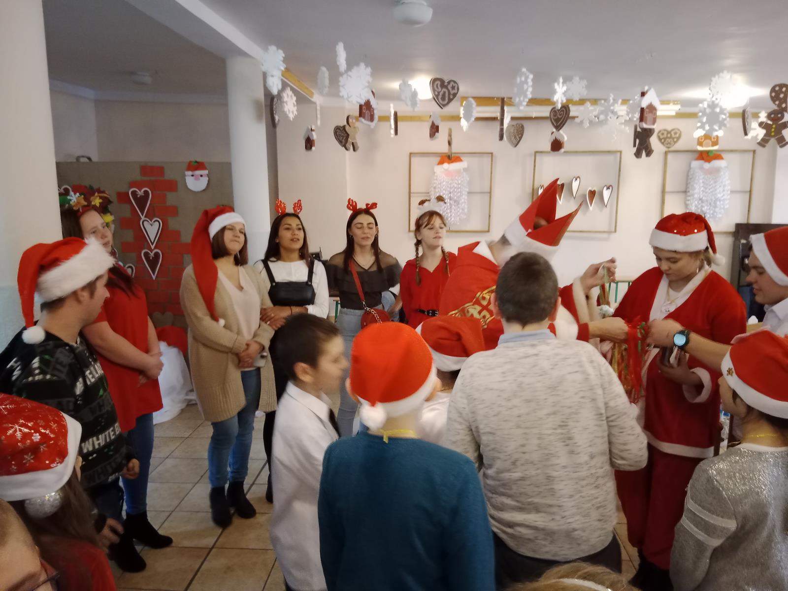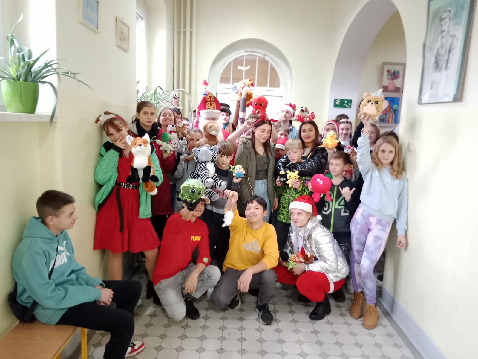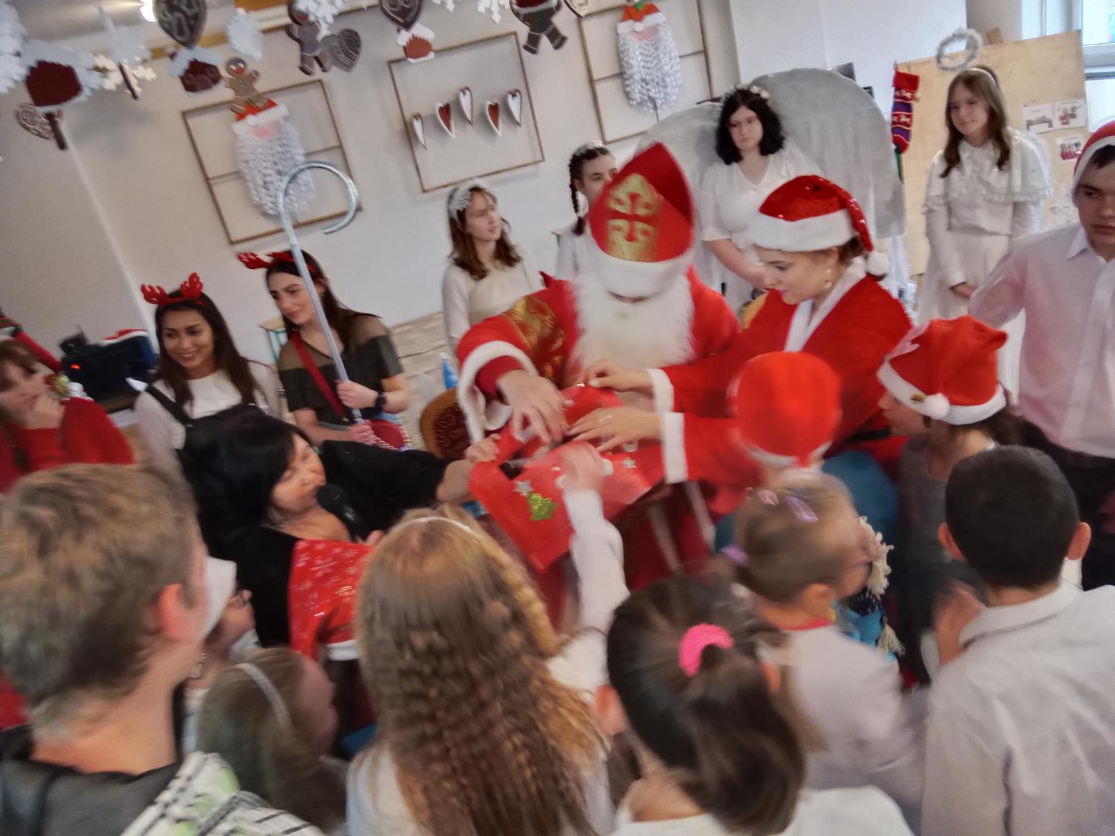 Już od progu drzwi wejściowych rozbrzmiewały dzwonki św. Mikołaja. Wszyscy uczniowie wyszli z klas i zebrali się na szkolnym korytarzu. Mikołaj wraz z pomocnikami serdecznie przywitali zgromadzonych i rozdali prezenty.