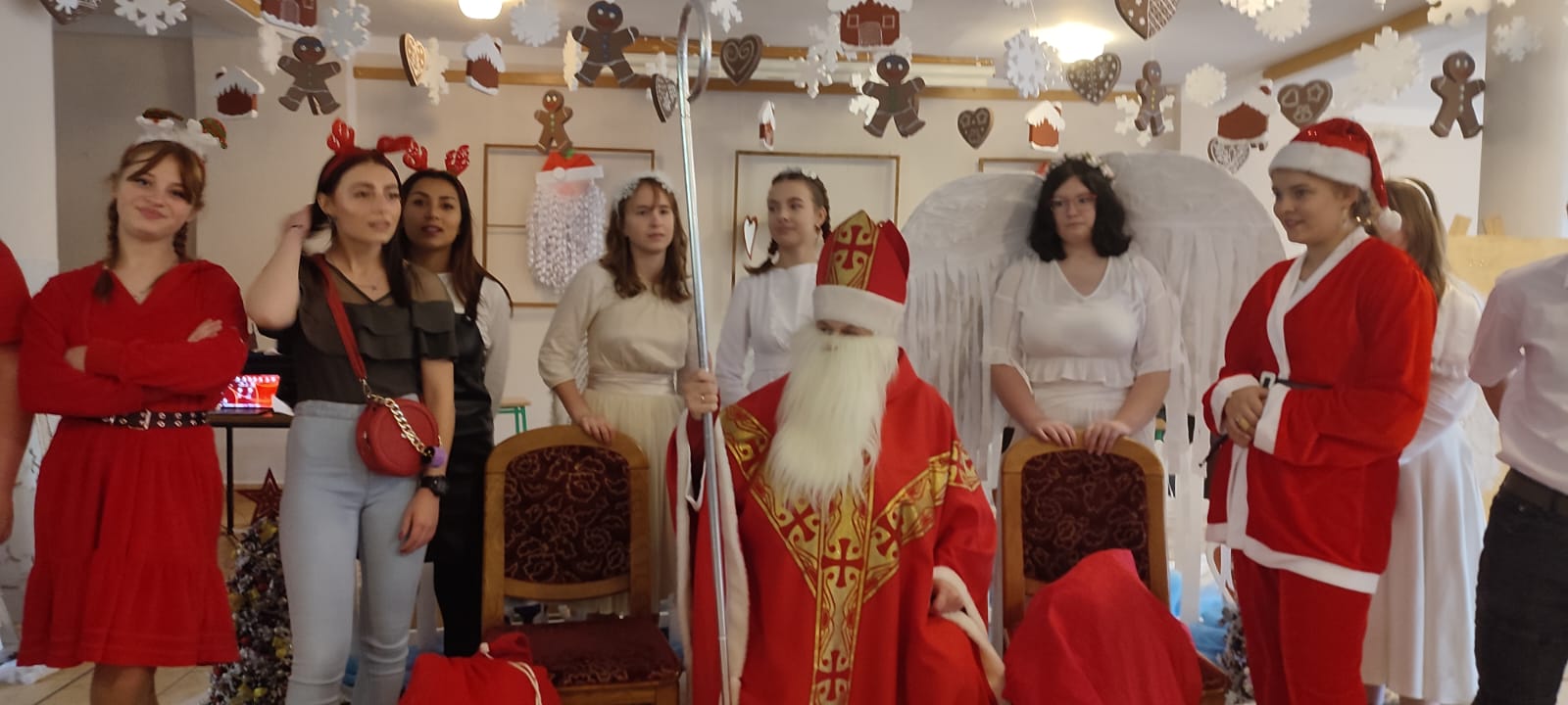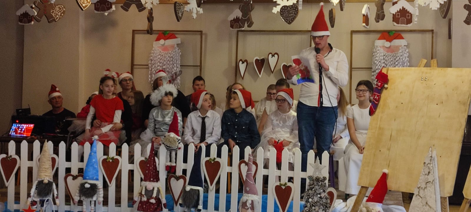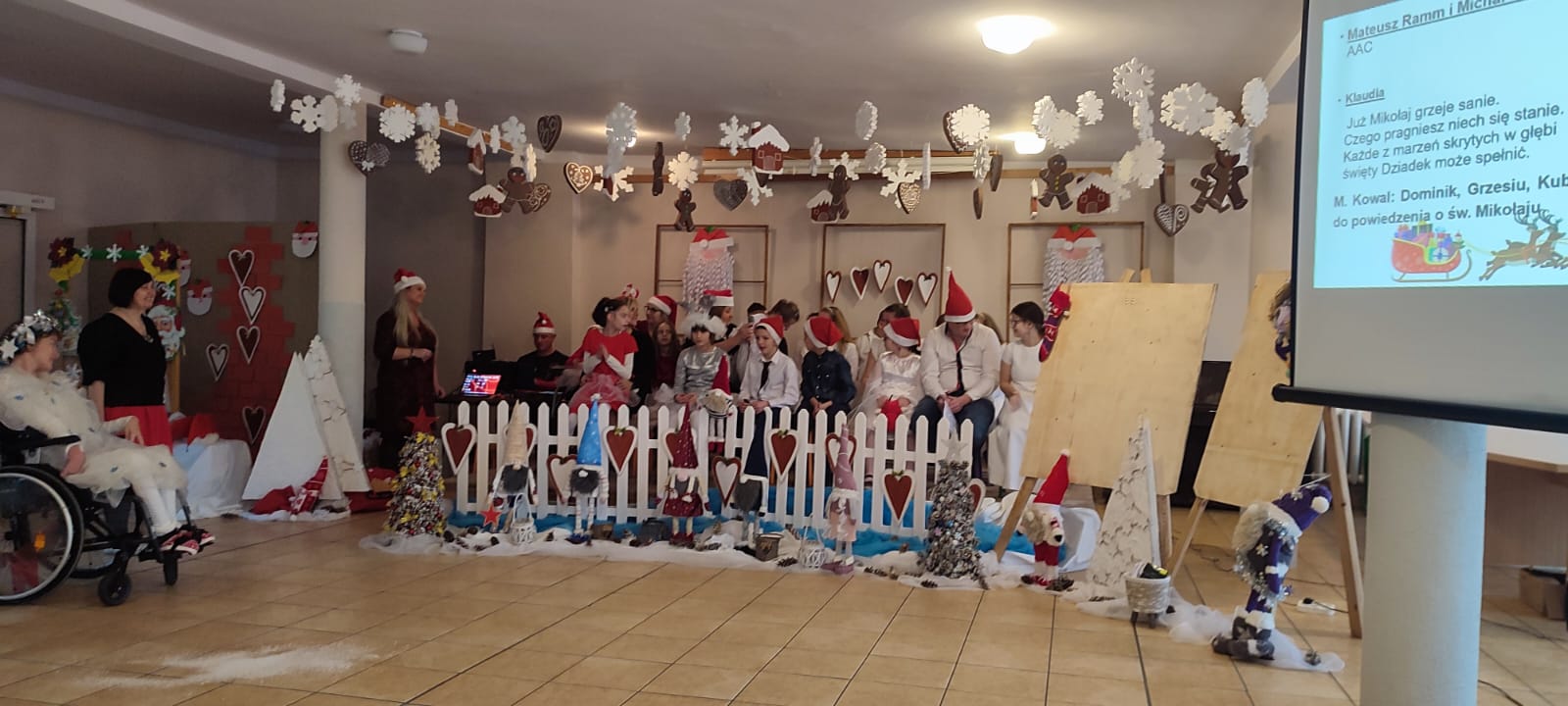 W tym roku było to wyjątkowe spotkanie, bo od samego początku towarzyszył nam św. Mikołaj ze swoją świtą. Harmonogram był bardzo bogaty. Impreza szkolna rozpoczęła się wystąpieniem naszych uczniów, którzy poprzez recytację wierszy i śpiewanie piosenek o św. Mikołaju wprowadzili wszystkich w świąteczny nastrój.