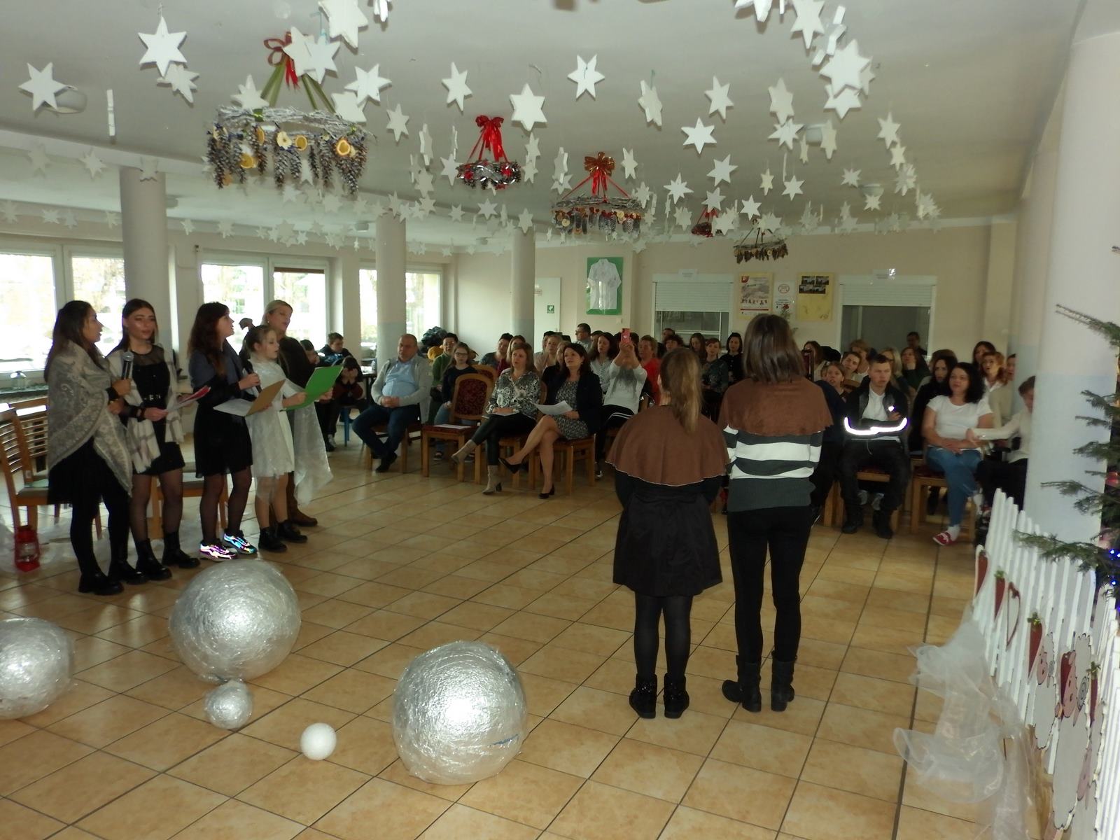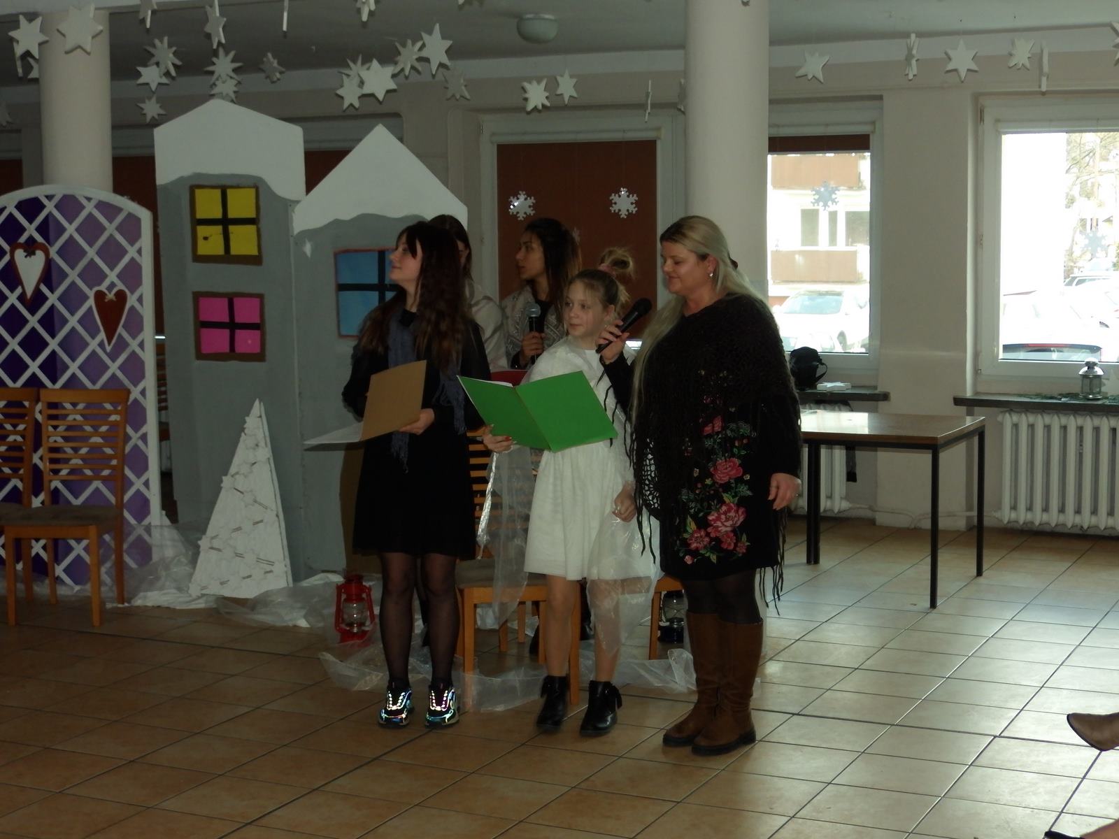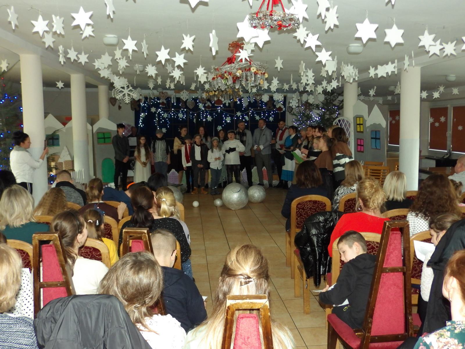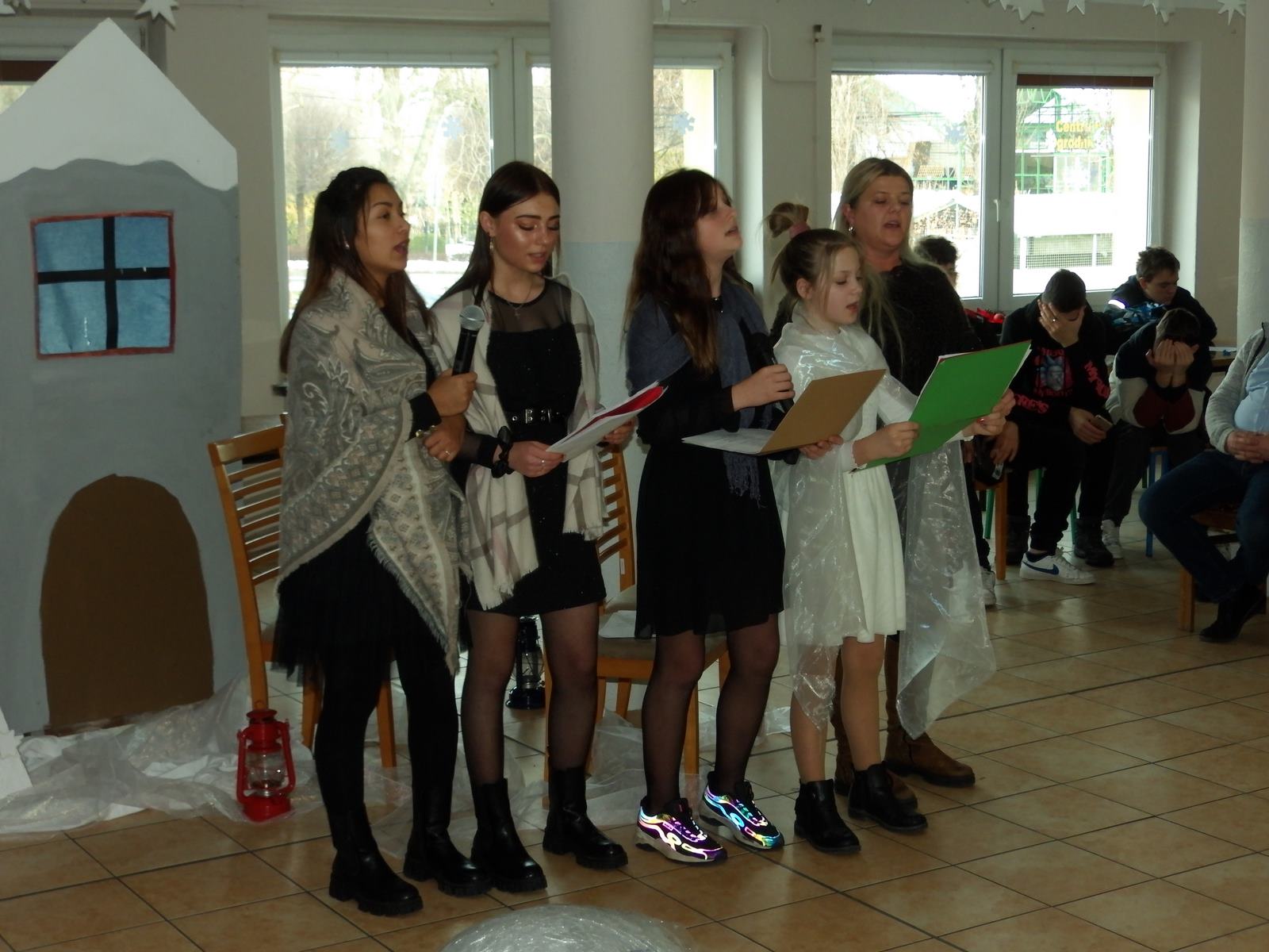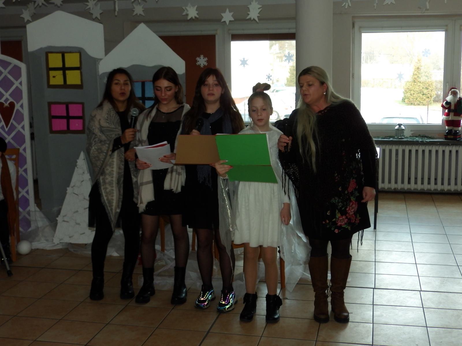 Przedstawienie pokazuje głębokie doświadczenie i przemianę skąpca Ebenezera Schroog’a zachodzącą w czasie nocy Wigilijnej. Wizyta tajemniczych gości sprawia, że dokonała się dobra przemiana w życiu naszego bohatera i na pewno w każdym z nas. Spektakl został uwieńczony wspólnym kolędowaniem w bardzo ciepłej i radosnej atmosferze.