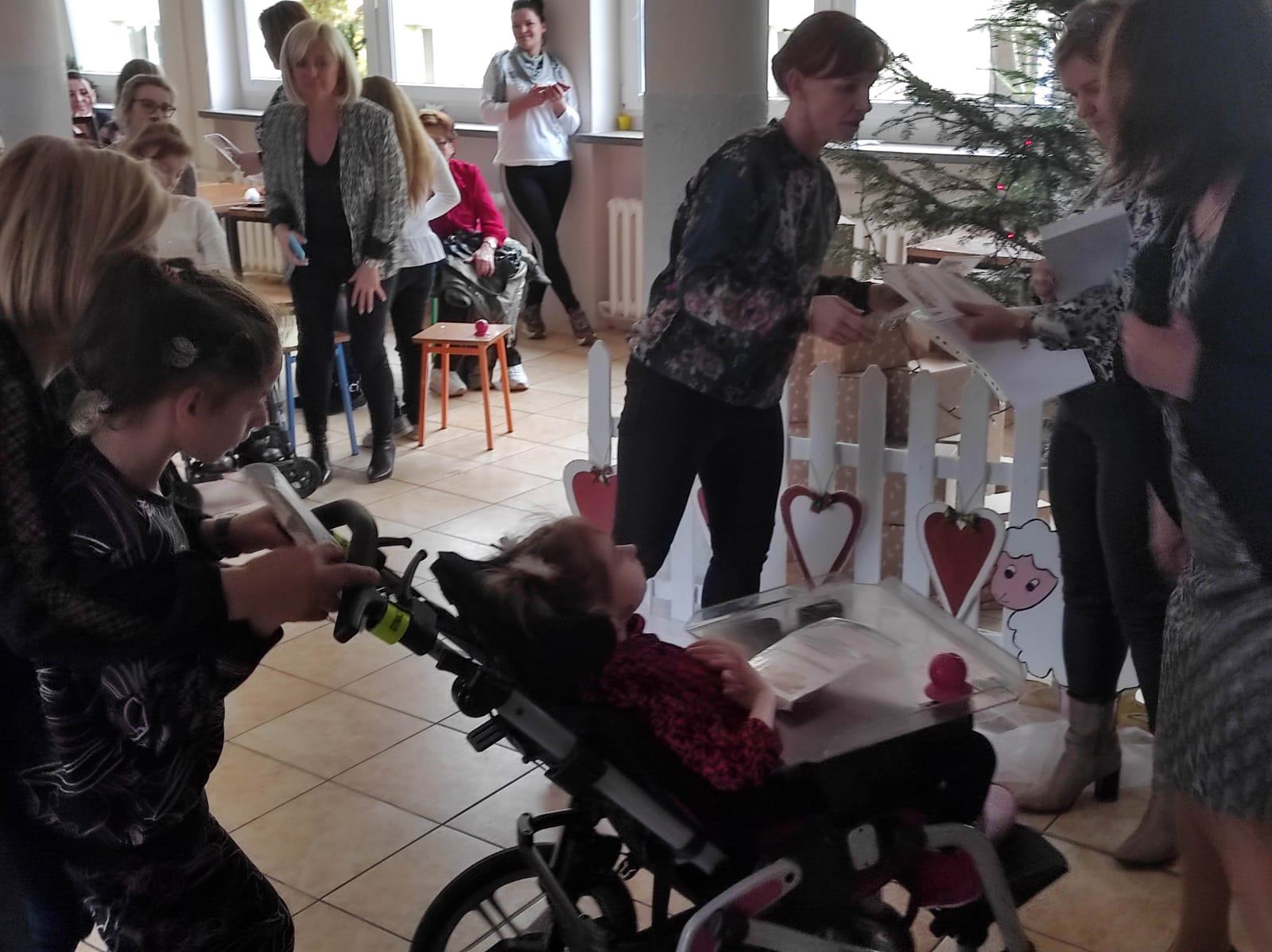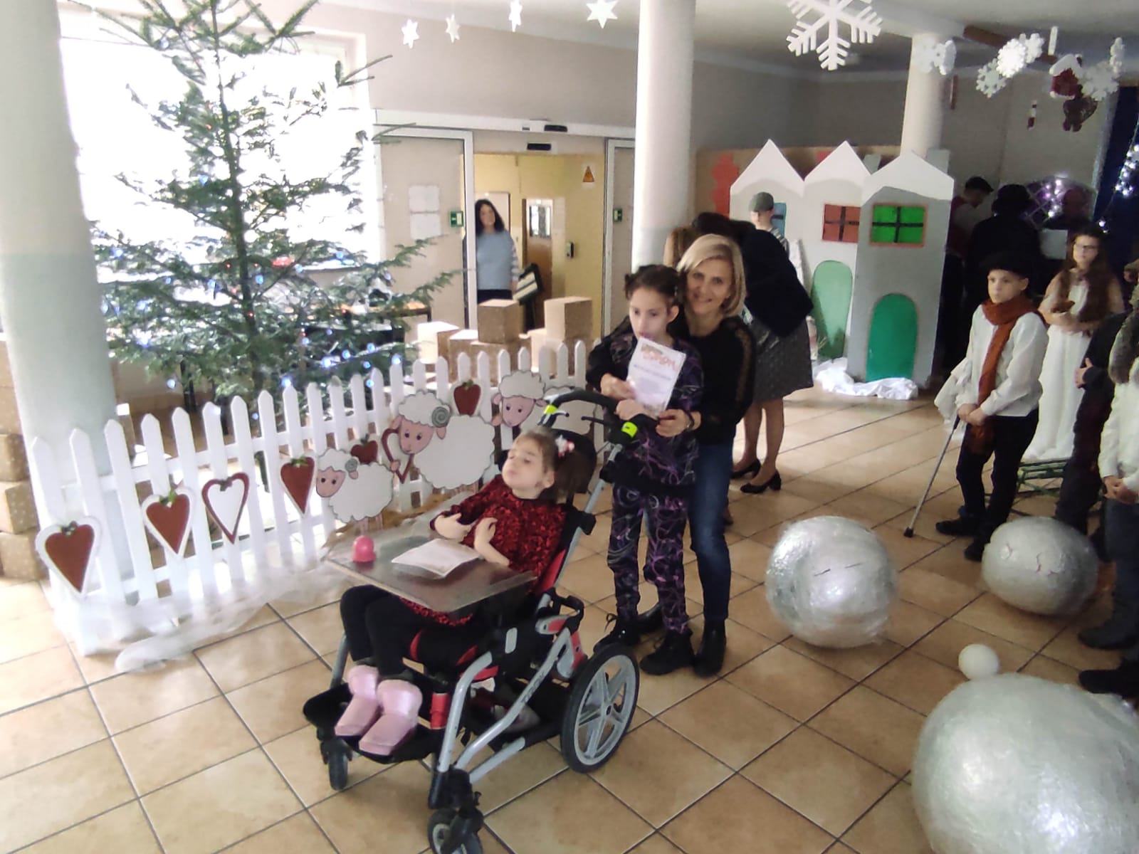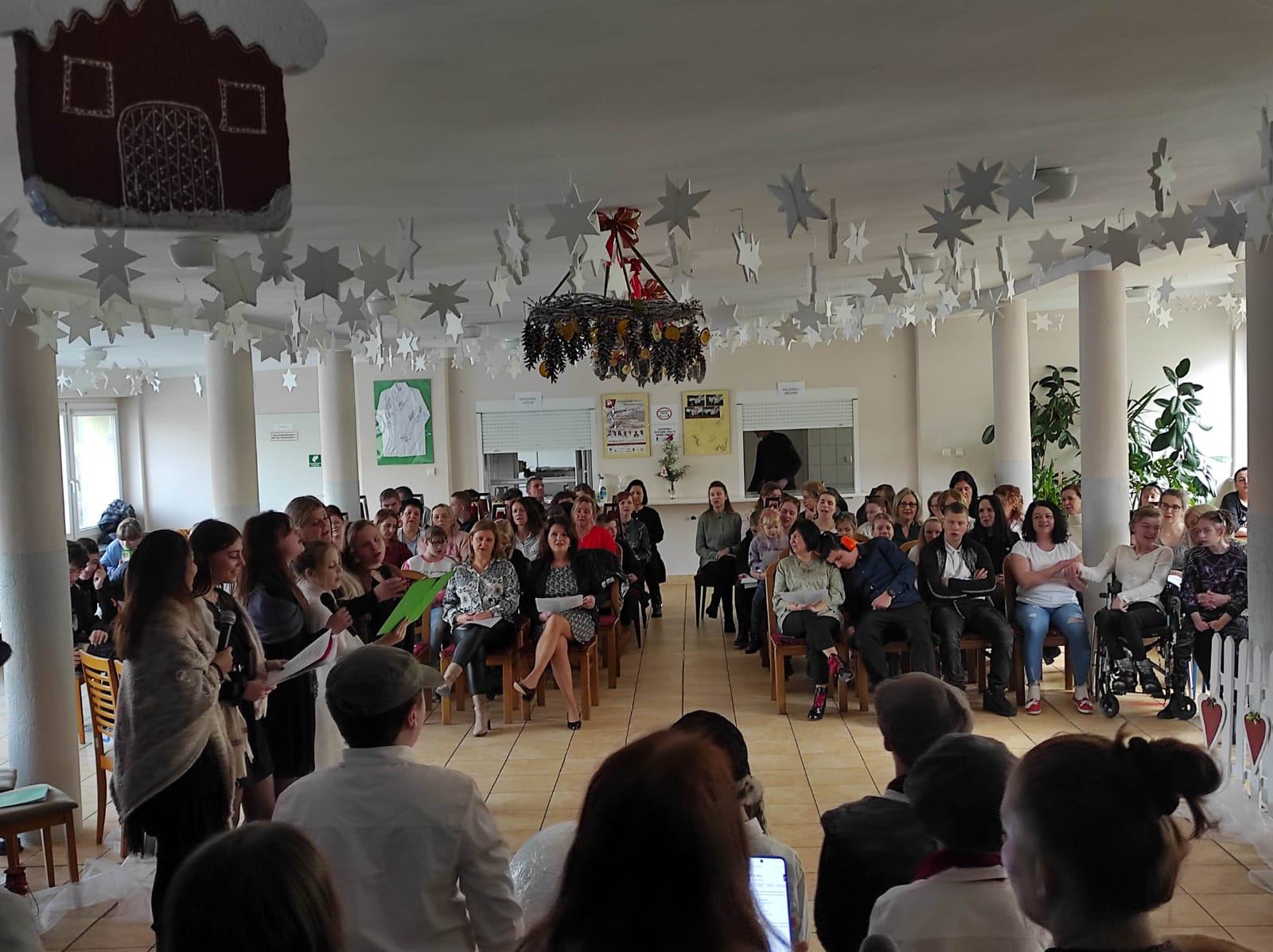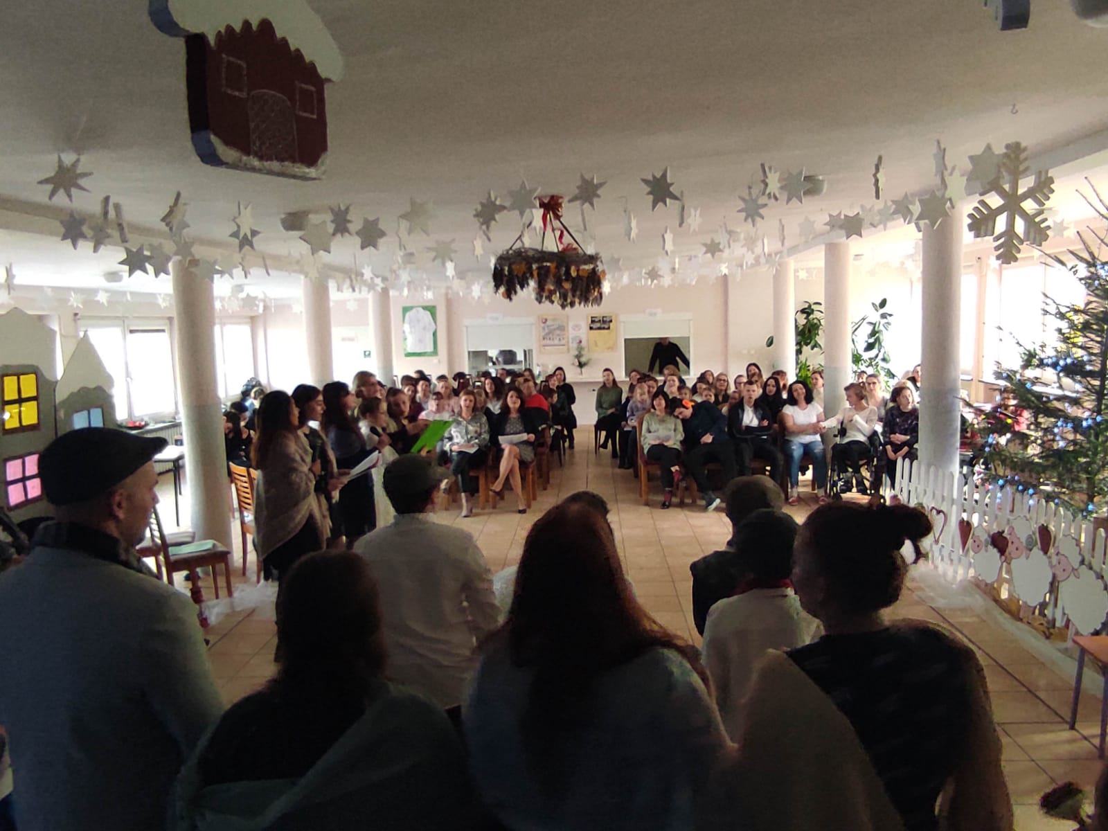 Spotkanie wigilijne w Specjalnym Ośrodku Szkolno-Wychowawczym w Grodkowie, zostało poprzedzone pięknym świątecznym powitaniem Pani Dyrektor Elżbiety Galus: