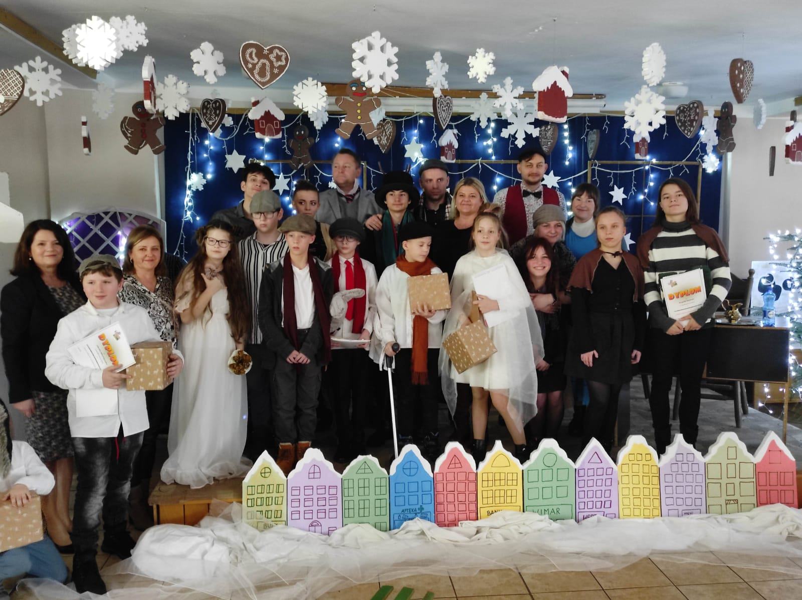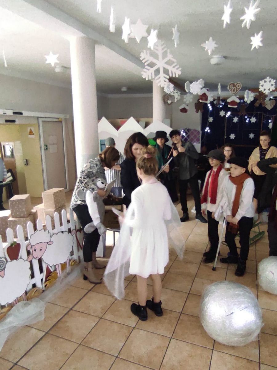 Społeczność szkolna, nauczyciele, pracownicy szkoły dzieci i młodzież mogli dzisiaj zobaczyć spektakl teatralny pt. „Opowieść wigilijna”Ch. Dickens’a.
