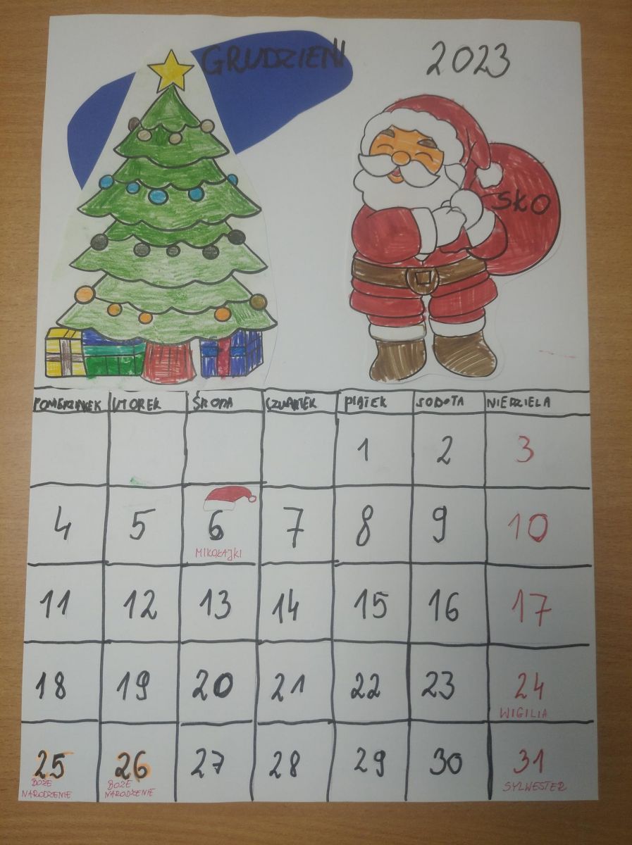 W grudniu w klasach szkoły podstawowej oraz szkoły przysposabiającej do pracy odbył się konkurs plastyczny zorganizowany przez SKO pt. „Kartka z kalendarza”.