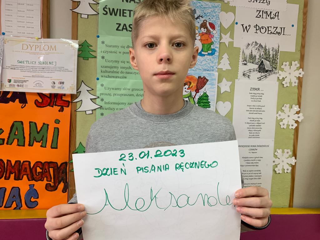 Podczas zajęć świetlicowych, uczniowie mieli okazję obchodzić „Dzień Pisma Ręcznego”. W trakcie zajęć zorganizowano ćwiczenia polegające na pięknym pisaniu, wyświetlony został film tematyczny pt. „Historia pisma”, przeprowadzono pogadankę dot. pochodzenia tego święta.