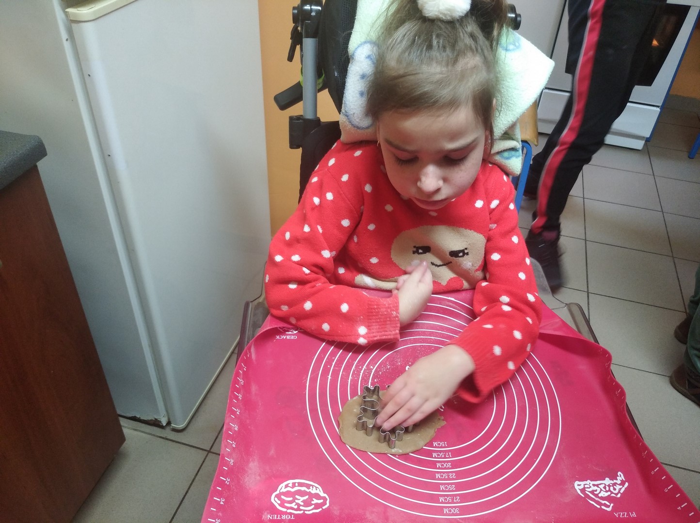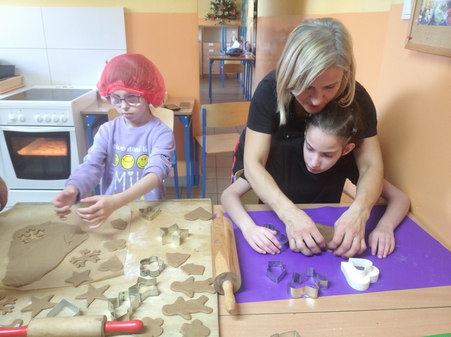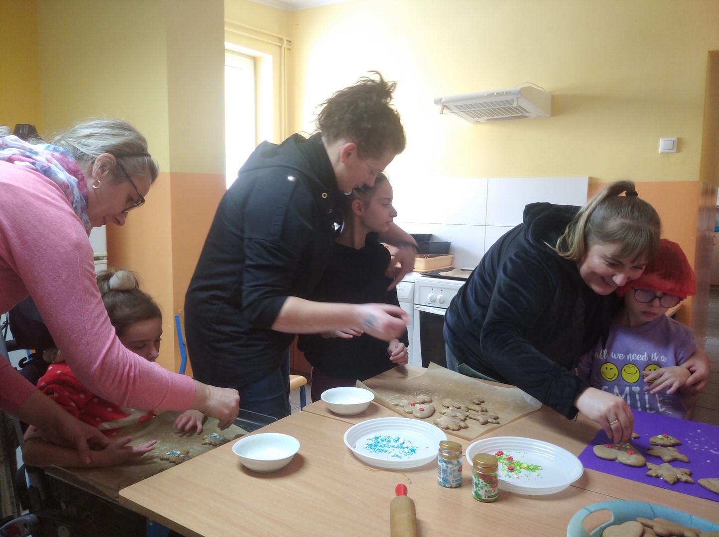W grudniu robiliśmy sensoryczne ozdoby świąteczne - pierniczki. Dziewczynki wspólnie z nauczycielami zrobiły ciasto na pierniczki, z którego uformowałyśmy i upiekłyśmy różne kształty pierniczków. Na koniec zajęć było trochę zabawy, śmiechu oraz dużo słodkości podczas dekorowania pierniczków lukrem i cukiereczkami. Gotowe pierniczki zostały powieszone na choince.