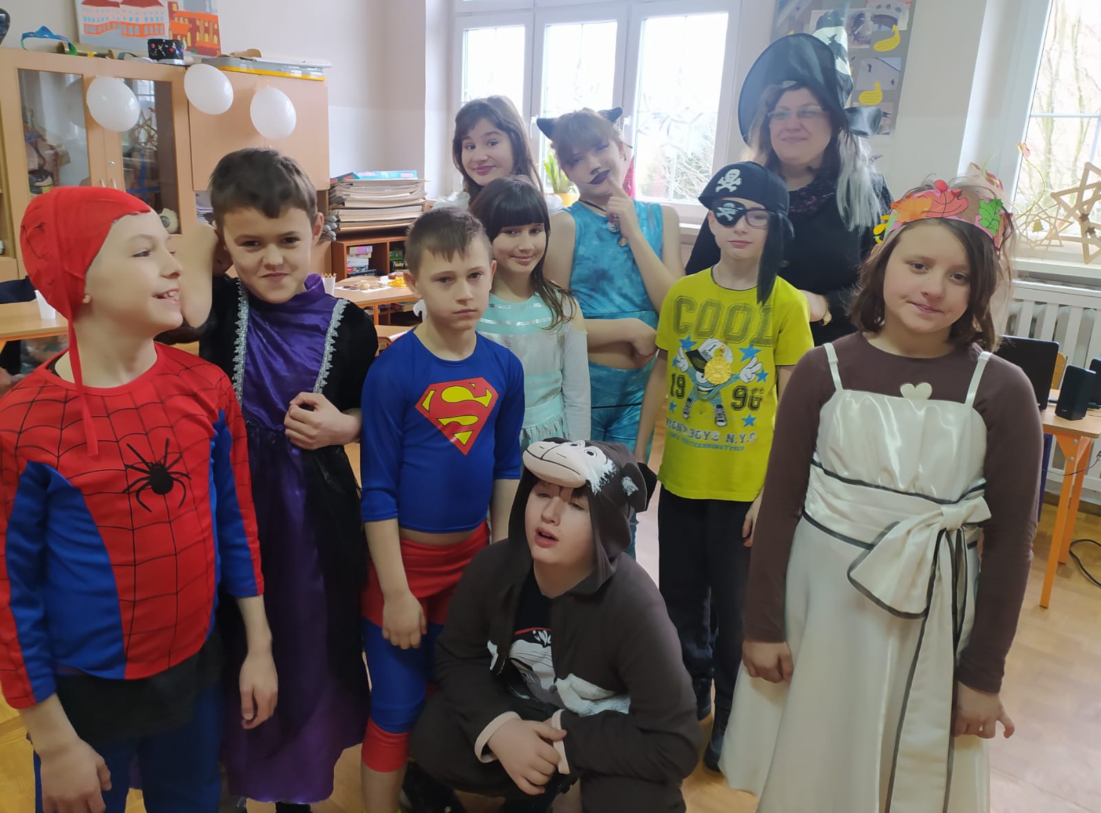 Tak właśnie było u nas, w dniu 1 lutego 2023 roku! Uczniowie z klas II, III i IV Szkoły Podstawowej z dużą pomysłowością przebrali się za bohaterów znanych bajek. Można było zobaczyć: Supermana, Spidermana, wiedźmy i wróżki, księżniczki oraz różne zwierzęta. Podczas wspólnych pląsów i konkursów było bardzo kolorowo, wszyscy bawili się wesoło, a uśmiechy nie znikały z twarzy mimo zmęczenia.