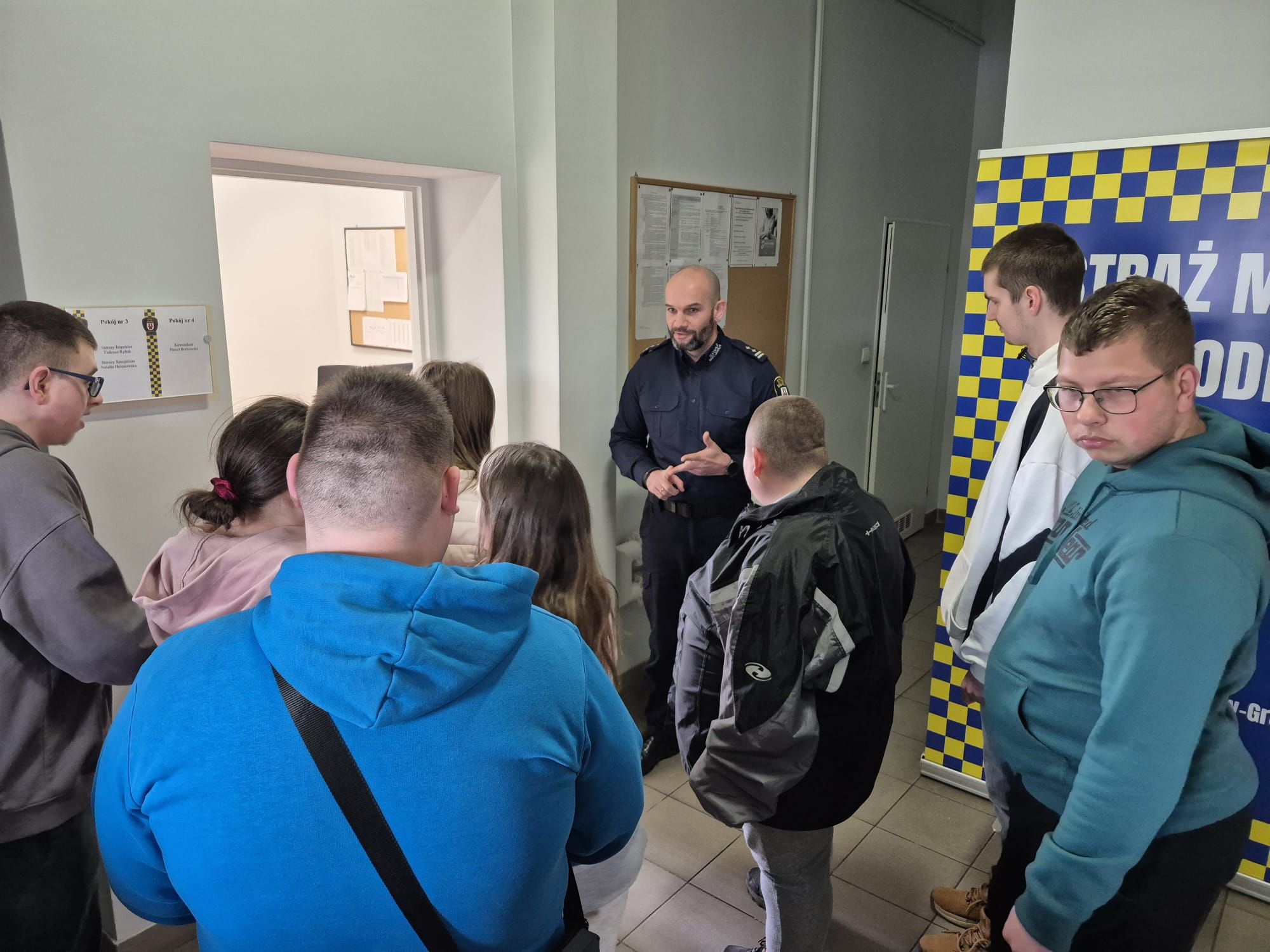 W dniu 25 marca 2026r. uczniowie klas: ZET B1, ZET B4, PdP A, mieli wyjątkową okazję odwiedzić siedzibę Straży Miejskiej w Grodkowie. Celem naszej wizyty było poznanie specyfiki pracy strażników oraz rozmowa o bezpieczeństwie w naszym codziennym życiu.