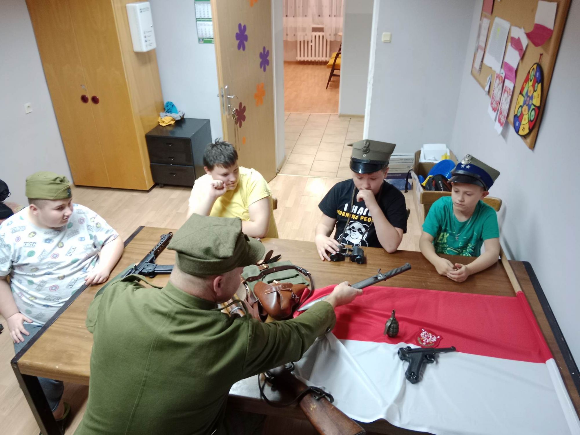 Podczas prelekcji dzieci miały okazję zobaczyć umundurowanie oraz poznać uzbrojenie z okresu walk. Ta żywa lekcja historii cieszyła się dużym zainteresowaniem. Na zakończenie spotkania została przeprowadzona wspólna symulacja walki.