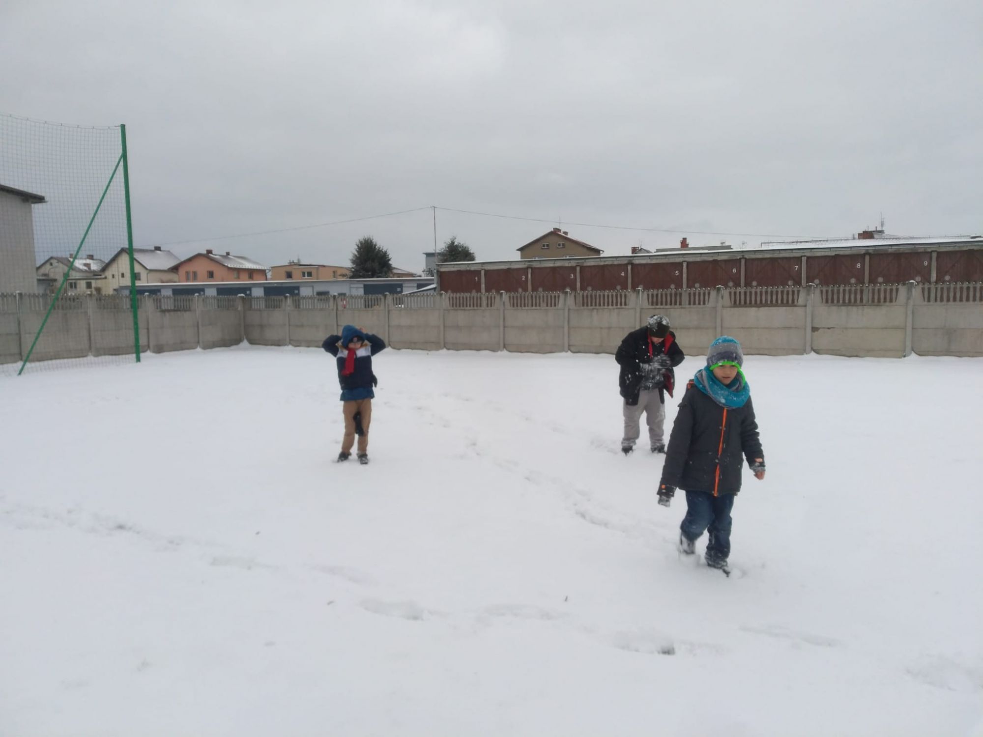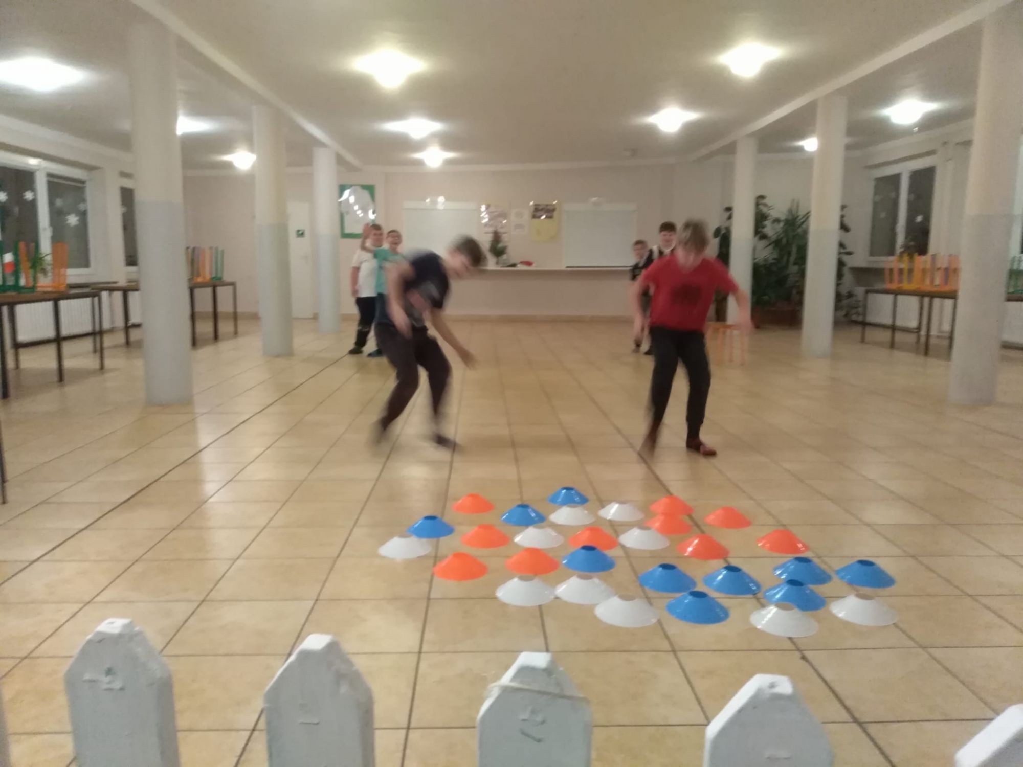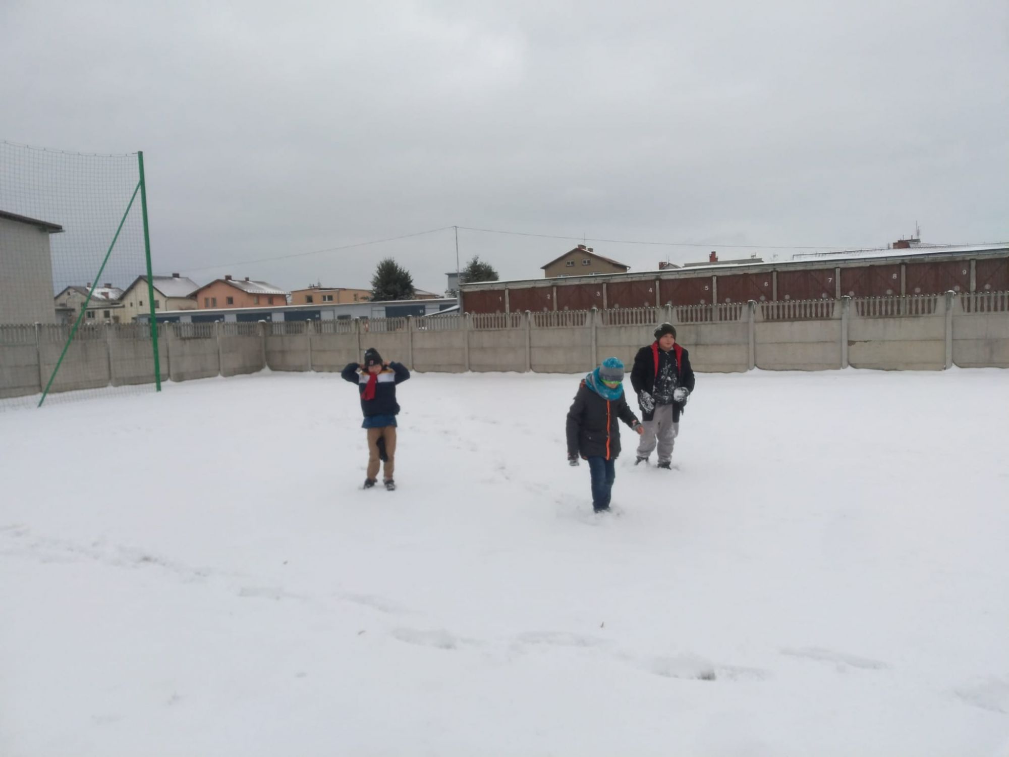 Wychowankpowie m. in. wykonywali ćwiczenia górnych partii mięśniowych na gumach mini band, poznali zabaway ruchowe z wykorzystaniem płaskich pachołkow oraz korzystali z uroków zimowej aury. Podczas zajęć u wszystkich gościł uśmiech twarzach.