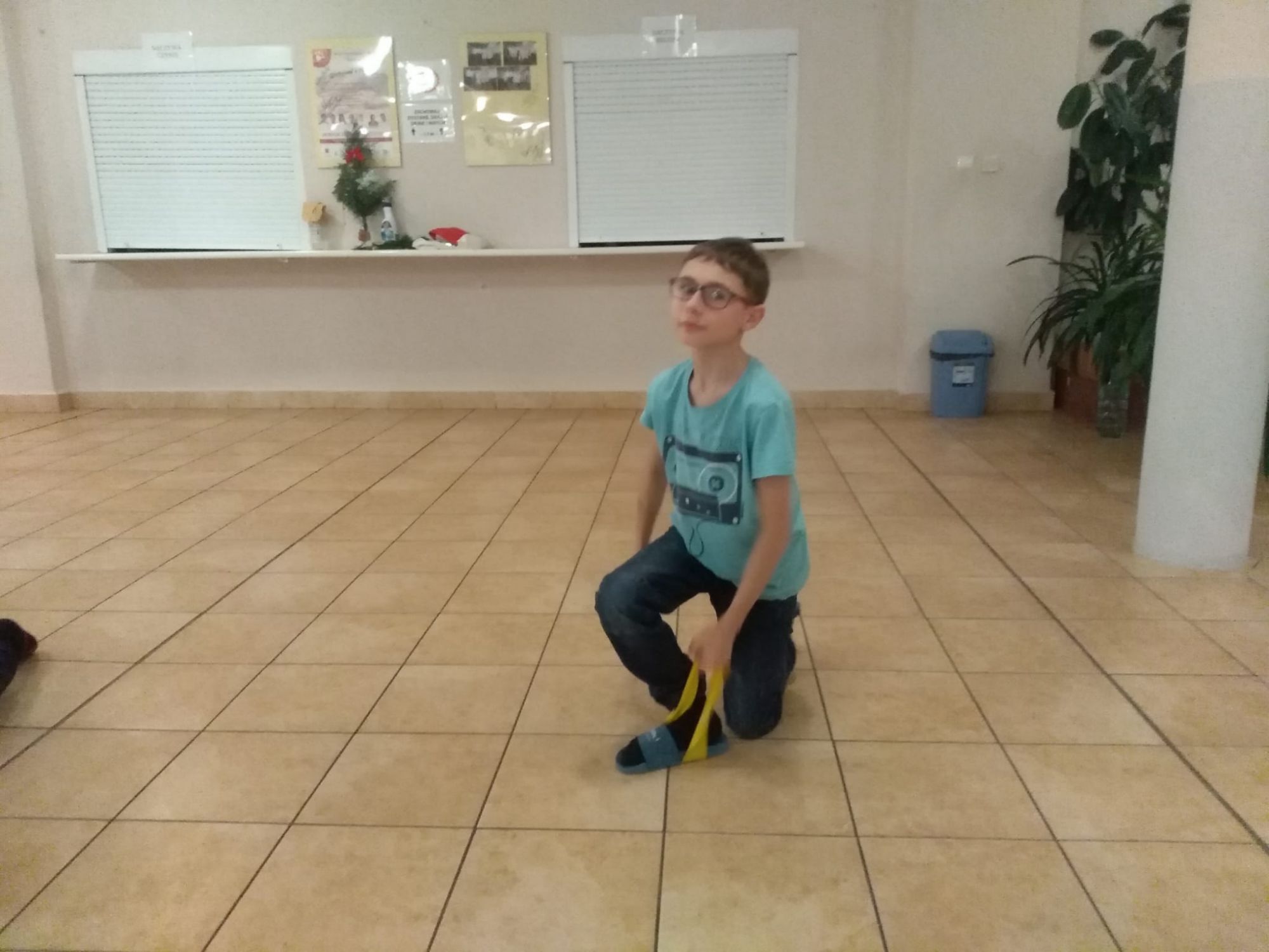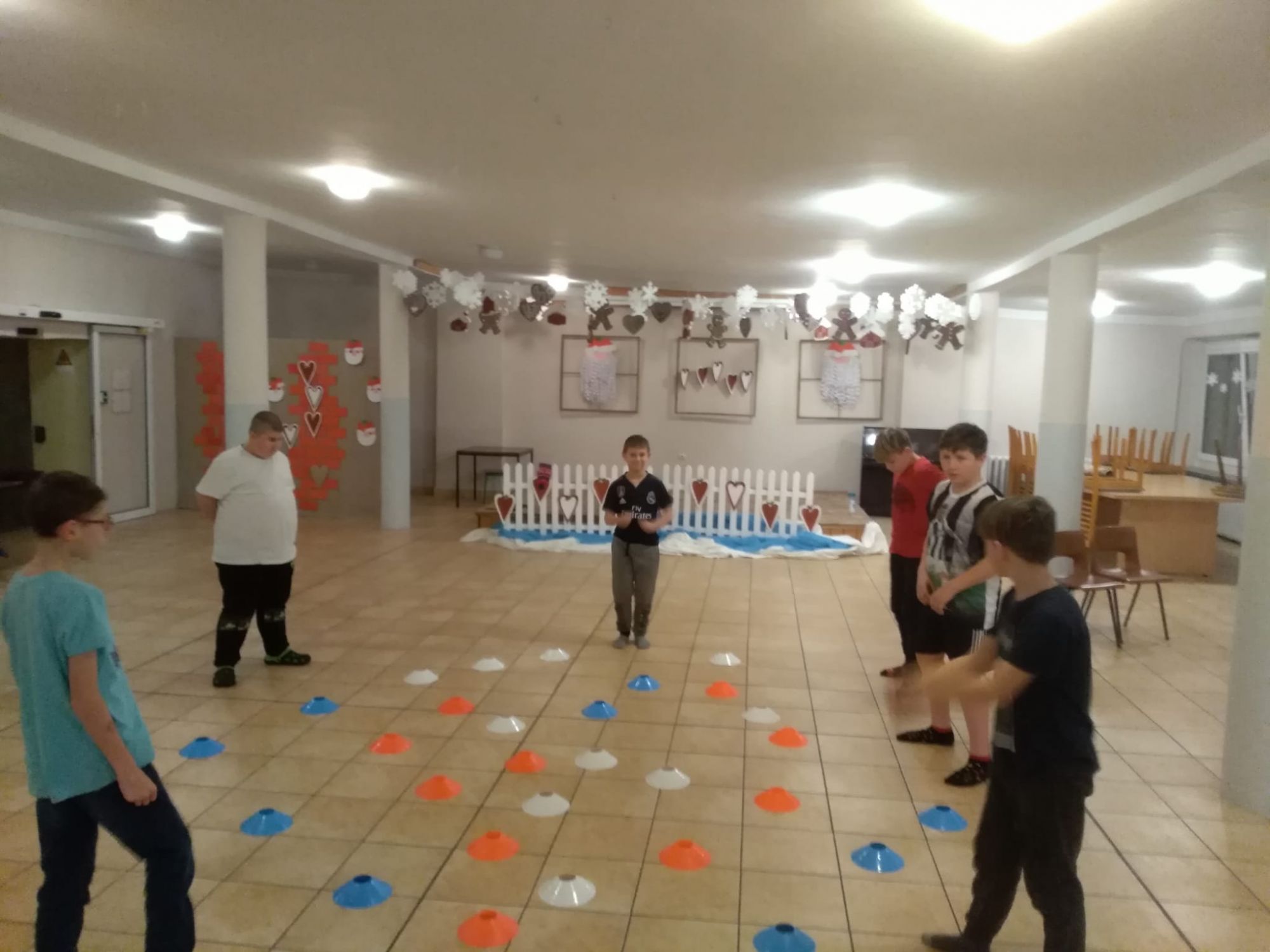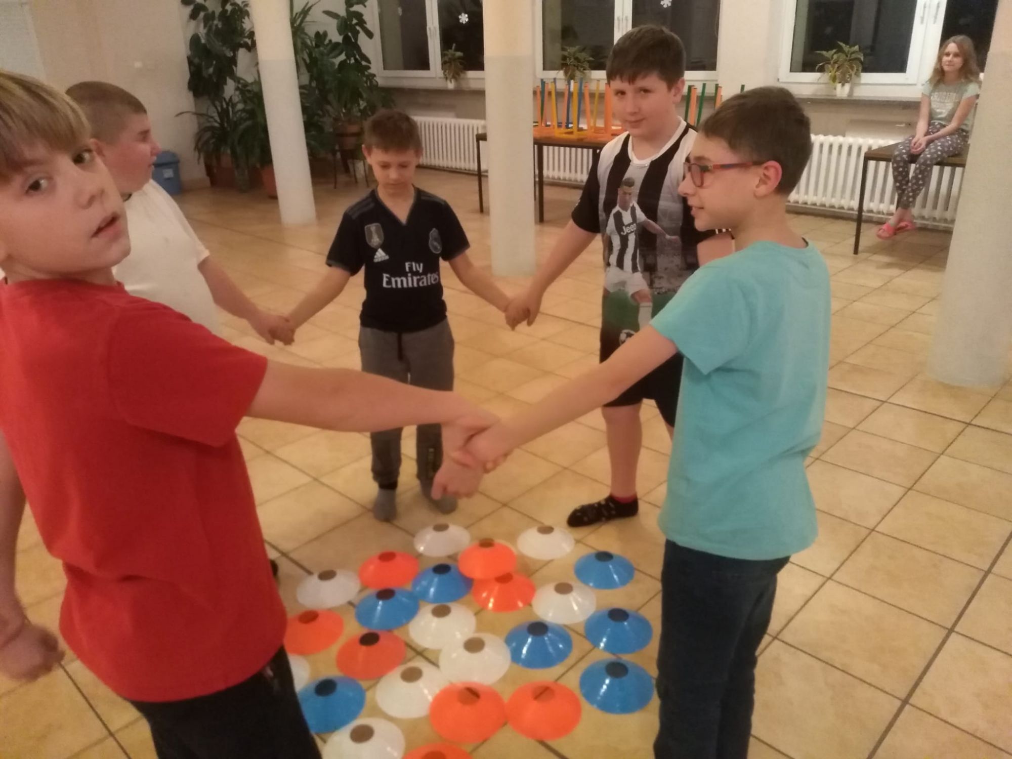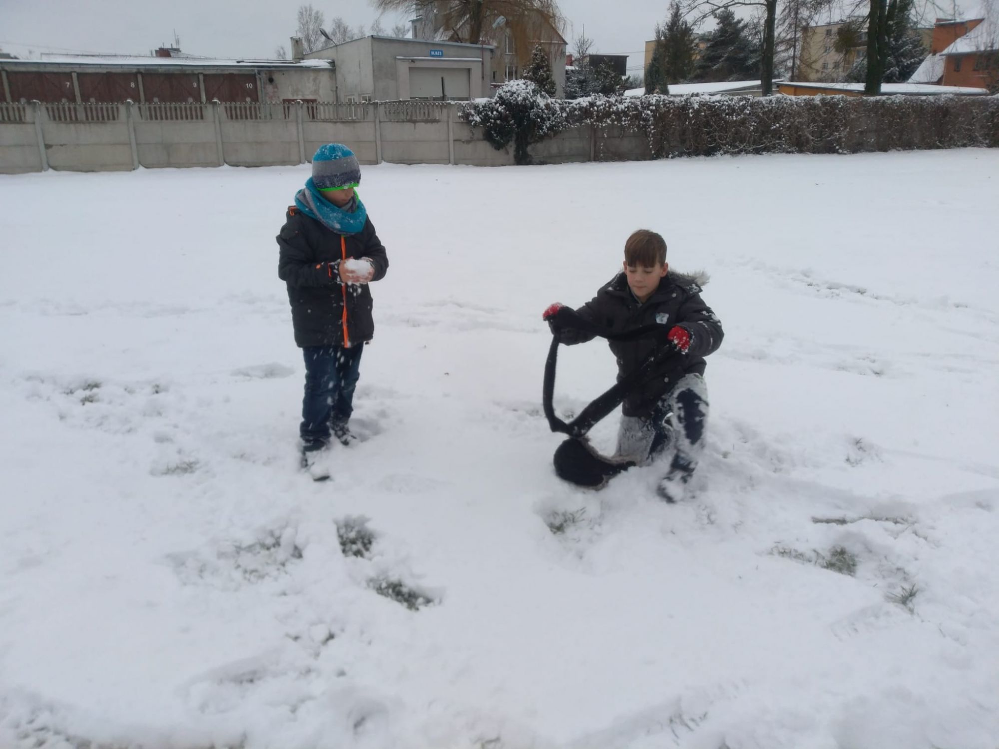 Wychowankpowie m. in. wykonywali ćwiczenia górnych partii mięśniowych na gumach mini band, poznali zabaway ruchowe z wykorzystaniem płaskich pachołkow oraz korzystali z uroków zimowej aury. Podczas zajęć u wszystkich gościł uśmiech twarzach.
