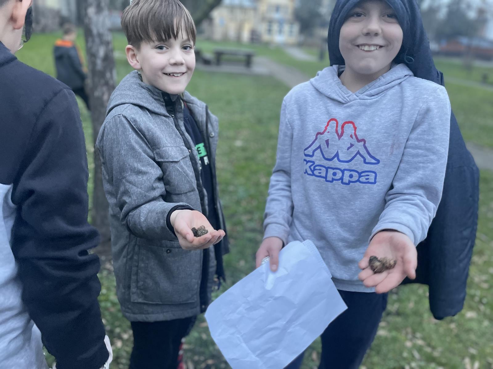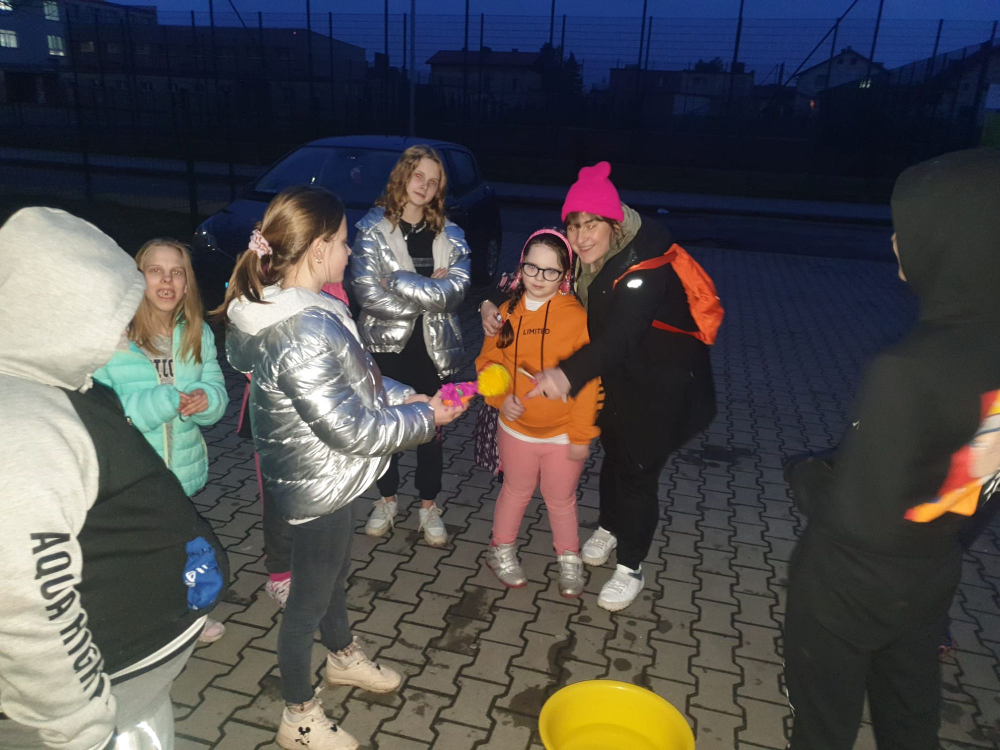 Grupy pracowały w swoim tempie, po około godzinie rozwiązując wszystkie zadania. W nagrodę za poprawnie wykonane odpowiedzi i wykonane zadania, każdy z biorących udział otrzymał słodki poczęstunek. Przygotowana gra terenowa podobała się wszystkim biorącym udział w zabawie.
