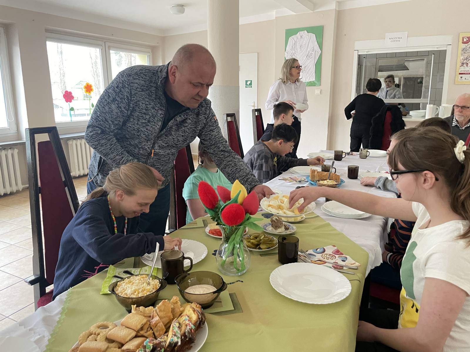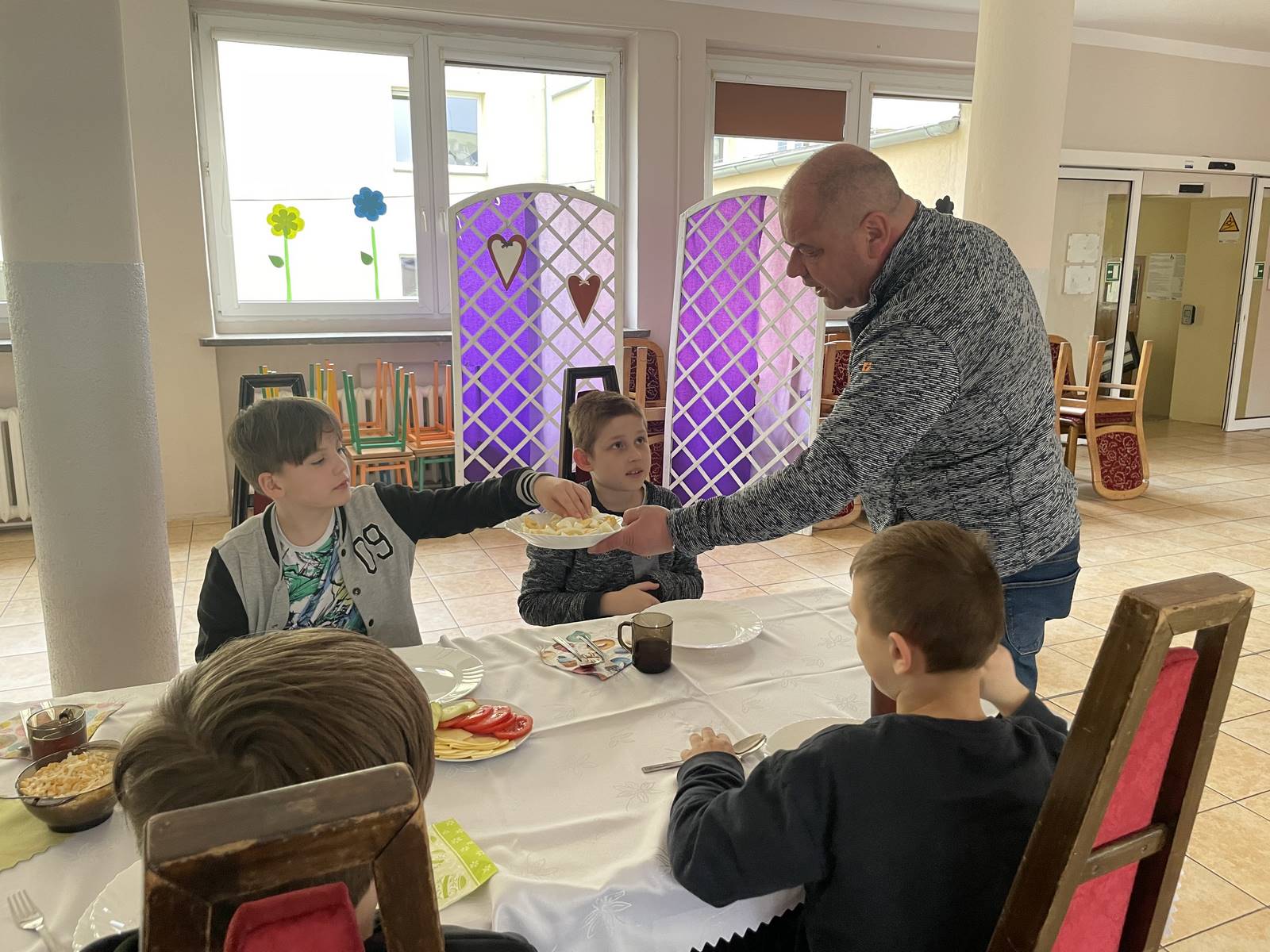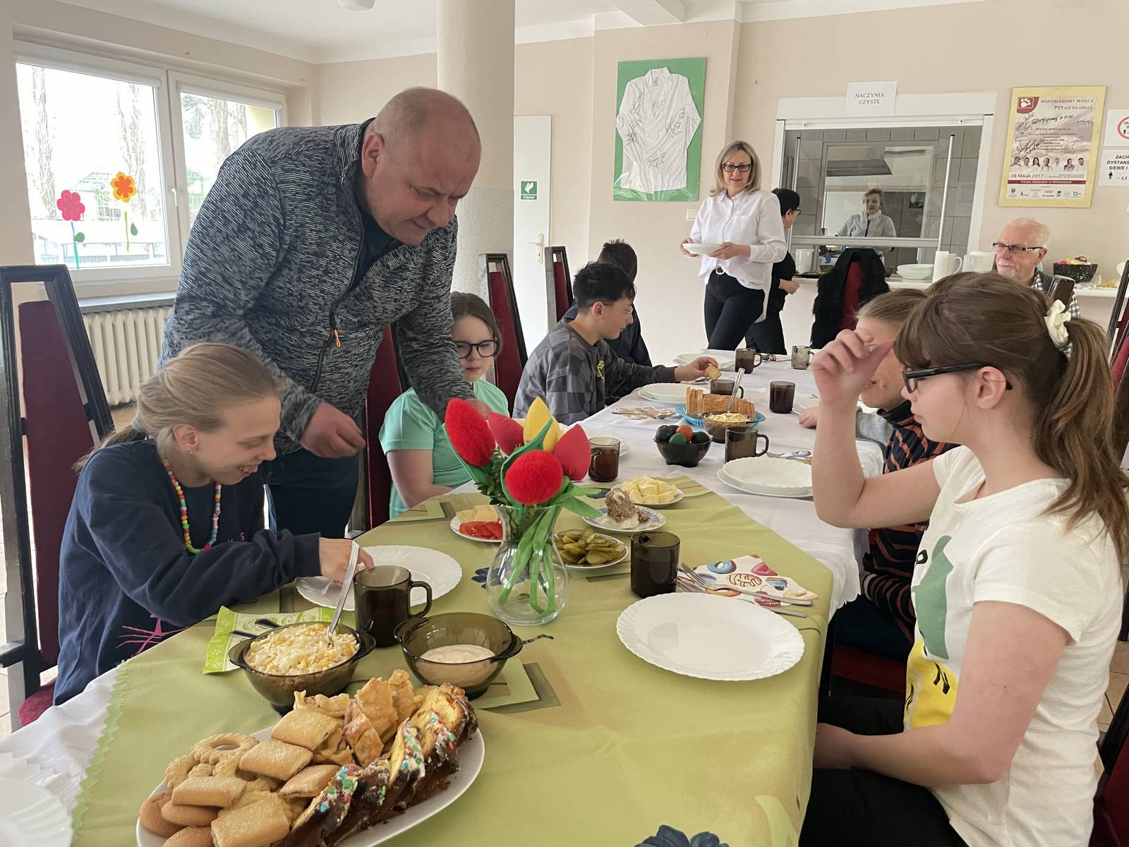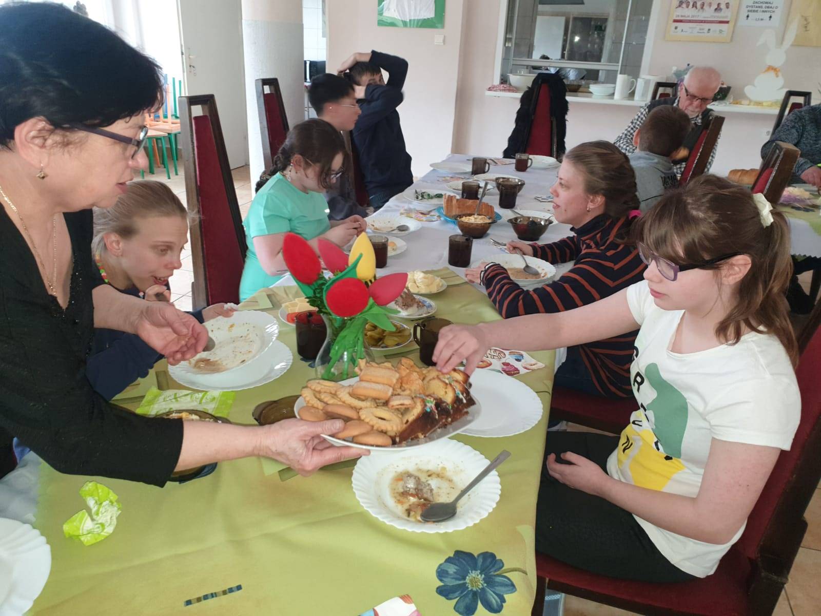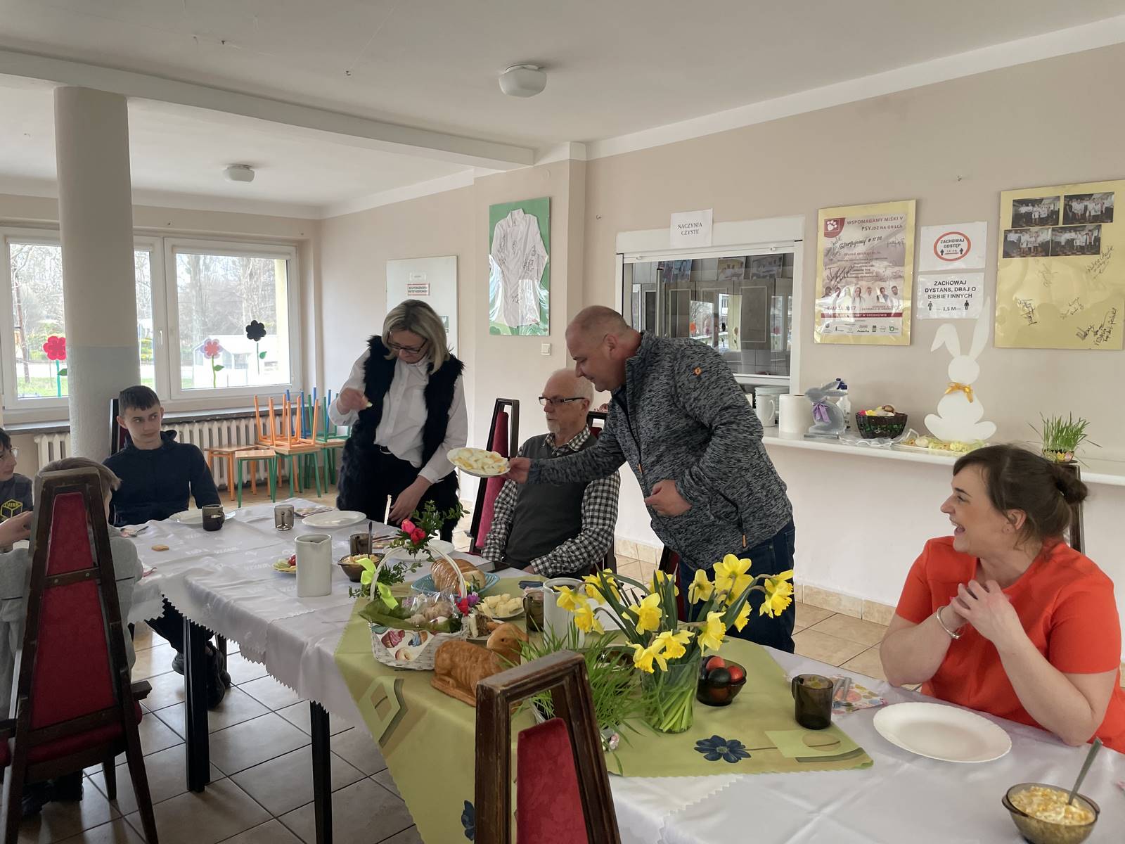 Wszyscy mogli raczyć się przygotowanymi na ten dzień posiłkami, związanymi z tradycją Świąt Wielkiej Nocy. Wychowawcy i wychowankowie wespół podzielili się również jajkiem. Na koniec wychowawcy zorganizowali konkurs na najpiękniejszą pisankę. Najładnieszą pracę wykonał Kacper Danyluk, następny był Patryk Zapotoczny.
