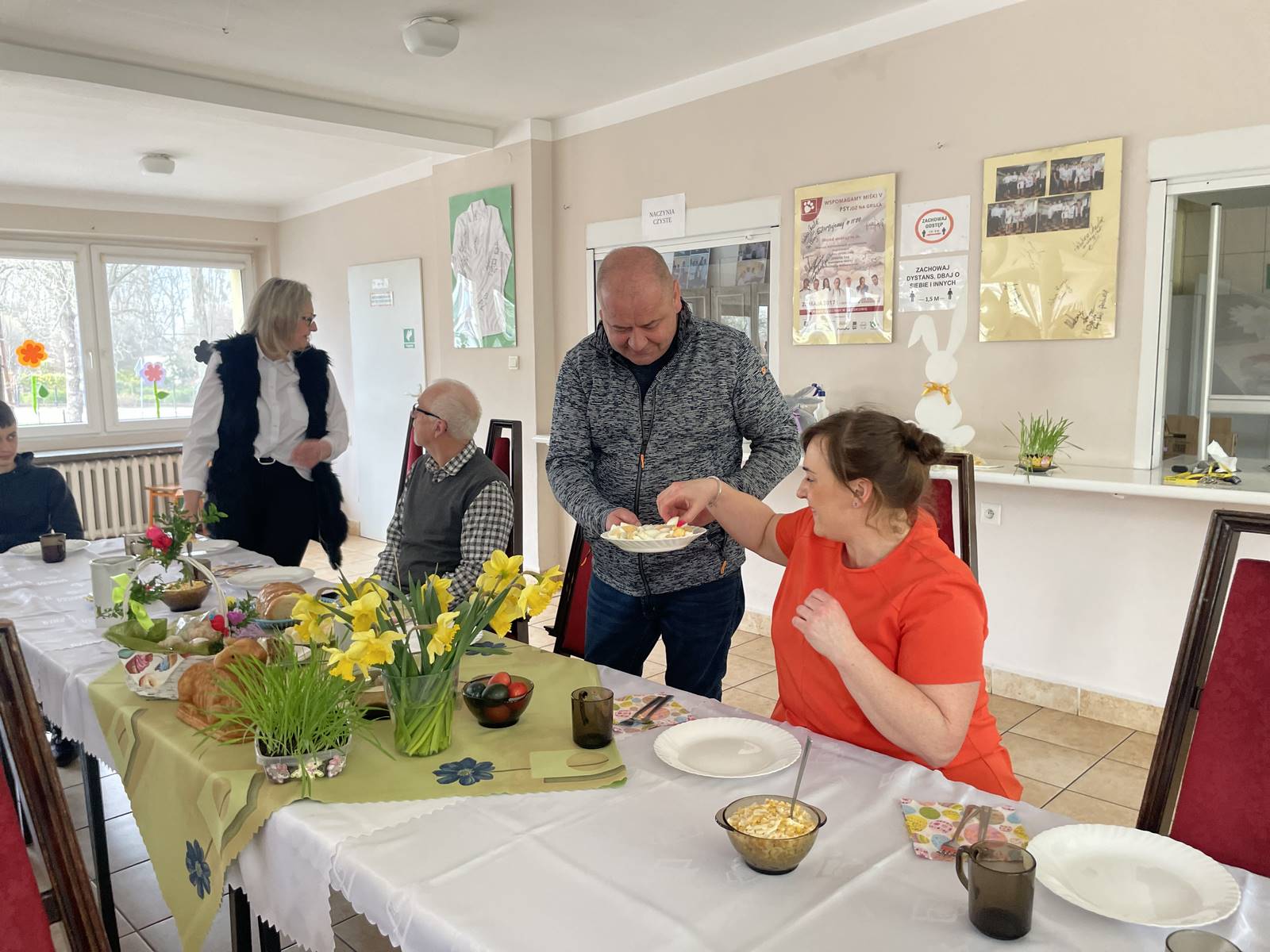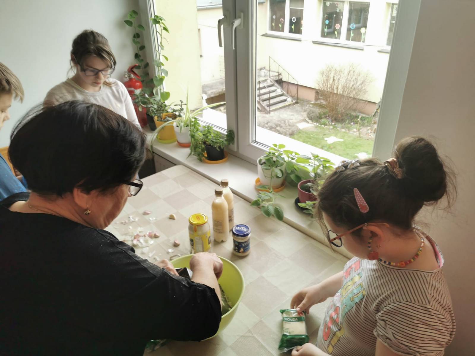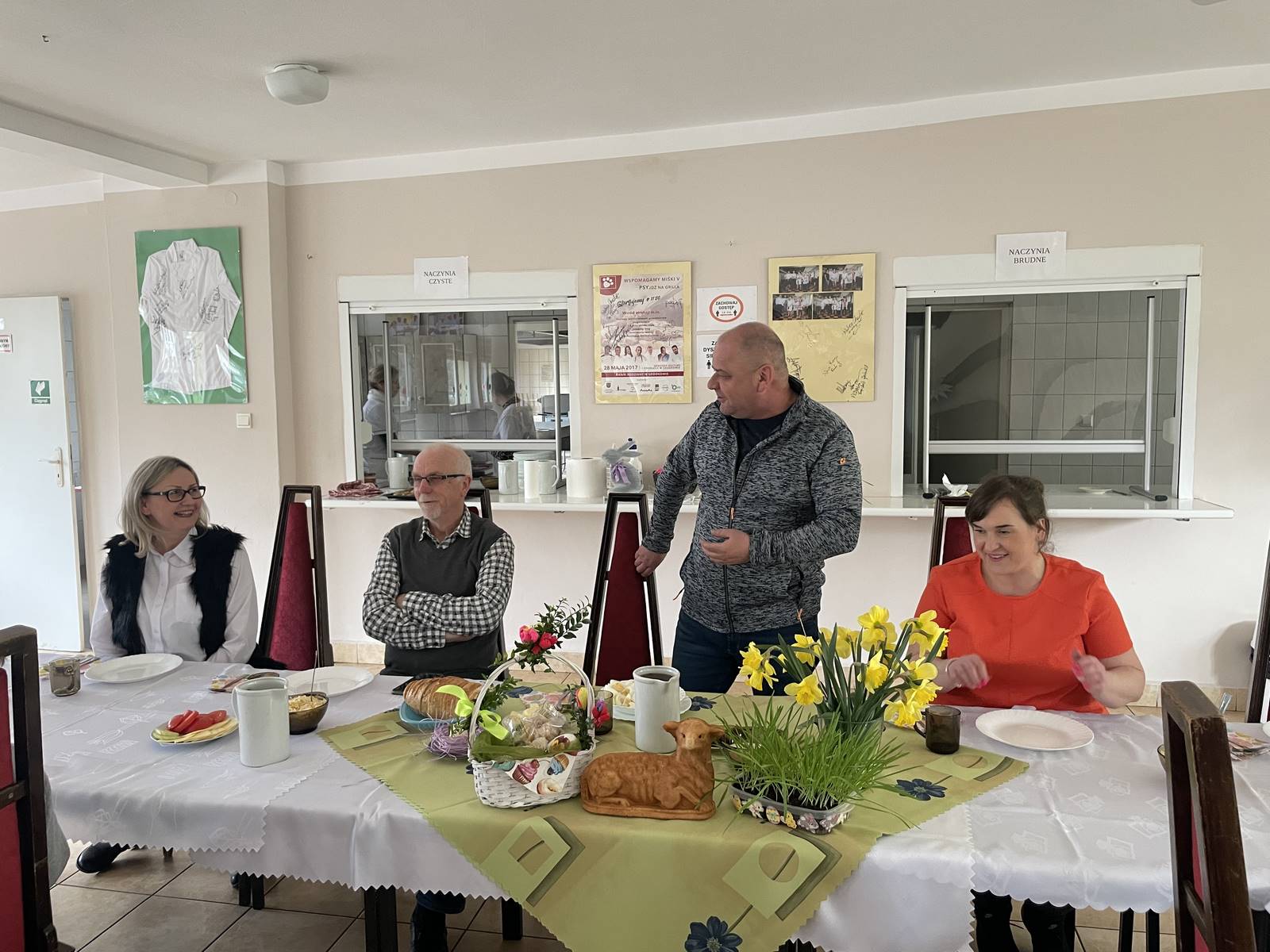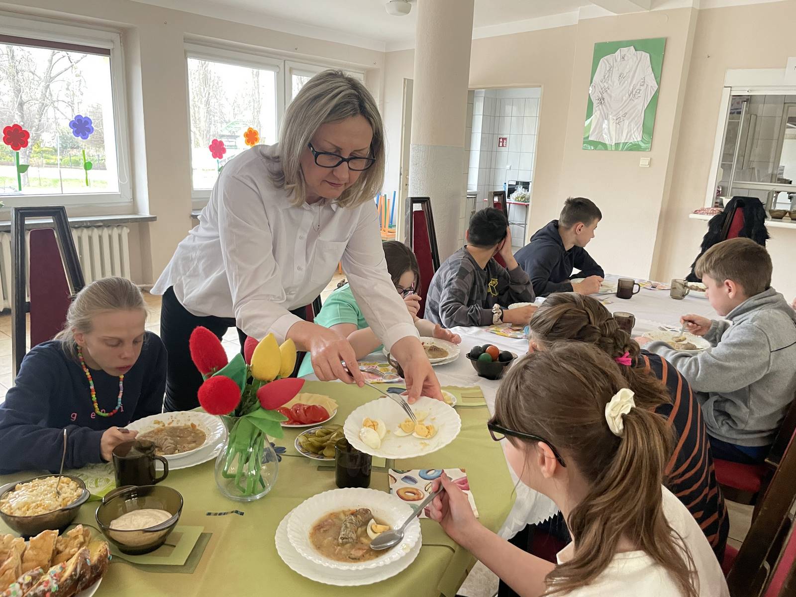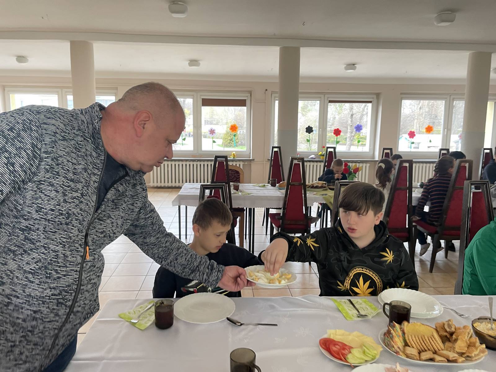 Wszyscy mogli raczyć się przygotowanymi na ten dzień posiłkami, związanymi z tradycją Świąt Wielkiej Nocy. Wychowawcy i wychowankowie wespół podzielili się również jajkiem. Na koniec wychowawcy zorganizowali konkurs na najpiękniejszą pisankę. Najładnieszą pracę wykonał Kacper Danyluk, następny był Patryk Zapotoczny.