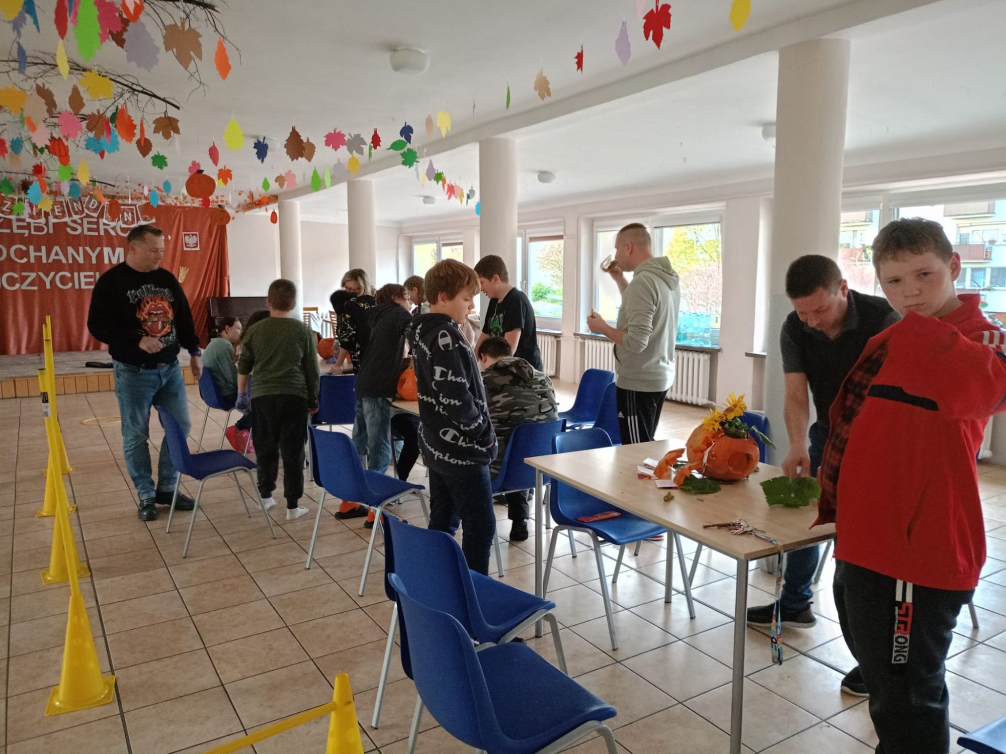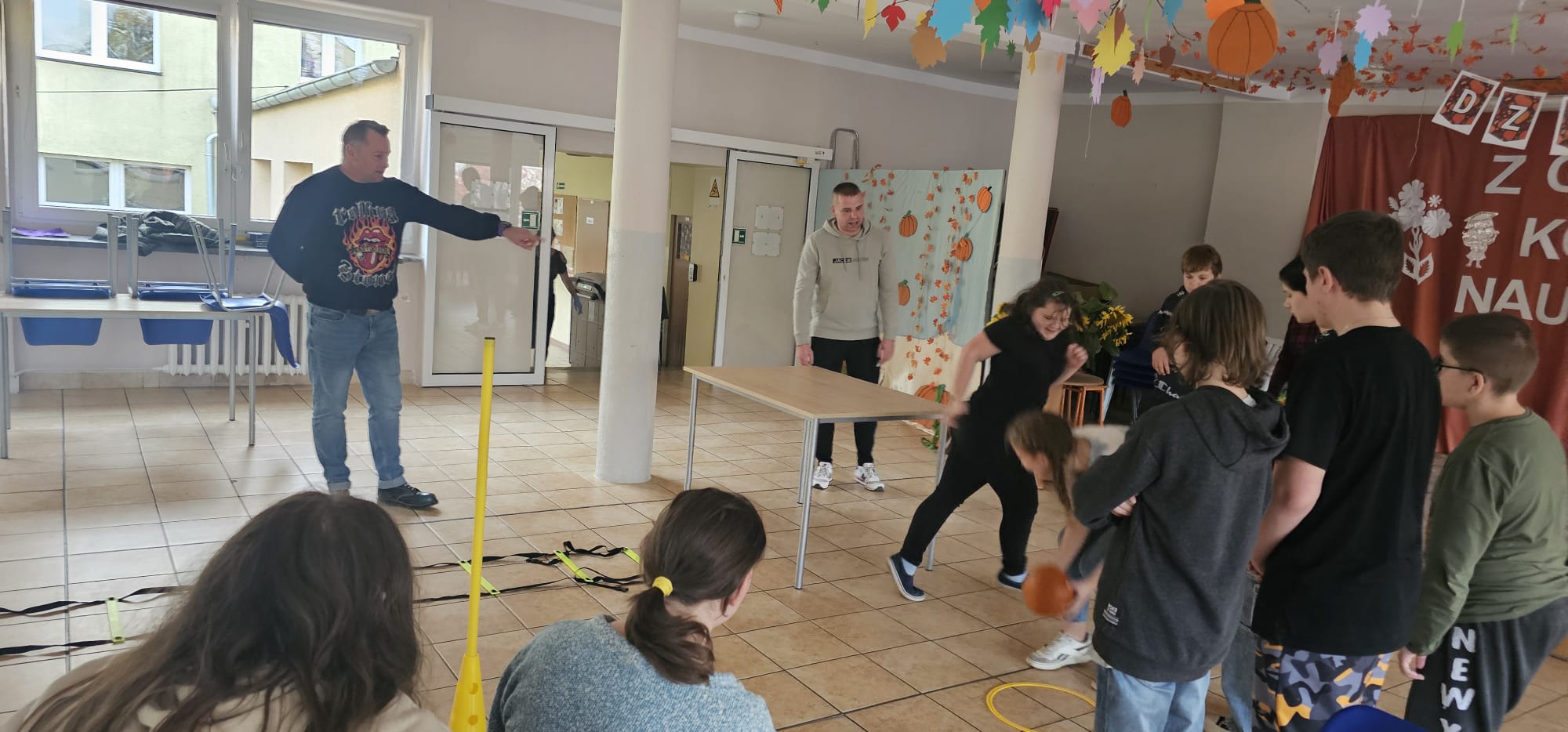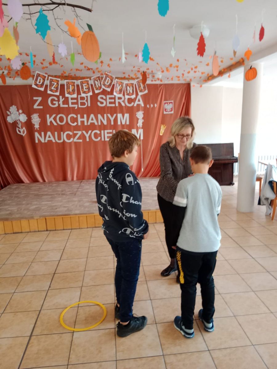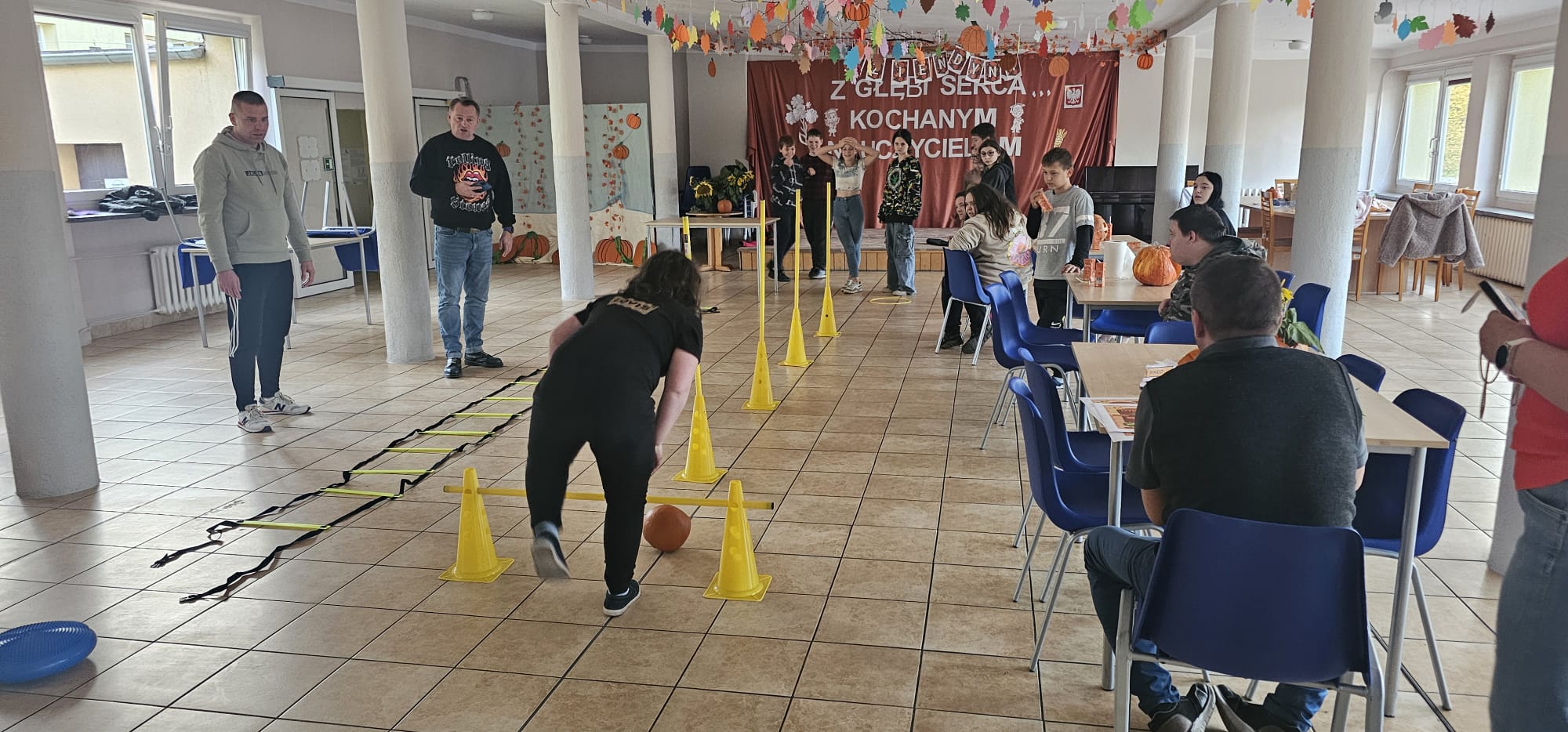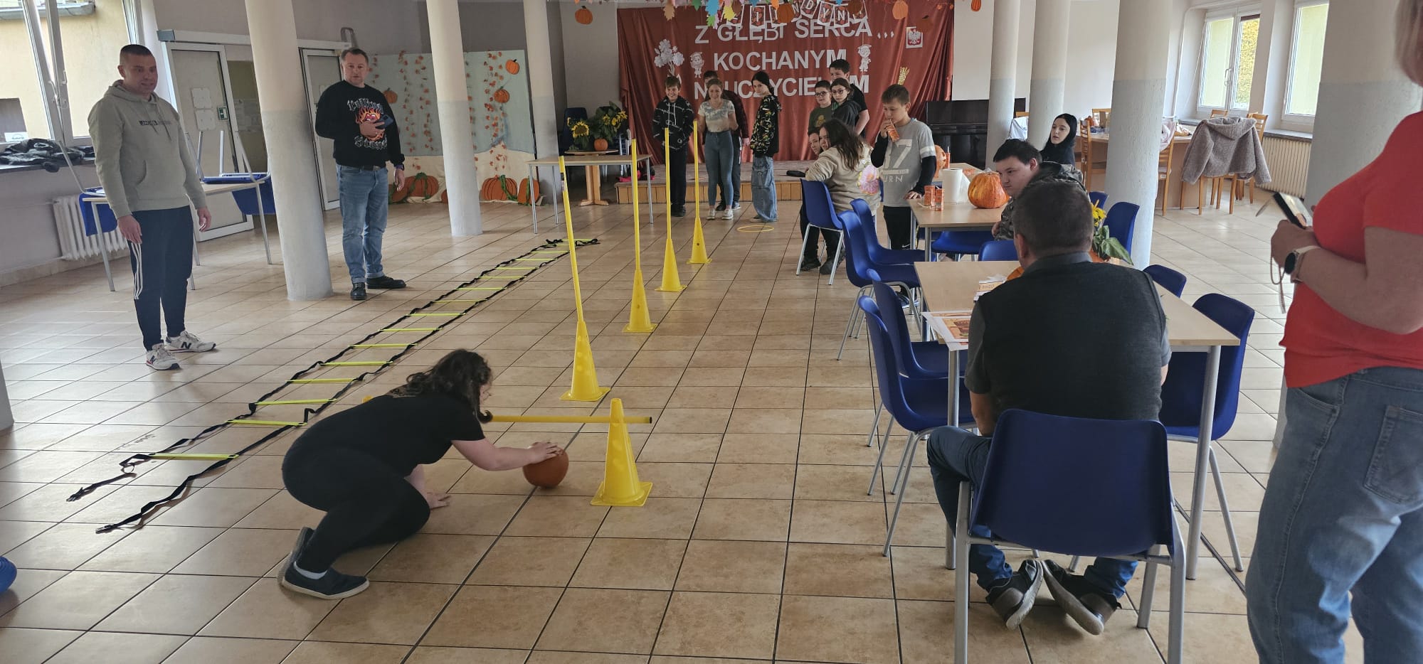 Nie obyło się bez zabawy ruchowej – toru przeszkód z dynią. Zacięta rywalizacja zakończyła się zwycięstwem grupy 3, która wykazała się najlepszą sprawnością i szybkością.