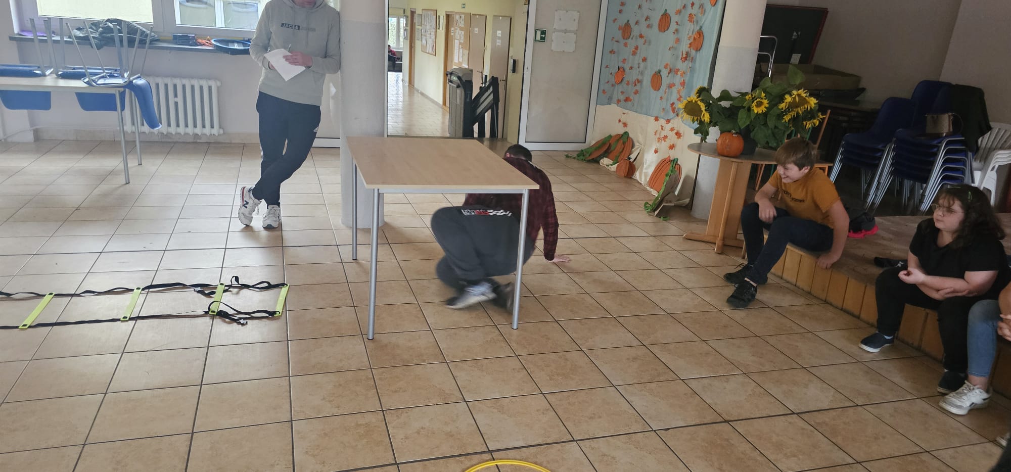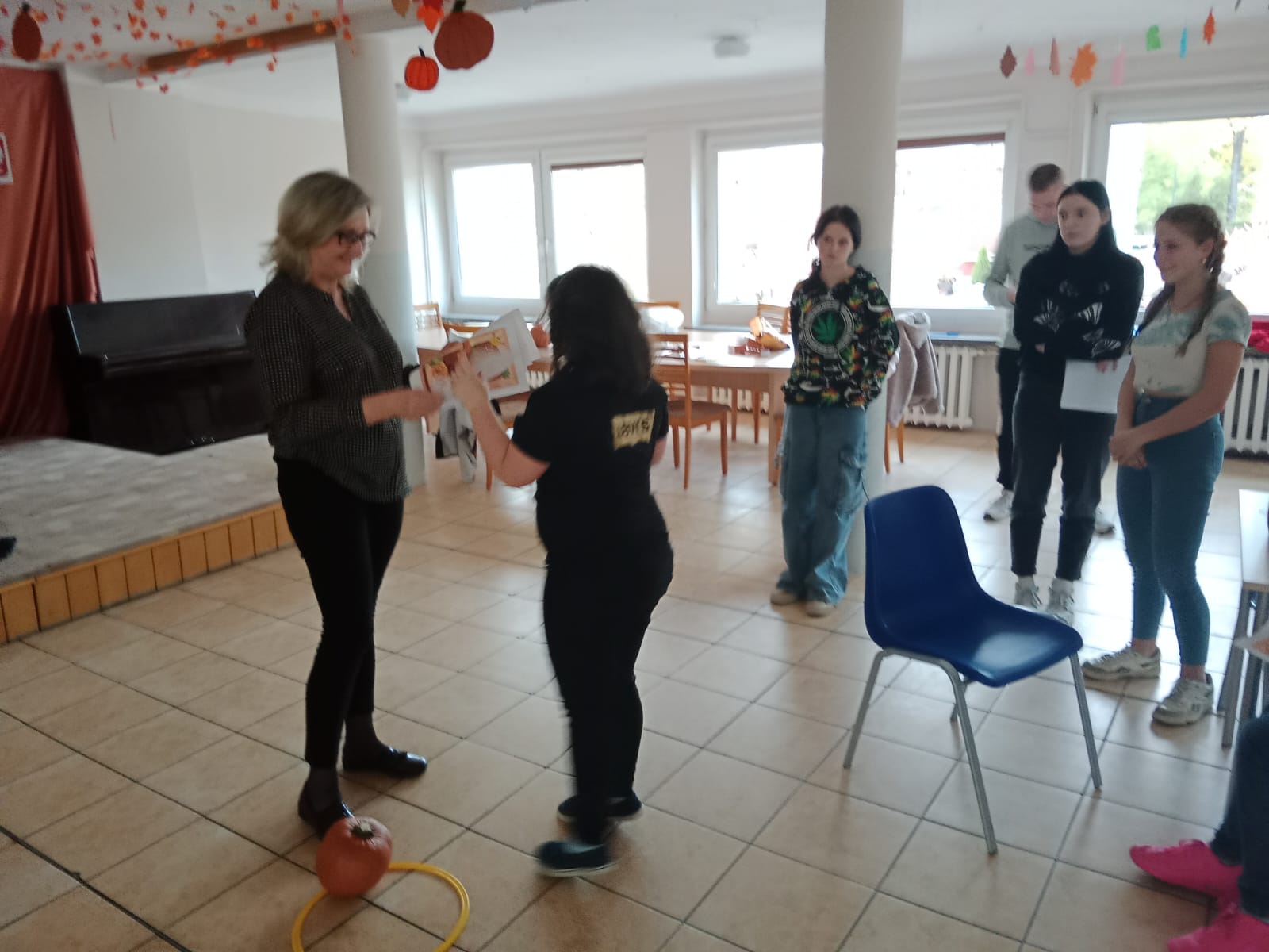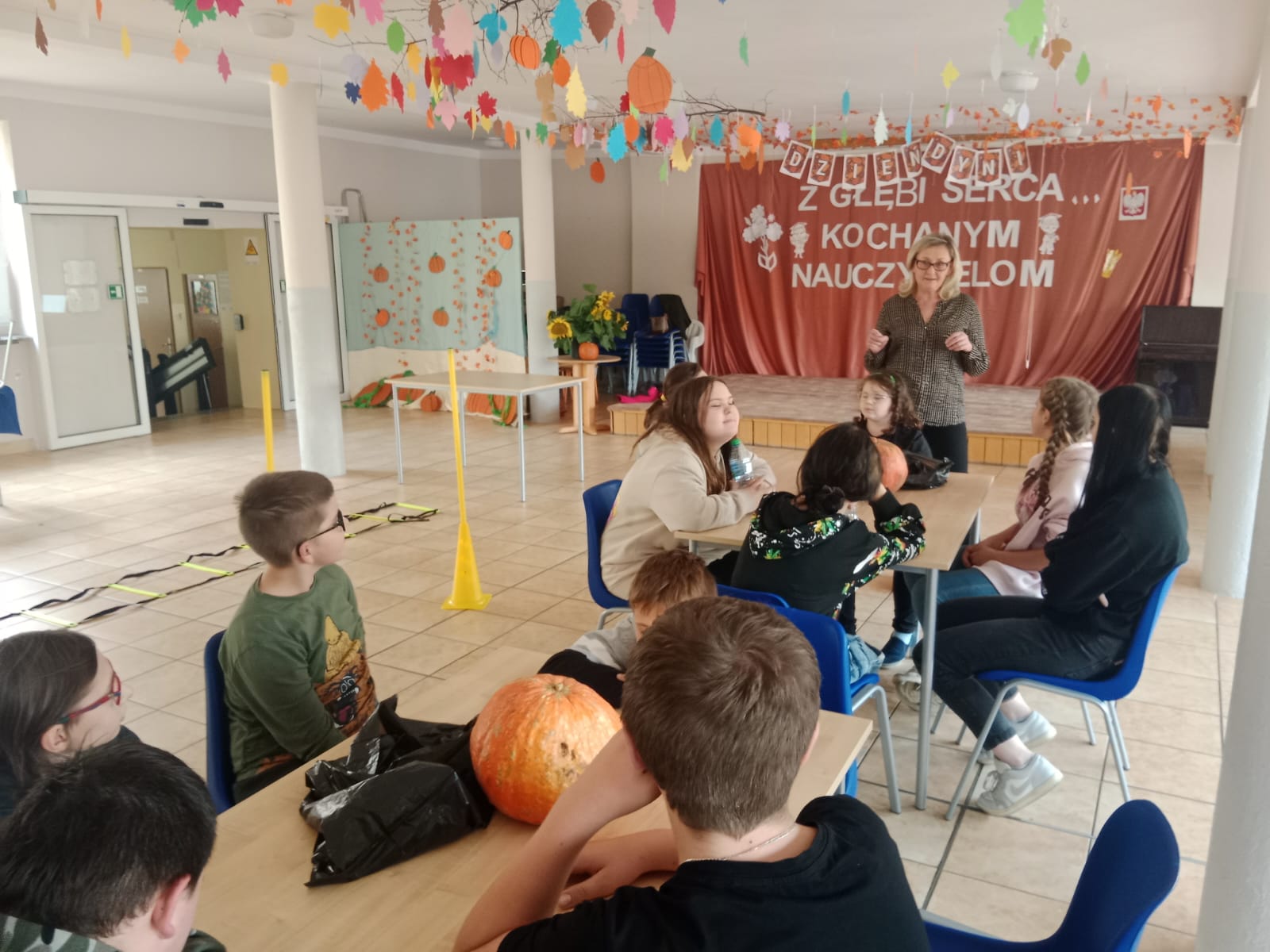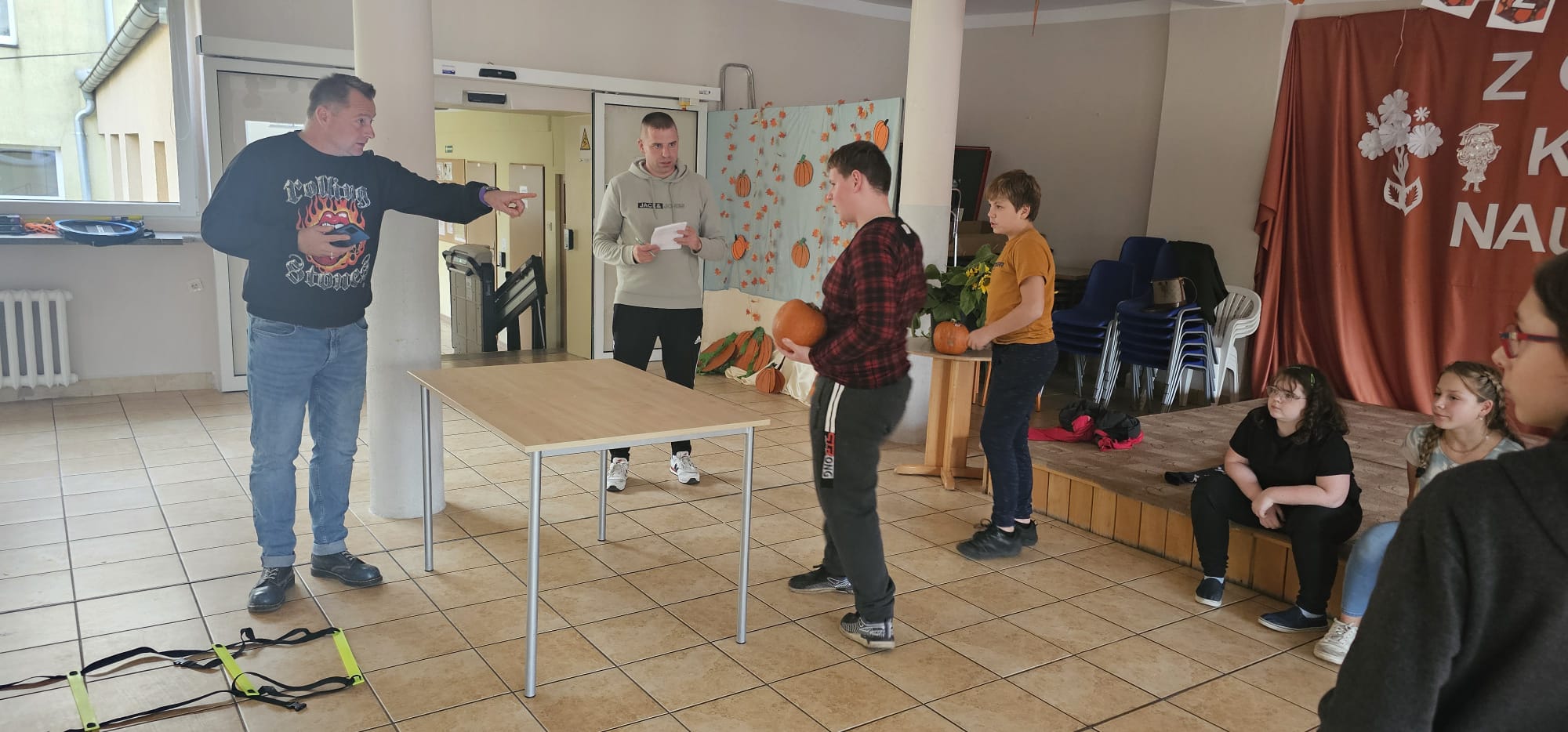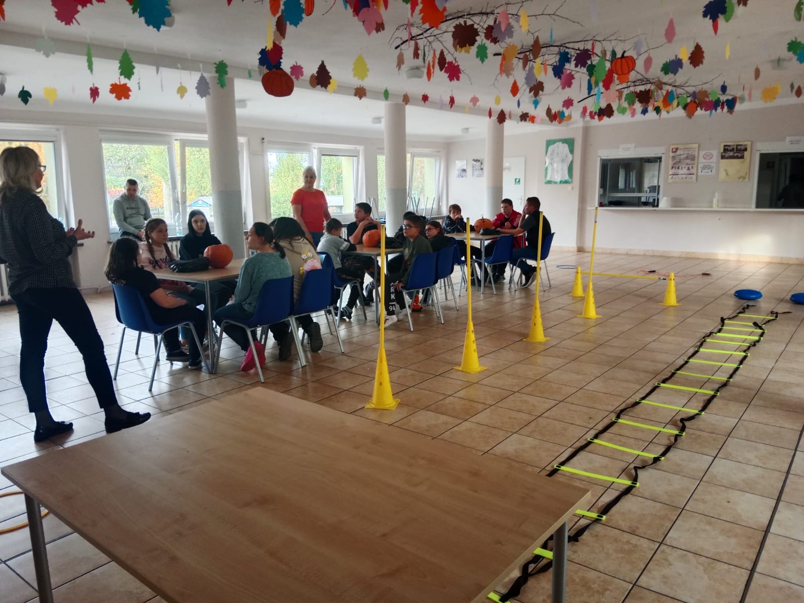 Nie obyło się bez zabawy ruchowej – toru przeszkód z dynią. Zacięta rywalizacja zakończyła się zwycięstwem grupy 3, która wykazała się najlepszą sprawnością i szybkością.