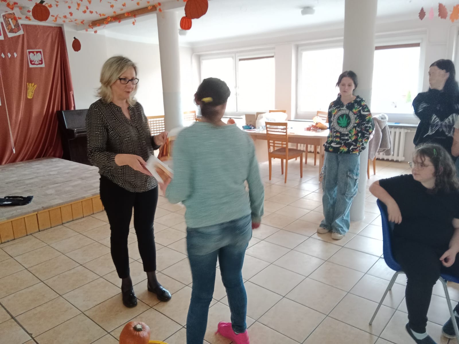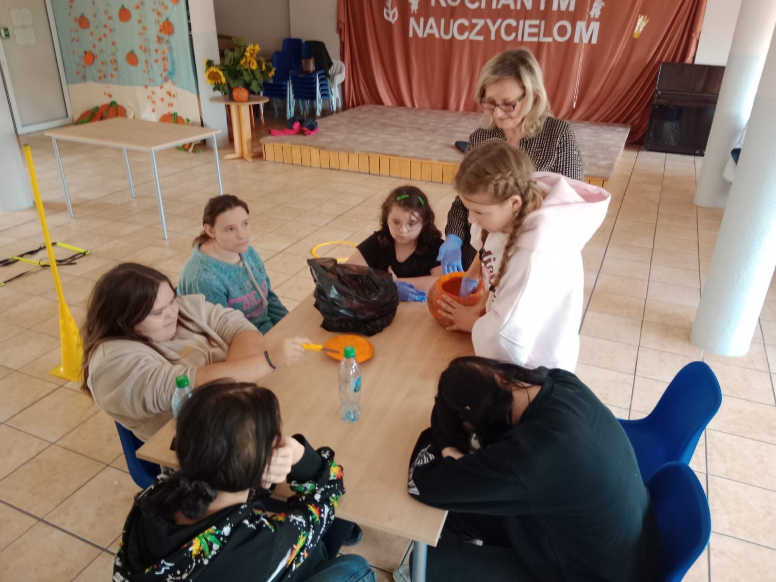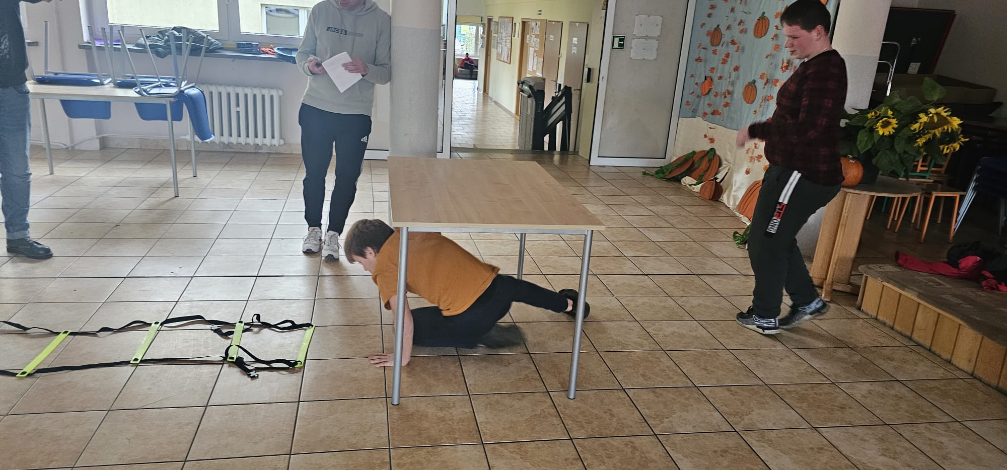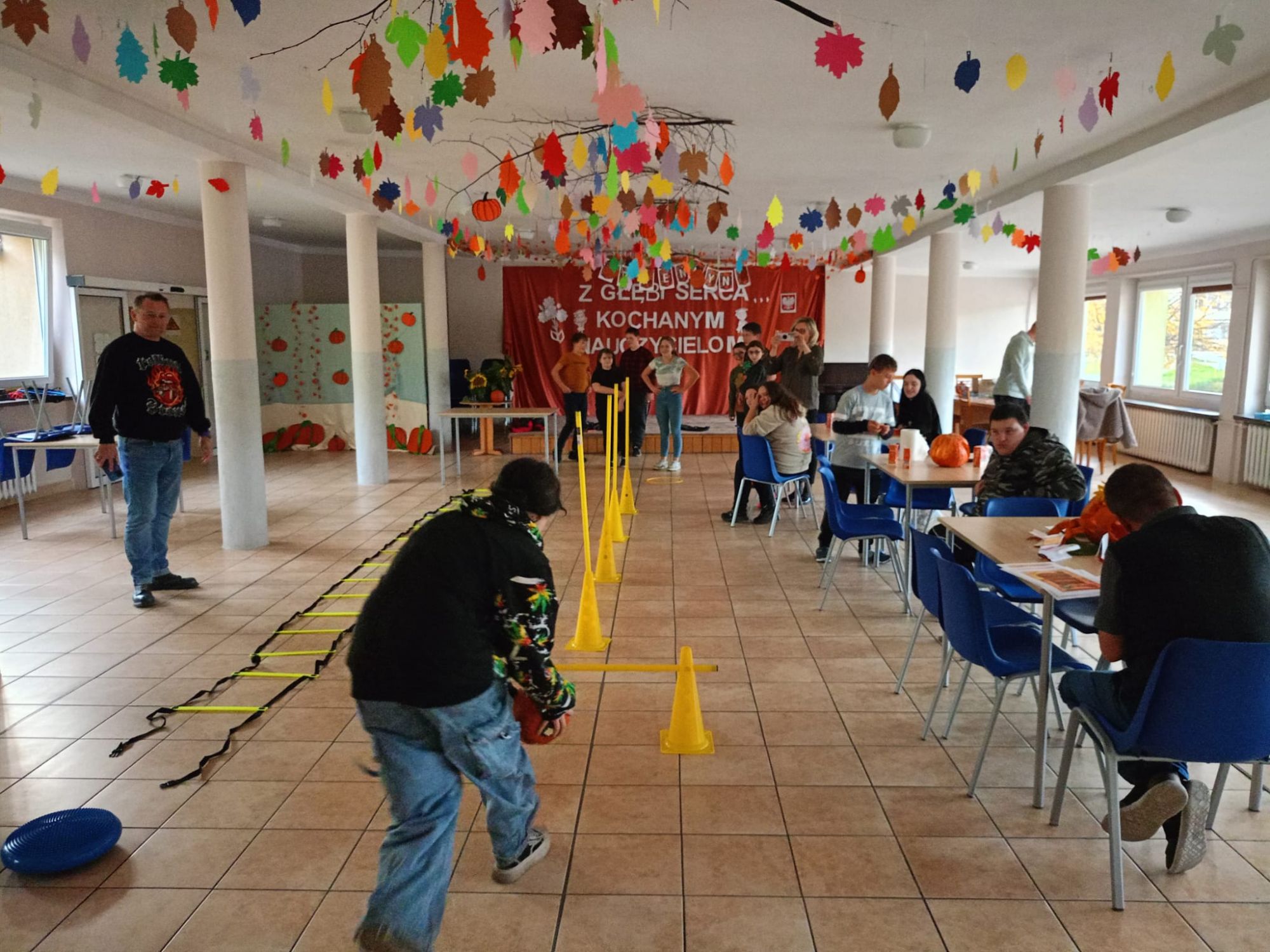 Nie obyło się bez zabawy ruchowej – toru przeszkód z dynią. Zacięta rywalizacja zakończyła się zwycięstwem grupy 3, która wykazała się najlepszą sprawnością i szybkością.