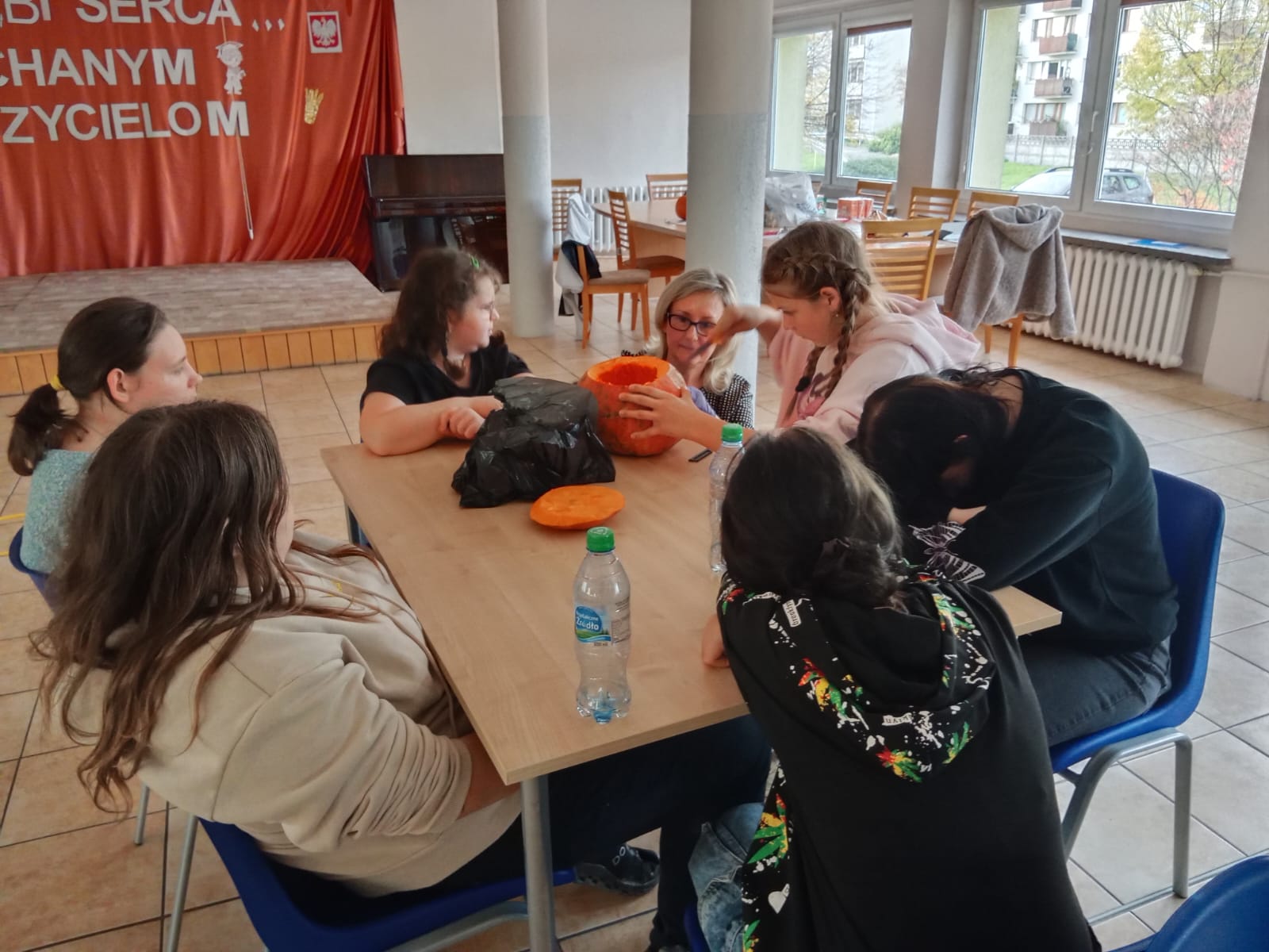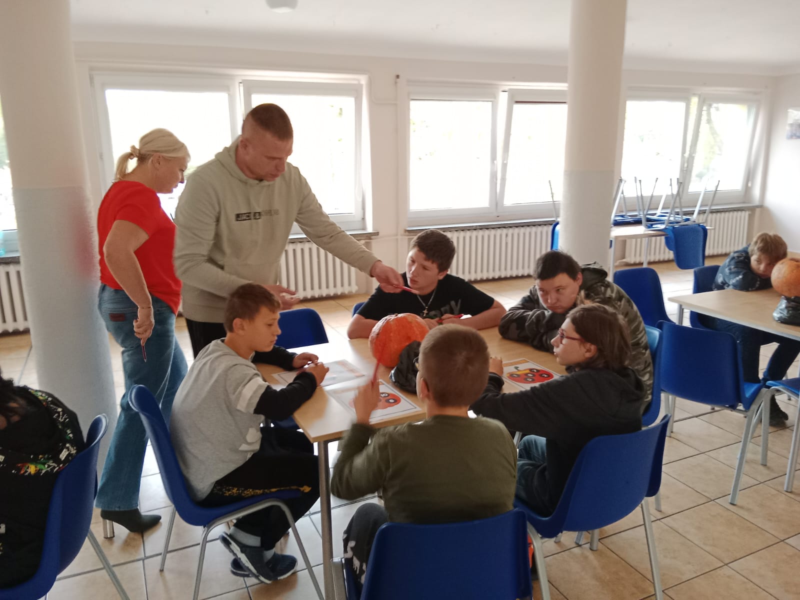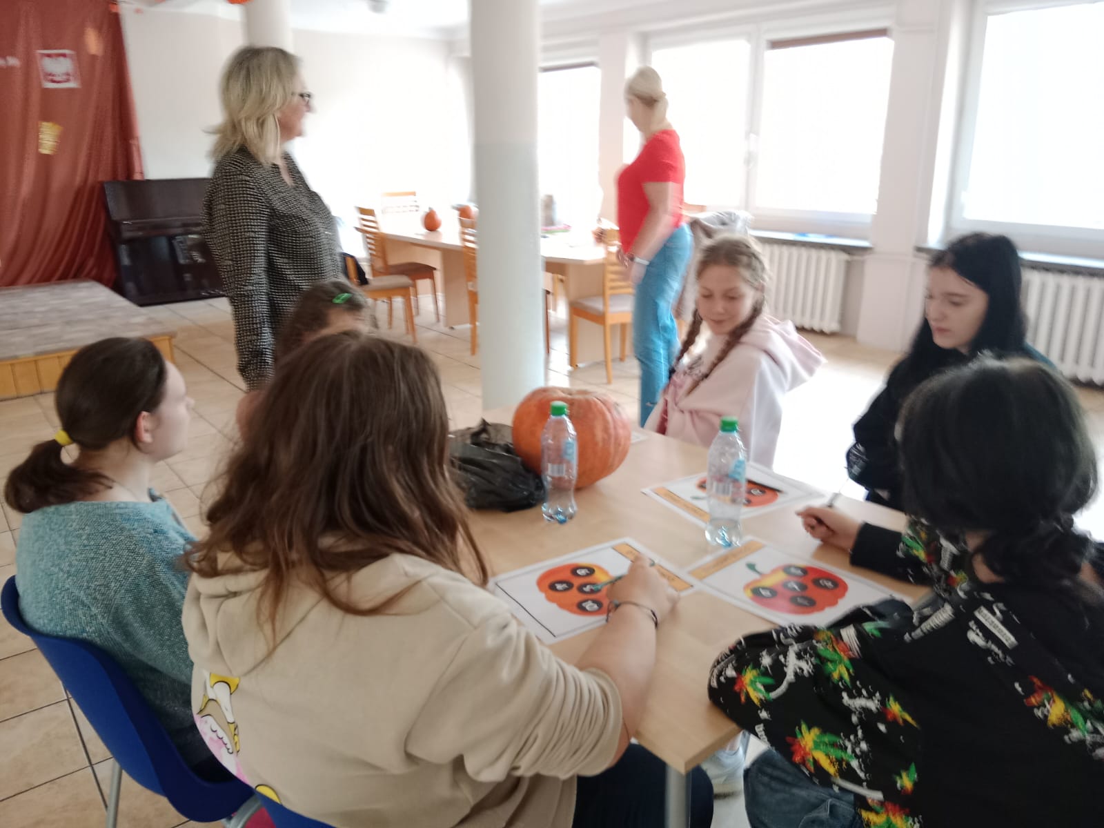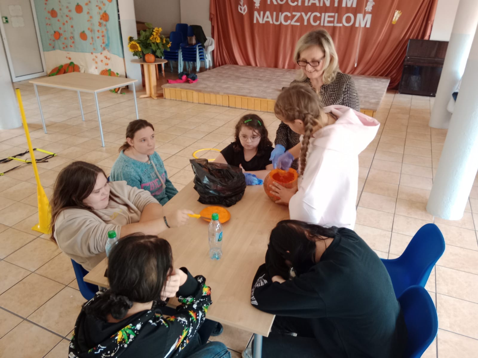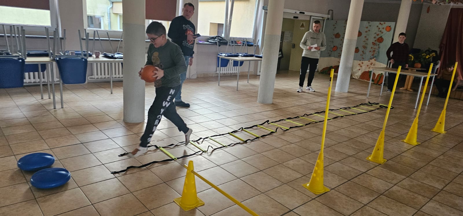 Nie obyło się bez zabawy ruchowej – toru przeszkód z dynią. Zacięta rywalizacja zakończyła się zwycięstwem grupy 3, która wykazała się najlepszą sprawnością i szybkością.