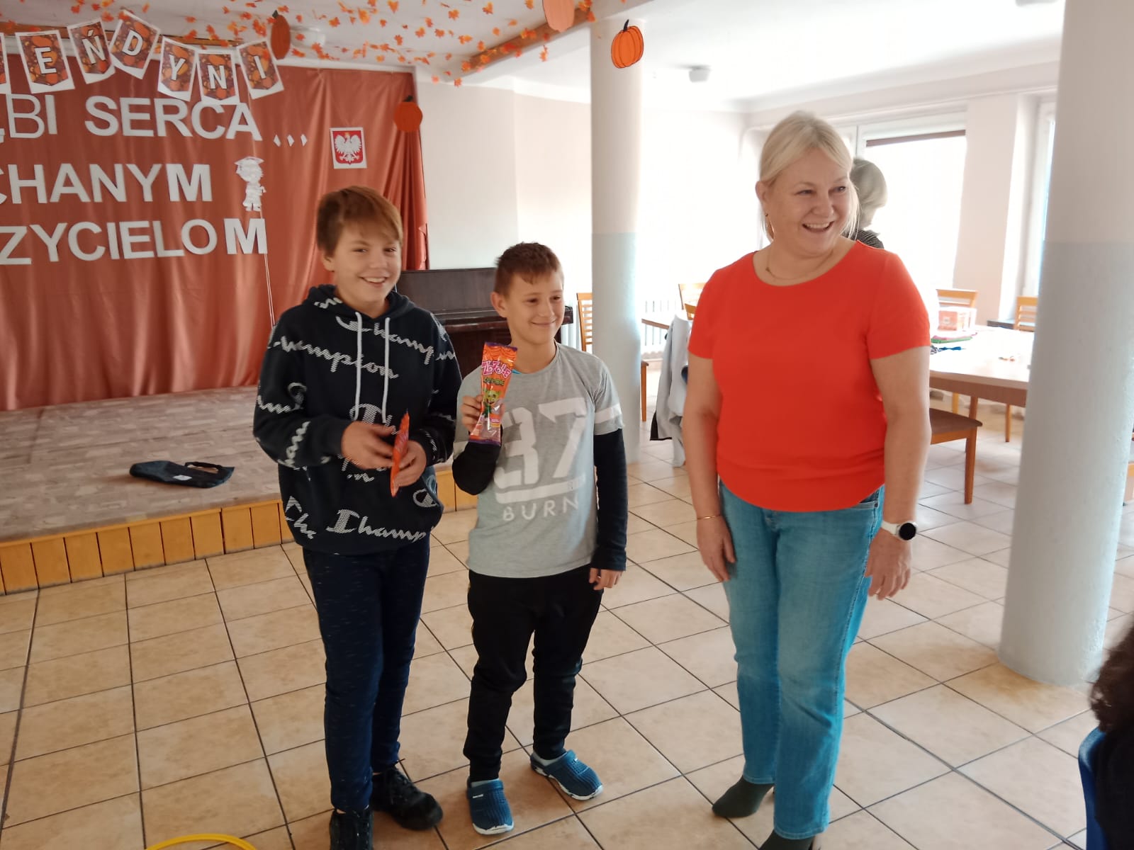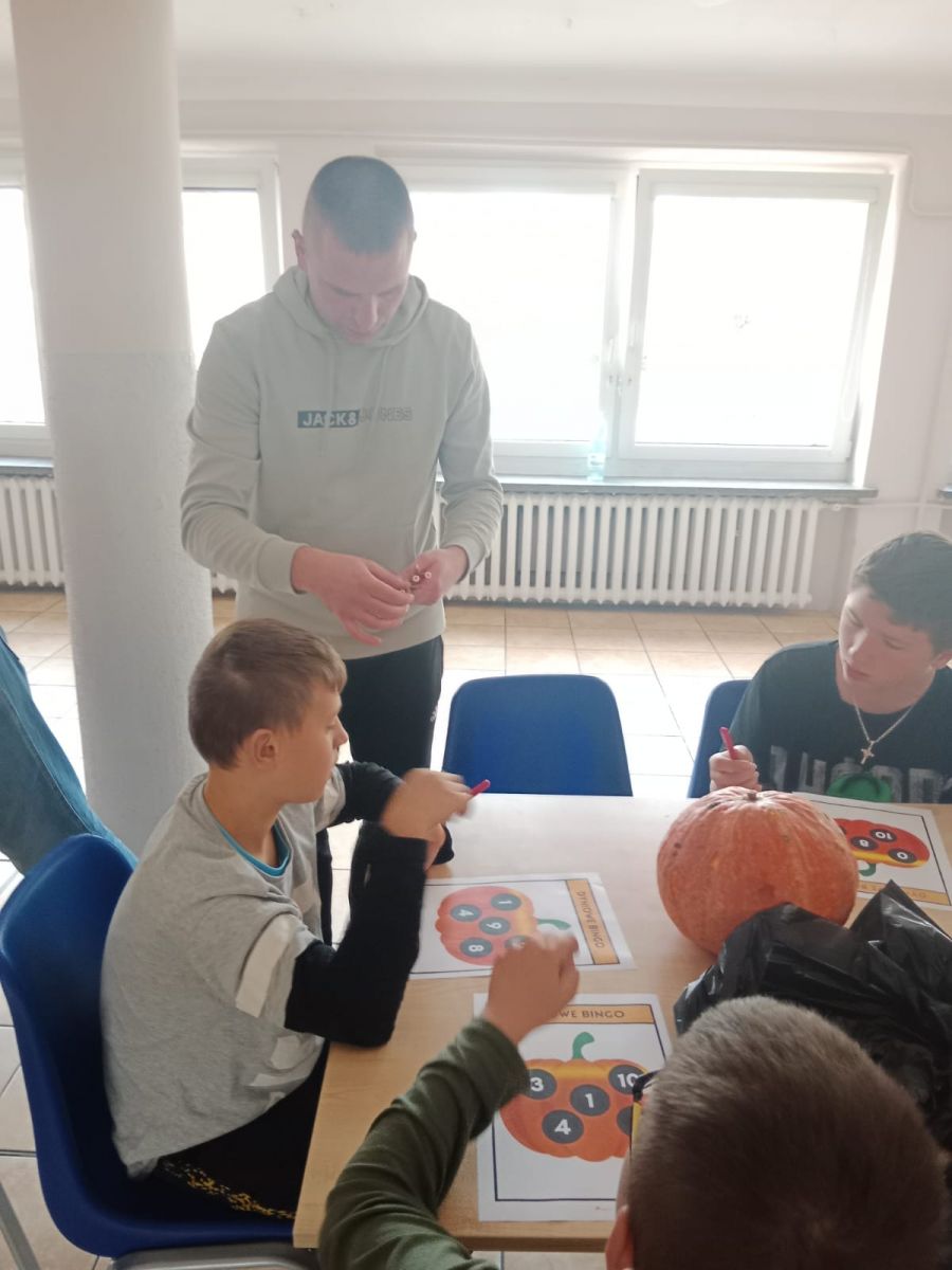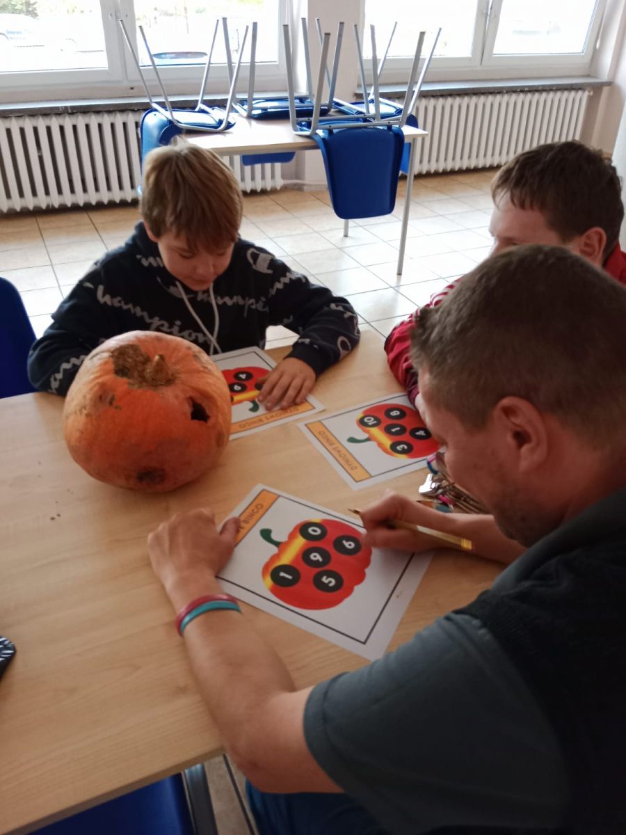 Pierwszym punktem była gra w „Dyniowe bingo”, która wzbudziła ogromne zainteresowanie. Uczestnicy z zapałem brali udział w rozgrywce, a ostatecznie dwóch chłopców Kacper Danyluk i Bartosz Czeredrecki wywalczyli zwycięstwo wykazując się refleksem i spostrzegawczością.