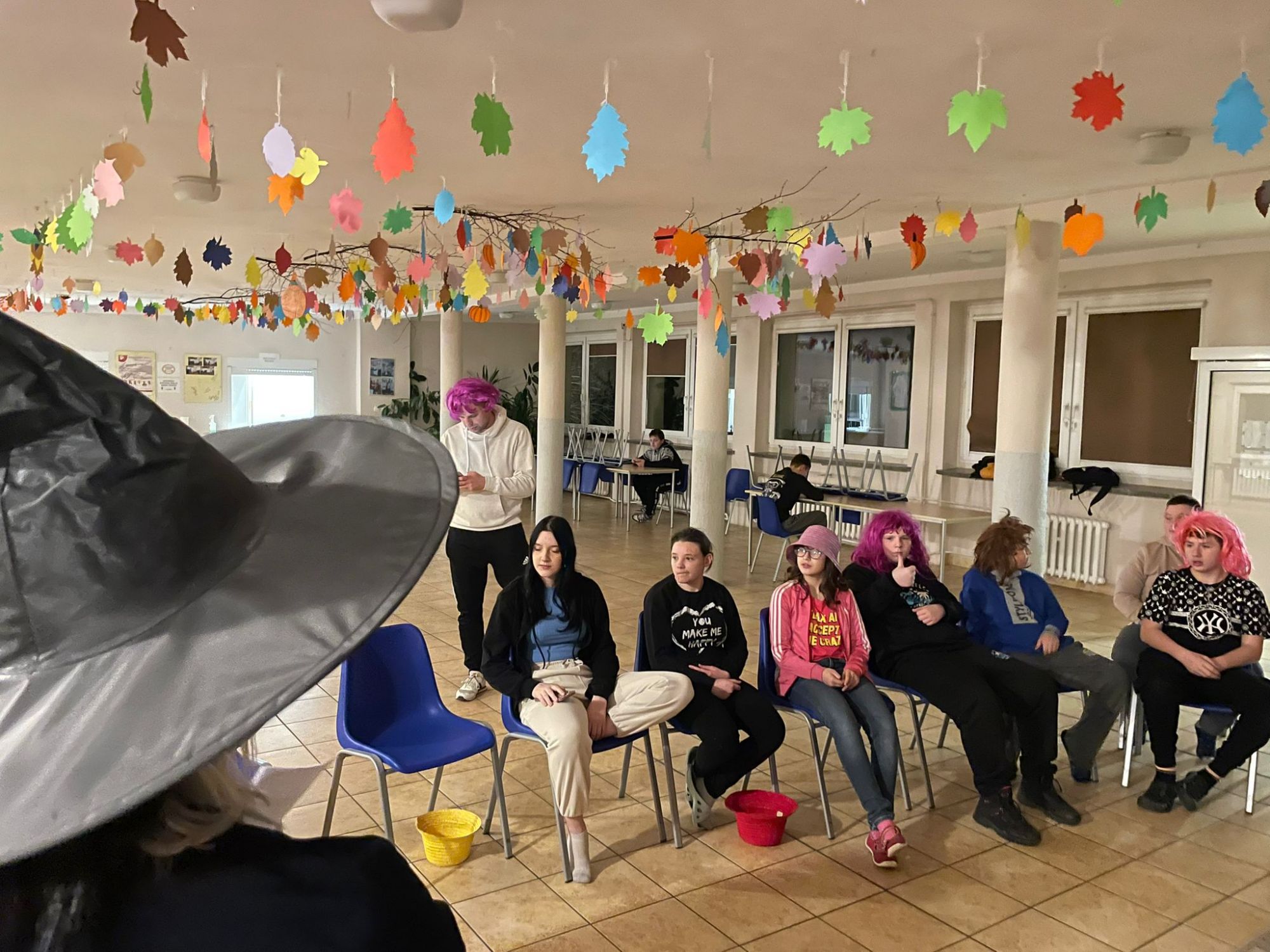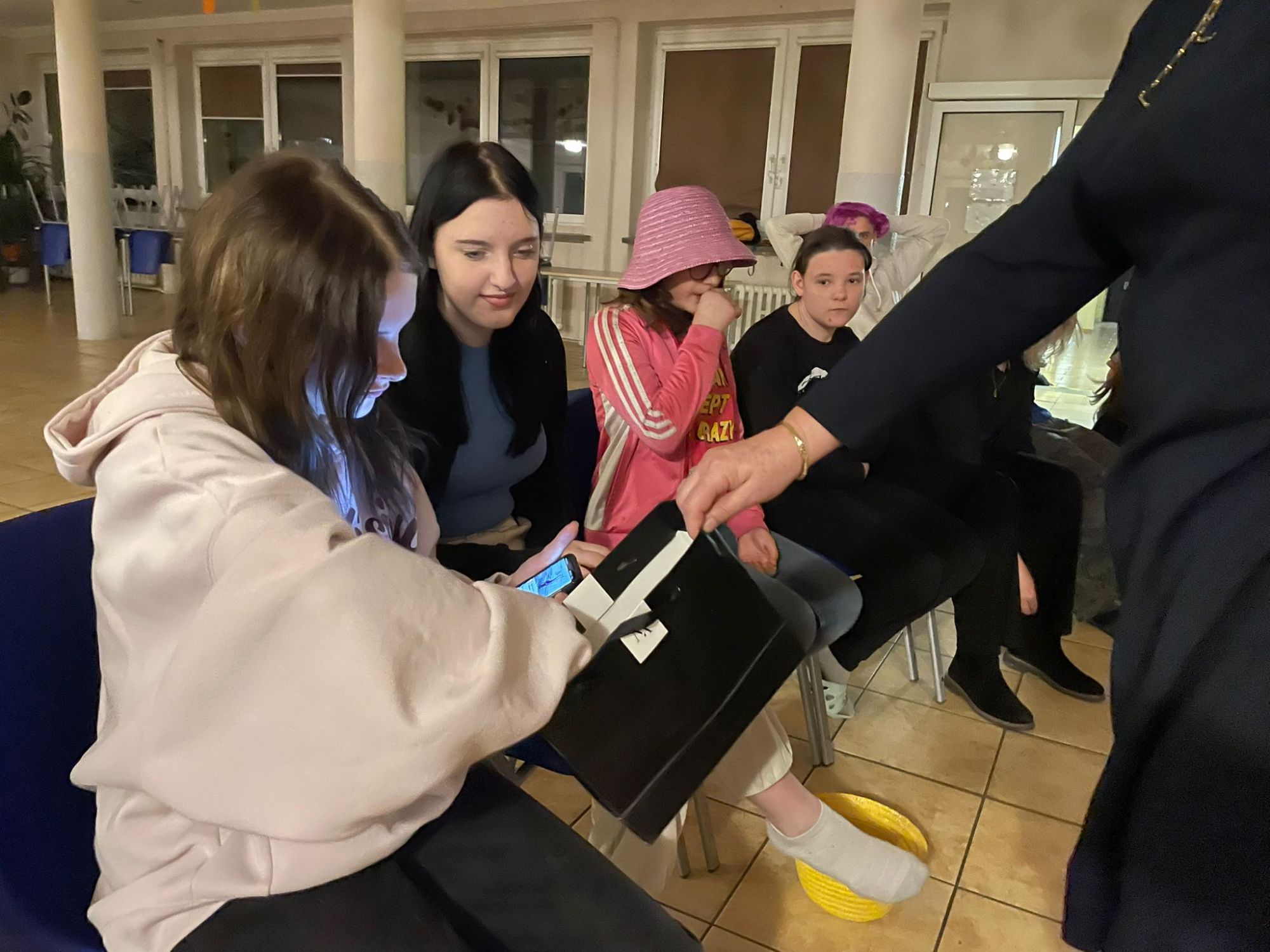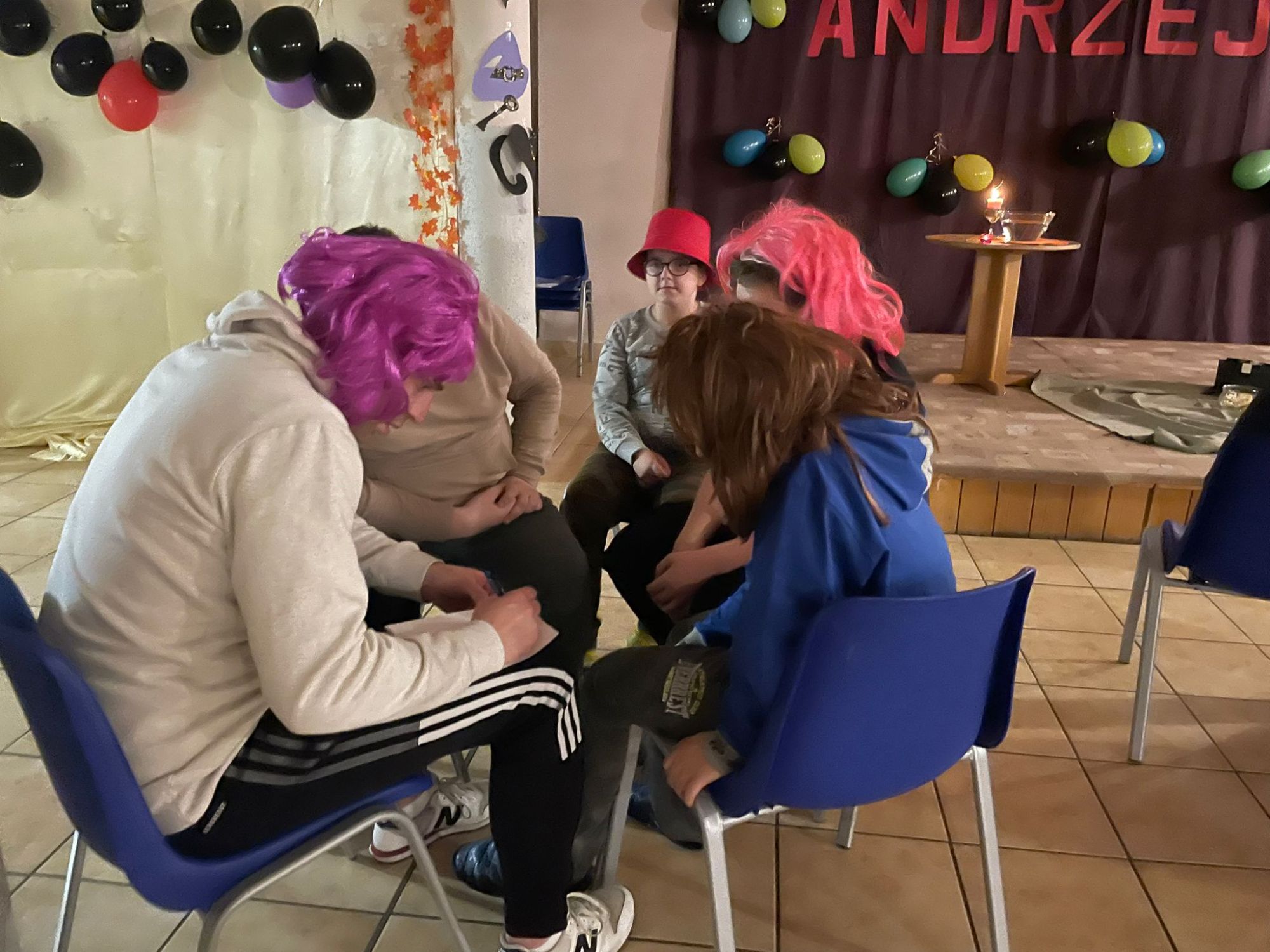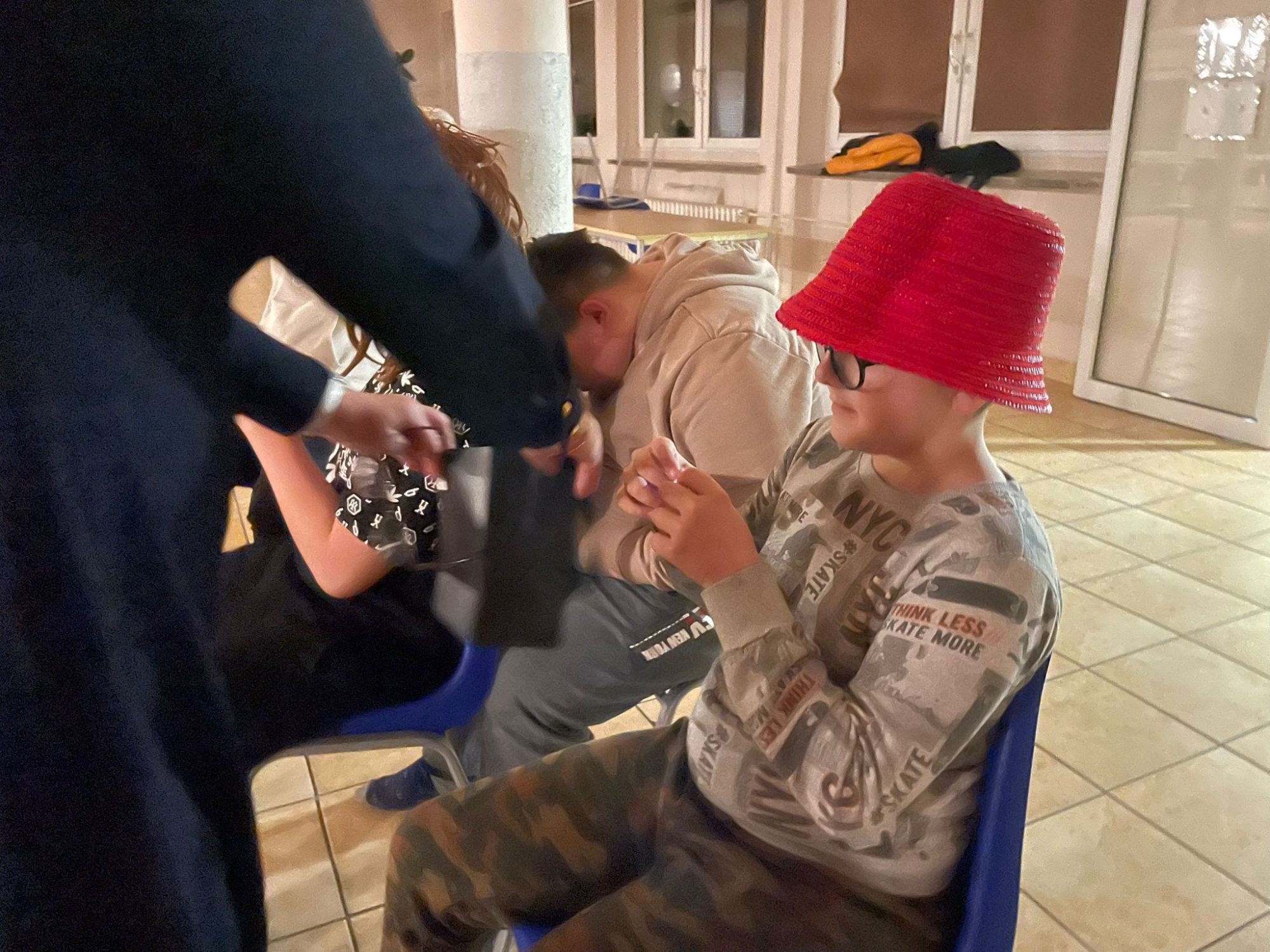Atmosfera była niezwykła – półmrok, świece oraz dekoracje z motywami sów, księżyca i czarnych kotów przeniosły nas w tajemniczy świat magii. Wychowankowie mogli spróbować swoich sił w laniu wosku, wróżeniu z ciasteczek, wróżbach karteczkowych czy wróżbie z butami. Kreatywne interpretacje woskowych figur i mnóstwo śmiechu towarzyszyły każdej wróżbie.
