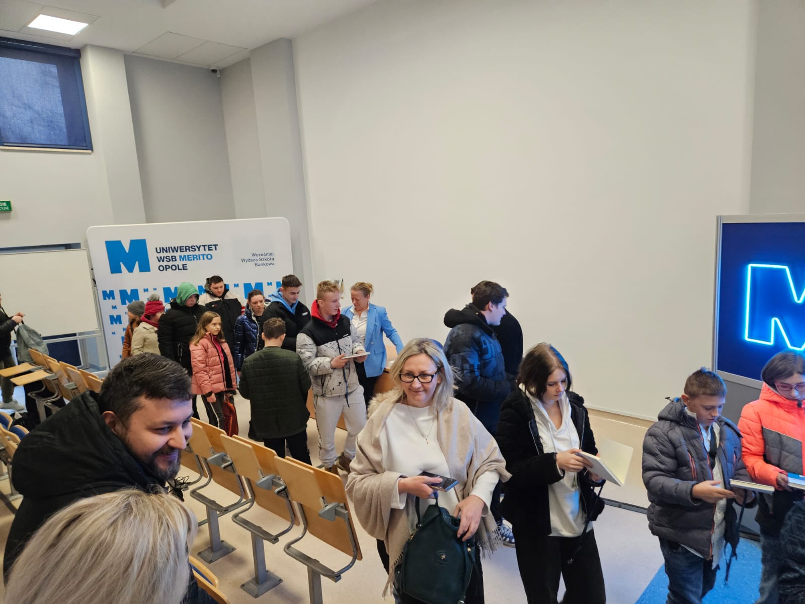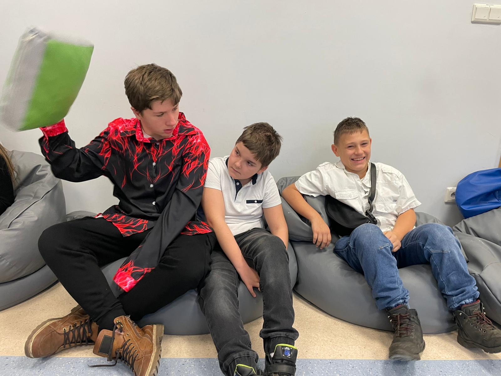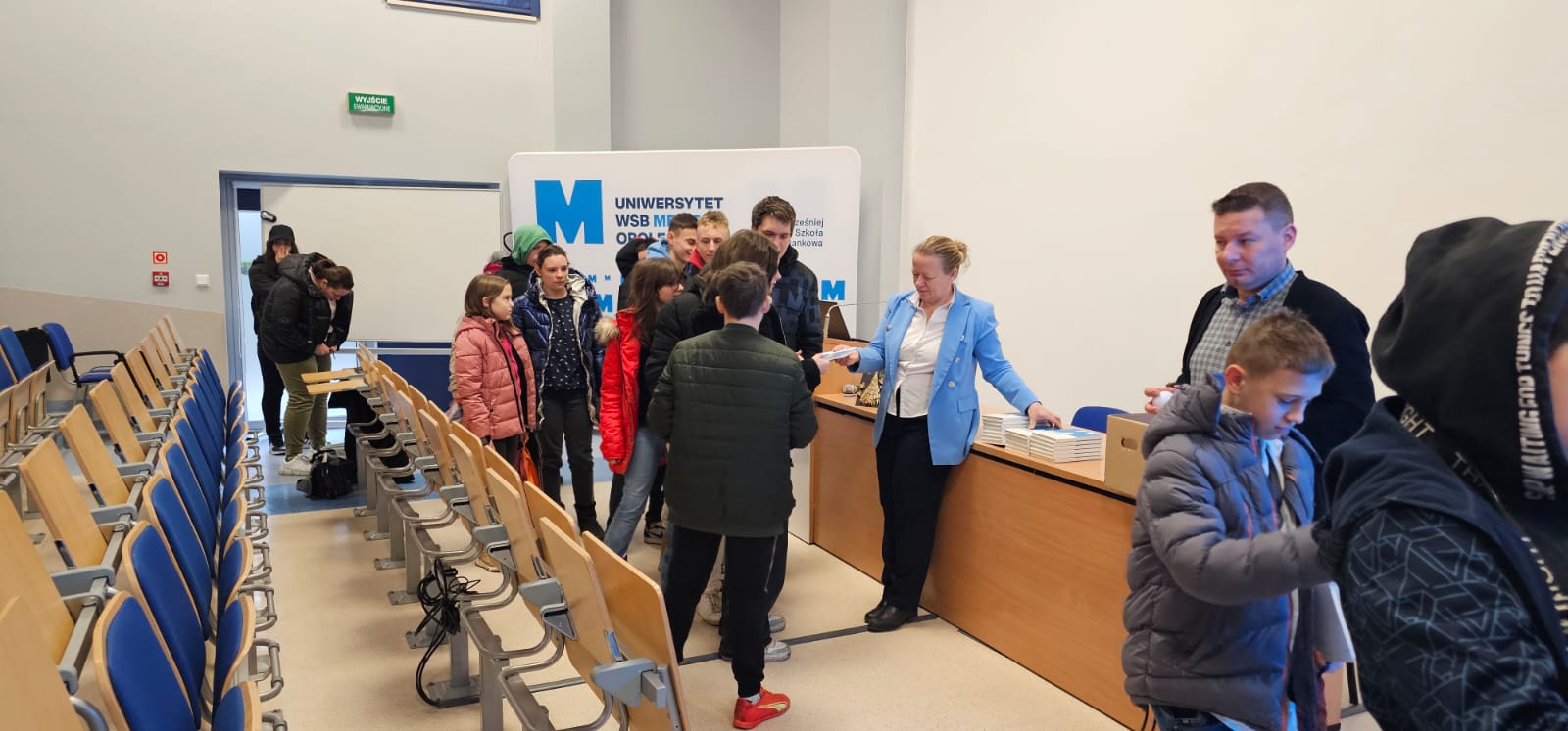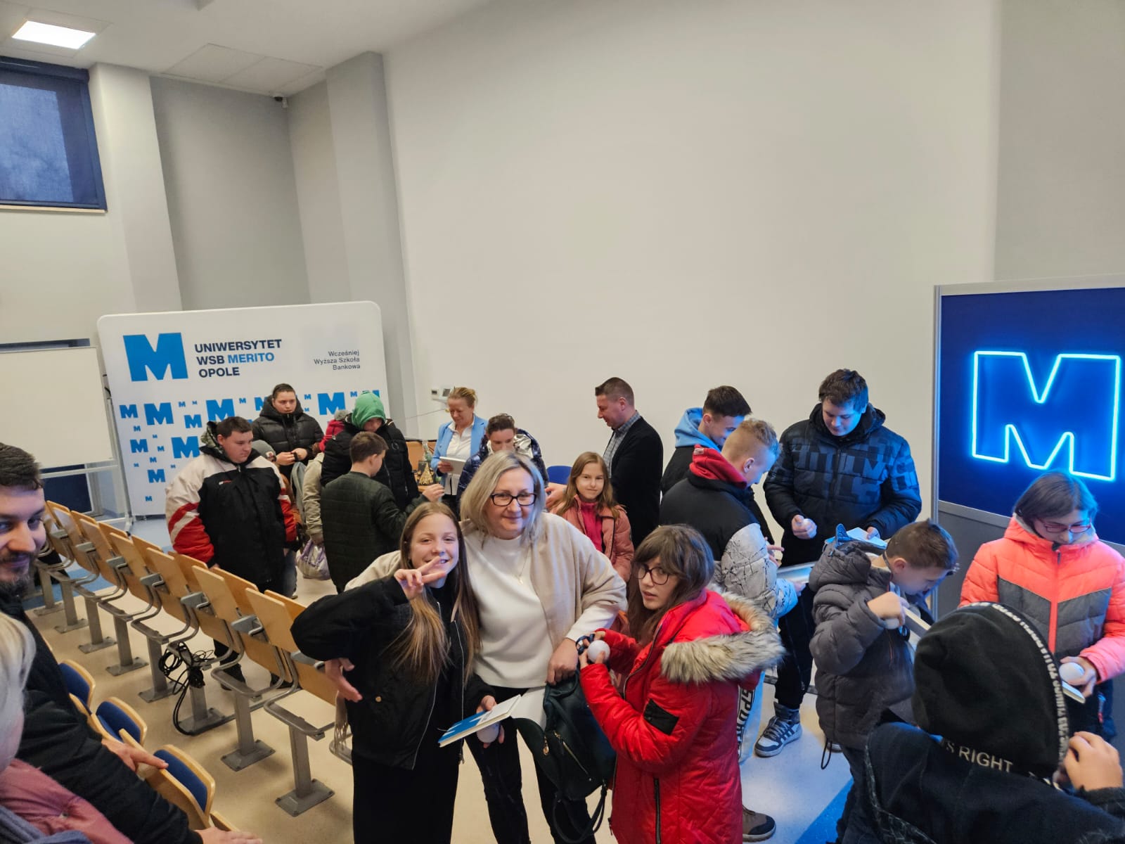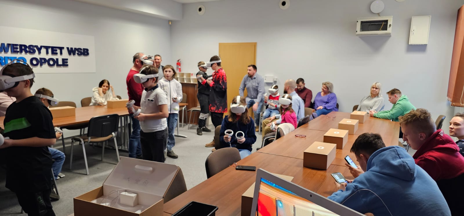Pod opieką wychowawców uczestnicy brali udział w wydarzeniach przygotowanych przez Pracowników uczelni. Spotkanie rozpoczęło się od powitania tak znakomitych Gości przez Panią Elżbietę Modrzejewską – Pełnomocnika Dziekana ds. Osób z niepełnosprawnościami następnie młodzi adepci nauki po raz pierwszy uczestniczyli w wykładzie akademickim dotyczącym cyberbezpieczeństwa w przestrzeni szkolnej wygłoszonym przez Pana Sebastiana Wilczek. Po wykładzie rozpoczęliśmy zwiedzanie uczelni zmierzając na kolejne przygotowane warsztaty. Pokazana została nam biblioteka, Dział Obsługi Dydaktycznej, Dziekanaty oraz inne przestrzenie związane z nauką i czasem wolnym spędzonym przez studentów na uczelni. Dotarliśmy do sali dedykowanej treningom umiejętności społecznych - tam zaczęło się dopiero aktywne działanie początkowo grupowe, a następnie zespołowe. Dużo radości jak również skupienia okazało się zaliczeniem treningu. Trzecie wirtualne zajęcia przestrzenne było znane naszym wychowankom, ale nie na możliwość ich realizacji na taką skalę osób biorących udział w działaniu – nie chciało się wychodzić z tej pracowni gdzie warsztaty prowadzili Panowie Tomasz Stec i Sebastian Wilczek. Jednak pędzący czas sprawił, że powróciliśmy do miejsca początkowego czyli auli uniwersyteckiej, gdzie przygotowano dla nas test sprawdzający wiedzę ogólną, ku zdziwieniu Pani Elżbiety Modrzejewskiej i nas wychowawców nie było żadnej błędnej odpowiedzi ze strony naszej młodzieży. Etapem końcowym wizyty w Uniwersytecie WSB Merito w Opolu było złożenie sobie życzeń świątecznych oraz obdarowanie się wzajemnie upominkami. Przekazaliśmy na ręce Pani Pełnomocnik naszą magiczną choinkę spełniającą marzenia oraz kartkę z życzeniami. Wychowankowie naszego ośrodka otrzymali zestawy dla przyszłych naukowców, którymi na pewno się pochwalą w przestrzeni nie tylko szkolnej.