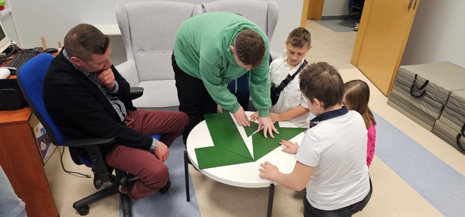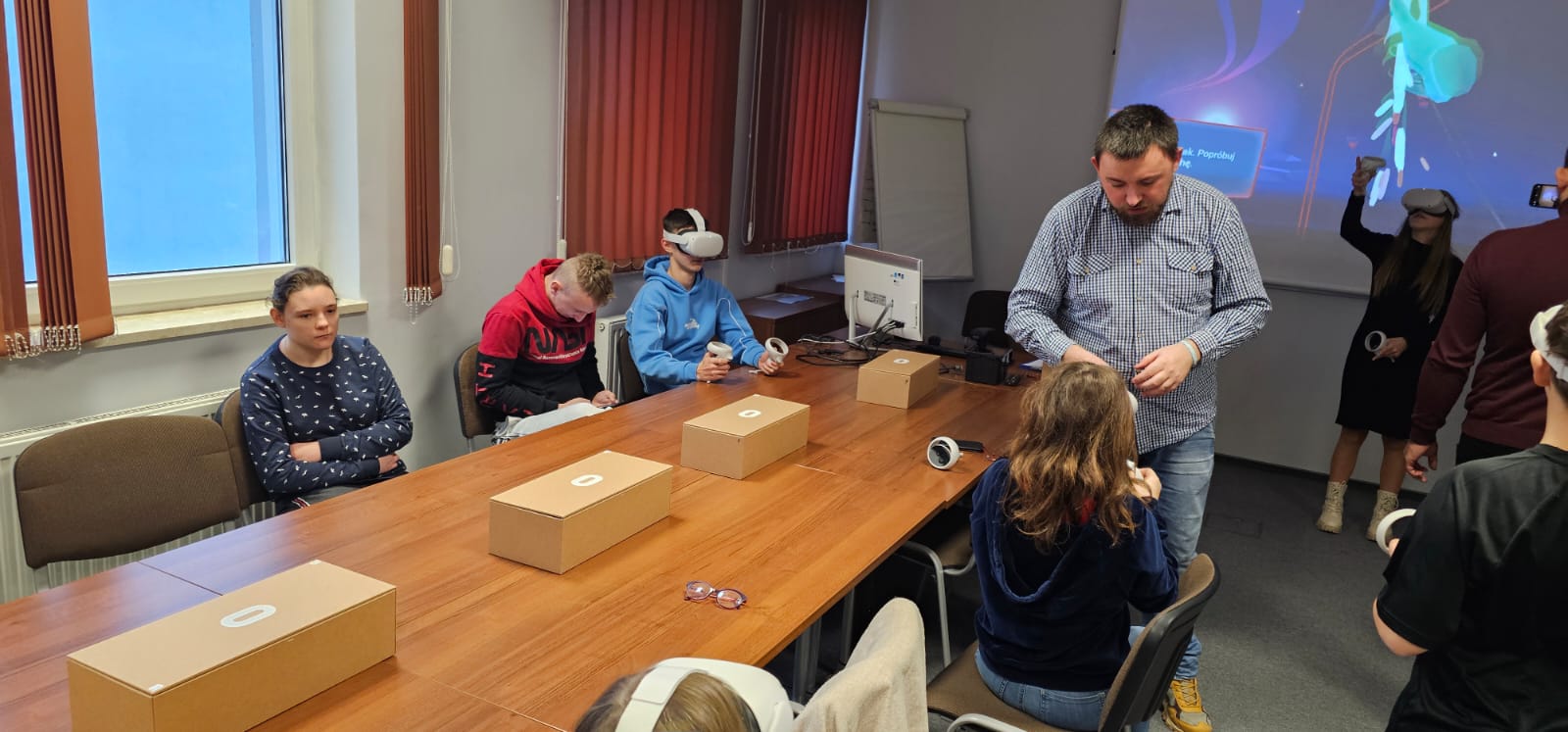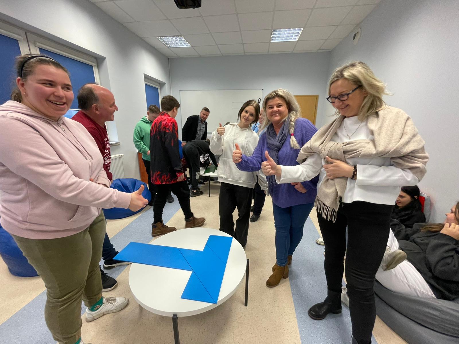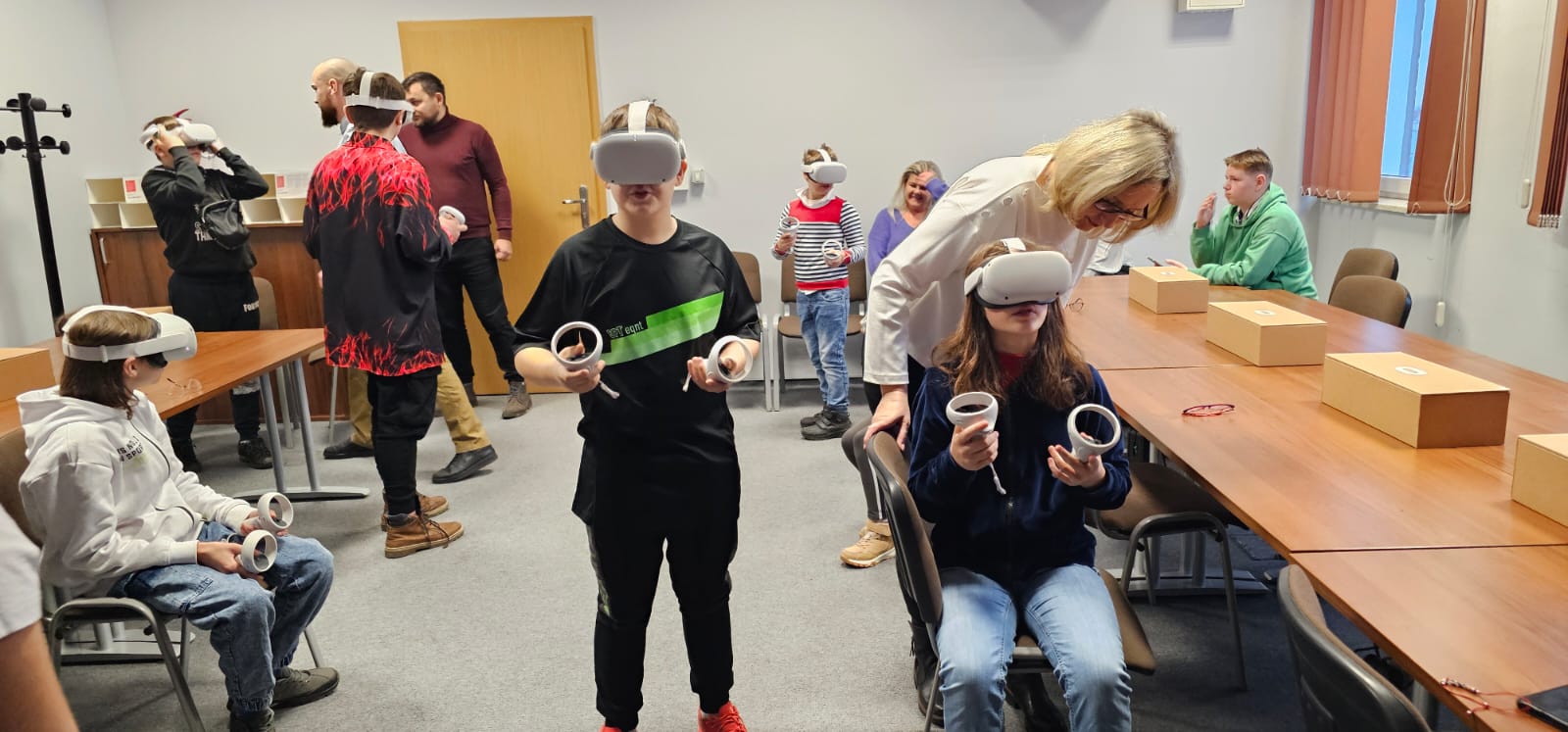 Pod opieką wychowawców uczestnicy brali udział w wydarzeniach przygotowanych przez Pracowników uczelni. Spotkanie rozpoczęło się od powitania tak znakomitych Gości przez Panią Elżbietę Modrzejewską – Pełnomocnika Dziekana ds. Osób z niepełnosprawnościami następnie młodzi adepci nauki po raz pierwszy uczestniczyli w wykładzie akademickim dotyczącym cyberbezpieczeństwa w przestrzeni szkolnej wygłoszonym przez Pana Sebastiana Wilczek. Po wykładzie rozpoczęliśmy zwiedzanie uczelni zmierzając na kolejne przygotowane warsztaty. Pokazana została nam biblioteka, Dział Obsługi Dydaktycznej, Dziekanaty oraz inne przestrzenie związane z nauką i czasem wolnym spędzonym przez studentów na uczelni. Dotarliśmy do sali dedykowanej treningom umiejętności społecznych - tam zaczęło się dopiero aktywne działanie początkowo grupowe, a następnie zespołowe. Dużo radości jak również skupienia okazało się zaliczeniem treningu. Trzecie wirtualne zajęcia przestrzenne było znane naszym wychowankom, ale nie na możliwość ich realizacji na taką skalę osób biorących udział w działaniu – nie chciało się wychodzić z tej pracowni gdzie warsztaty prowadzili Panowie Tomasz Stec i Sebastian Wilczek. Jednak pędzący czas sprawił, że powróciliśmy do miejsca początkowego czyli auli uniwersyteckiej, gdzie przygotowano dla nas test sprawdzający wiedzę ogólną, ku zdziwieniu Pani Elżbiety Modrzejewskiej i nas wychowawców nie było żadnej błędnej odpowiedzi ze strony naszej młodzieży. Etapem końcowym wizyty w Uniwersytecie WSB Merito w Opolu było złożenie sobie życzeń świątecznych oraz obdarowanie się wzajemnie upominkami. Przekazaliśmy na ręce Pani Pełnomocnik naszą magiczną choinkę spełniającą marzenia oraz kartkę z życzeniami. Wychowankowie naszego ośrodka otrzymali zestawy dla przyszłych naukowców, którymi na pewno się pochwalą w przestrzeni nie tylko szkolnej.