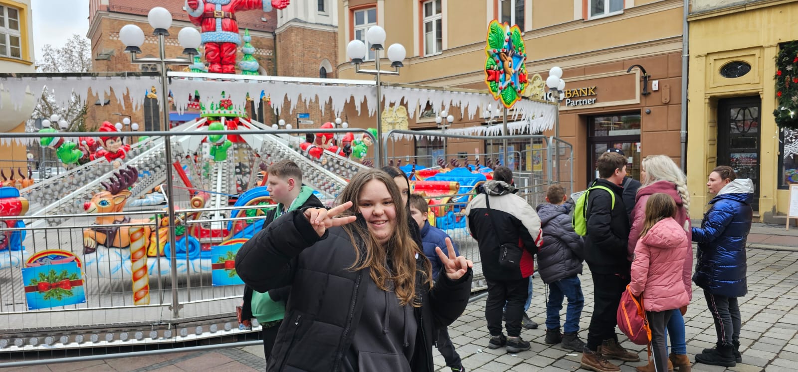 Po wizycie naukowej nastał czas na przestrzeń kulturalną, która zagospodarowana była w charakterze rekreacyjnym na Jarmarku Bożonarodzeniowym w sercu Opola – czyli na Opolskim rynku. Nie tyle stanowiska ze świątecznymi gadżetami co foto-budka okazała się punktem, skradającym serca naszych podopiecznych.