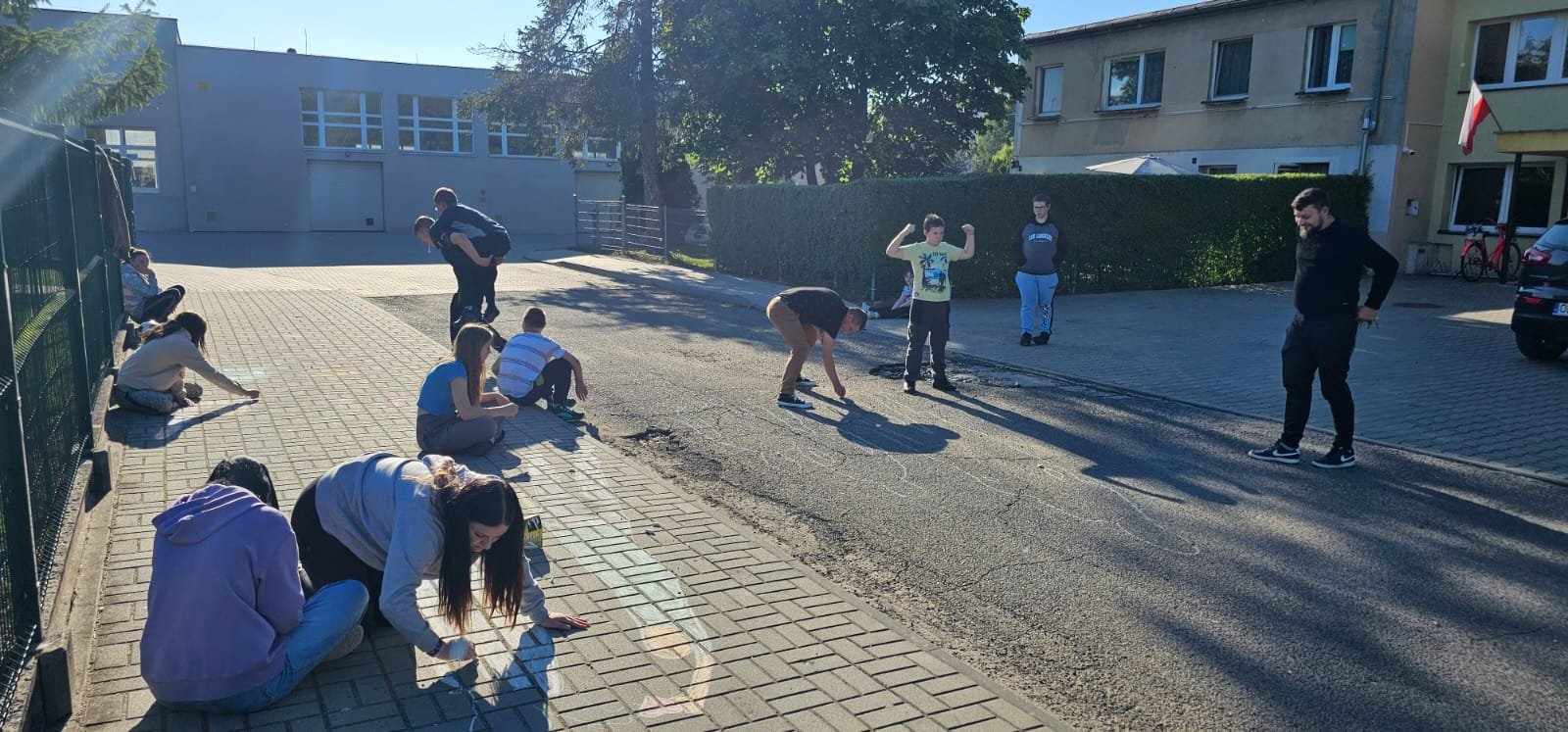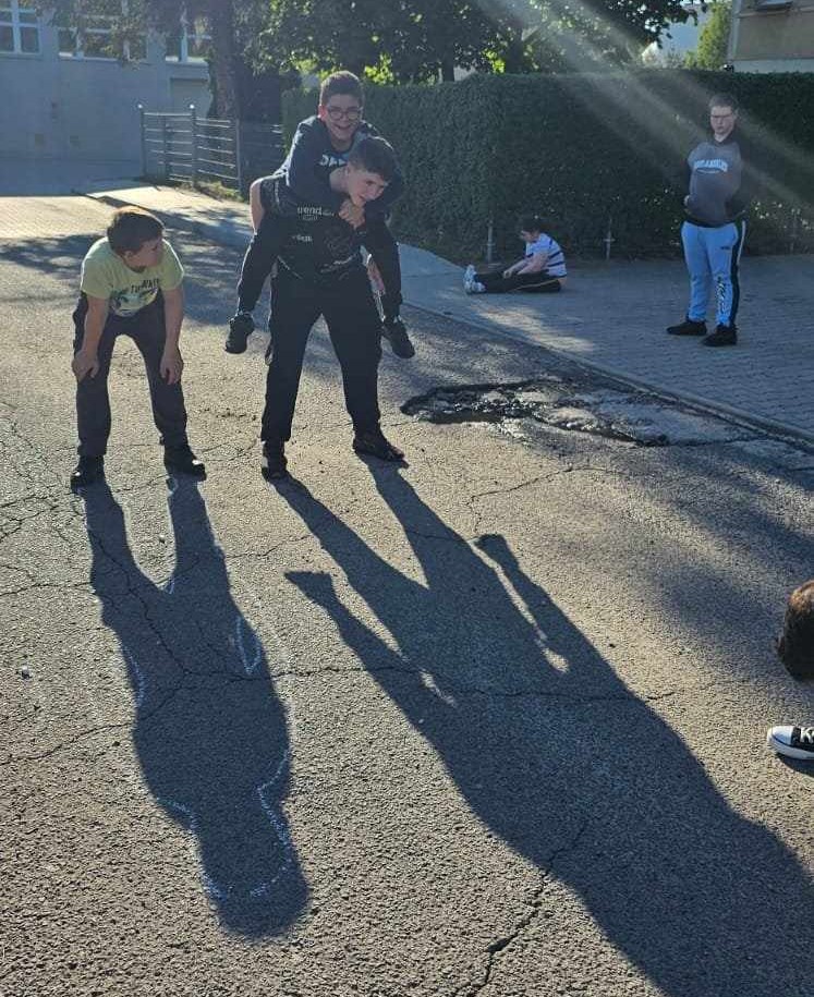 Wychowankowie za pomocą kolorowej kredy odrysowywani swoje cienie, które udało nam się uchwycić po wielu deszczowych dniach dzięki pięknej pogodzie. Następnie warsztat koncentrował się wokół dyskusji i pogadanki gdzie szukaliśmy odpowiedzi na wiele pytań: Postawione pytania do wychowanków wybrzmiały następująco: Czym jest dla mnie mój cień? Z jakimi emocjami jest postrzegany? Jak znaleźć w sobie siłę i odwagę na odkrycie w sobie pozytywnych aspektów naszych osobowości? Jak uwierzyć we własne możliwości, jak nie bać się zmian? Jak nadać wyjątkowości swojej egzystencji? Jak odnaleźć swoją drogę, jak nie bać się pójść za głosem swoich marzeń? Jak wyjść wreszcie z cienia, stanąć w słońcu, odetchnąć pełną piersią i prawdziwie zacząć żyć?