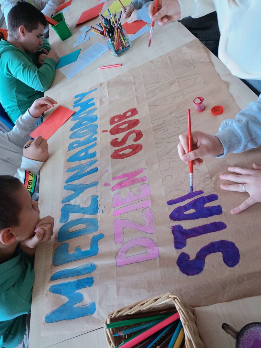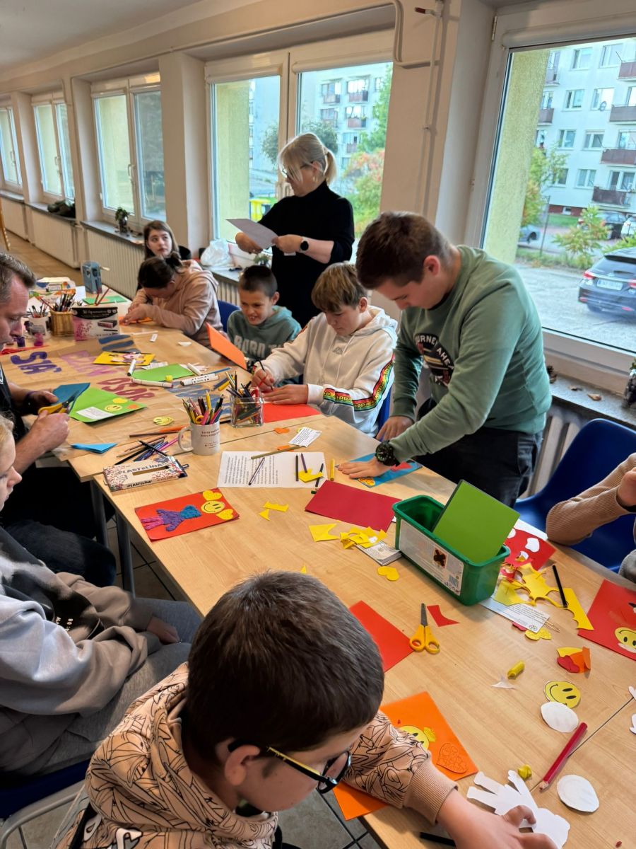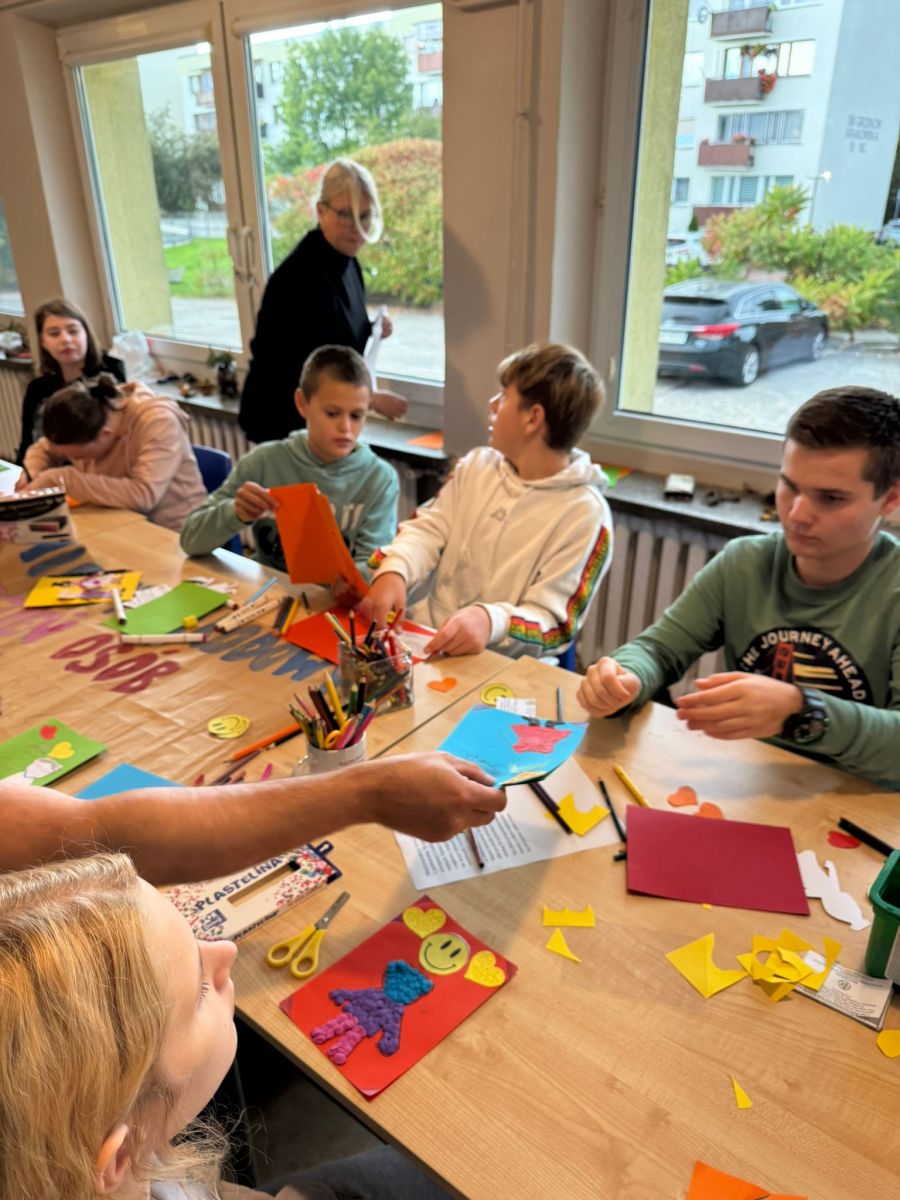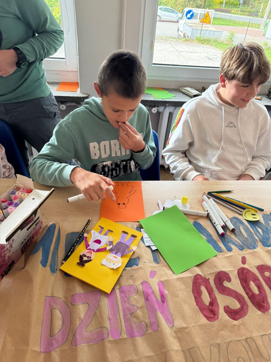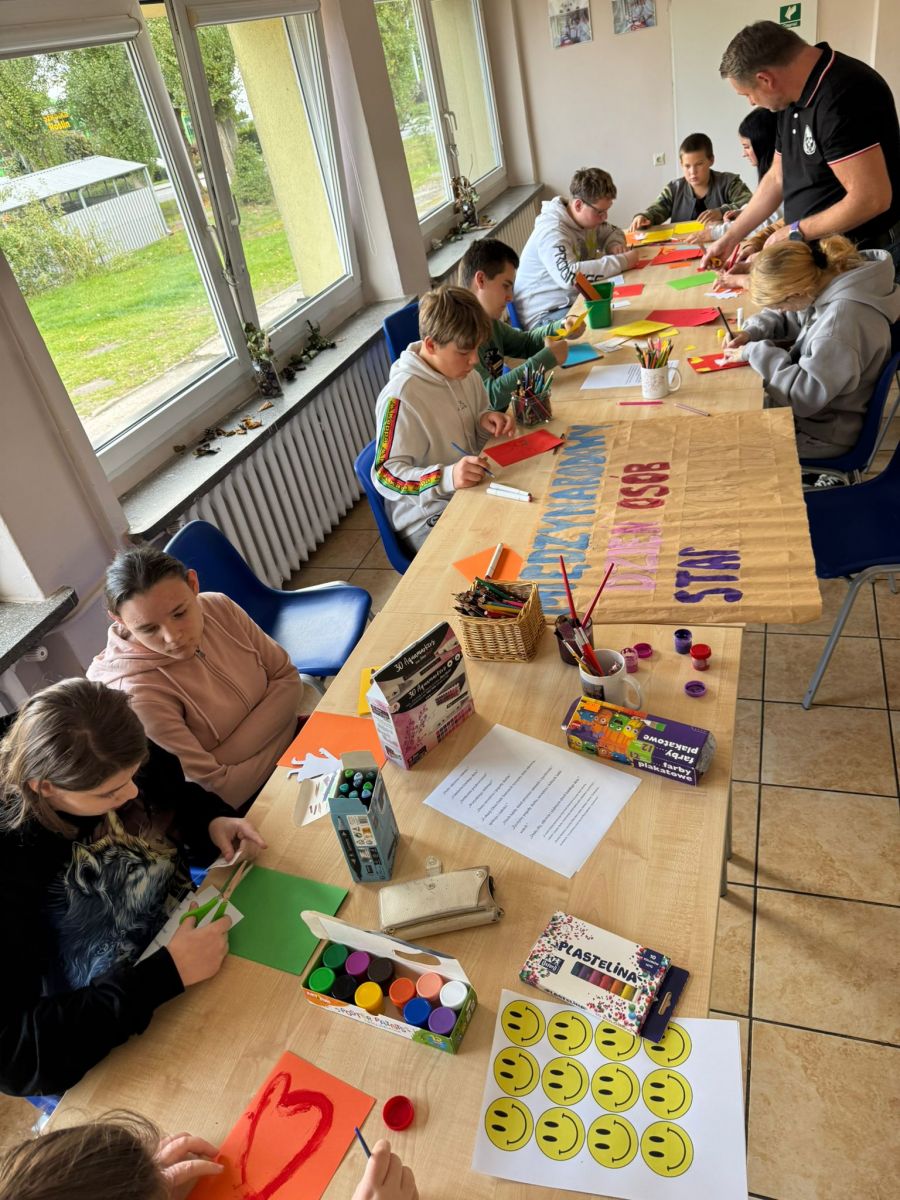 W zajęciach wzięły udział trzy grupy wychowawcze. Nasi wychowankowie z dużym zaangażowaniem przygotowywali plakat i laurki różnymi technikami – malowali farbami, rysowali kredkami, wyklejali plasteliną, ozdabiali serduszkami i uśmiechniętymi buźkami oraz wklejali życzenia. Każdy mógł wybrać sposób pracy odpowiedni dla siebie, dzięki czemu powstały kolorowe i wyjątkowe prace. Twórcze działania pozwoliły wychowankom rozwijać kreatywność, rozładowywać emocje oraz kształtować szacunek i empatię wobec osób starszych.