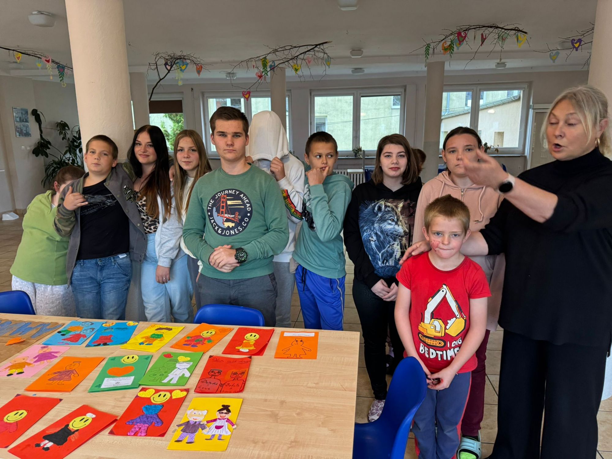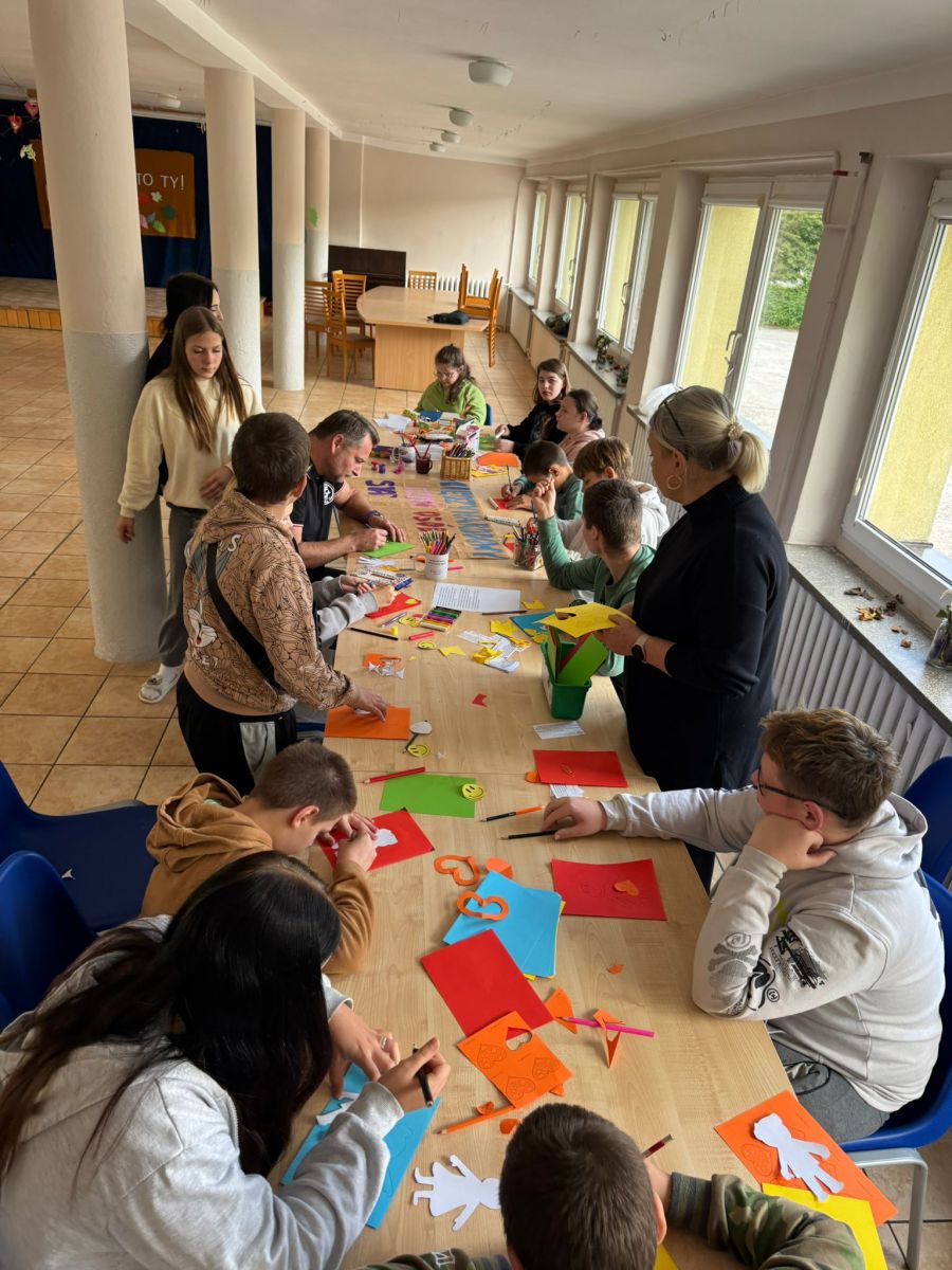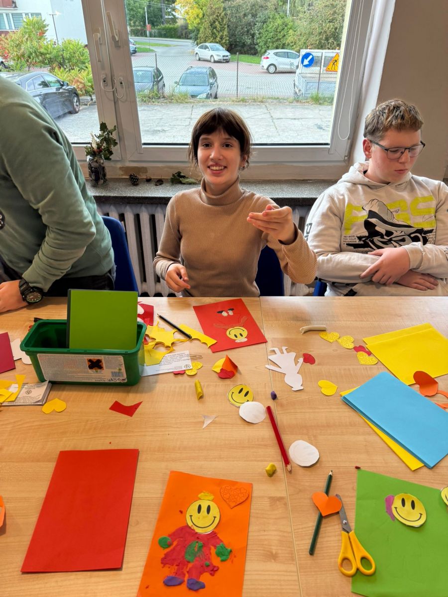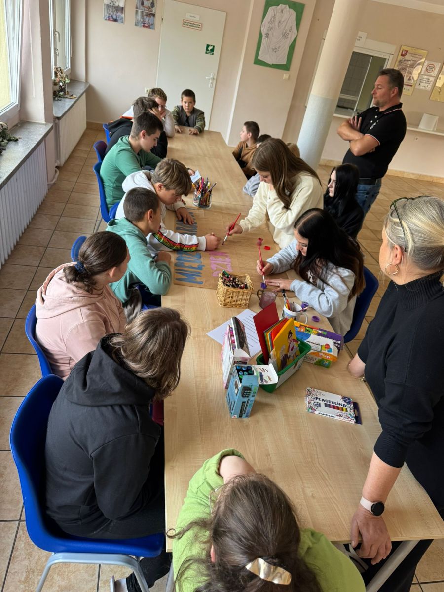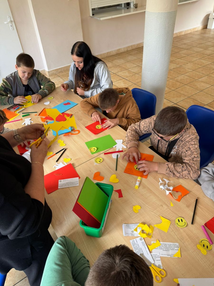 W zajęciach wzięły udział trzy grupy wychowawcze. Nasi wychowankowie z dużym zaangażowaniem przygotowywali plakat i laurki różnymi technikami – malowali farbami, rysowali kredkami, wyklejali plasteliną, ozdabiali serduszkami i uśmiechniętymi buźkami oraz wklejali życzenia. Każdy mógł wybrać sposób pracy odpowiedni dla siebie, dzięki czemu powstały kolorowe i wyjątkowe prace. Twórcze działania pozwoliły wychowankom rozwijać kreatywność, rozładowywać emocje oraz kształtować szacunek i empatię wobec osób starszych.