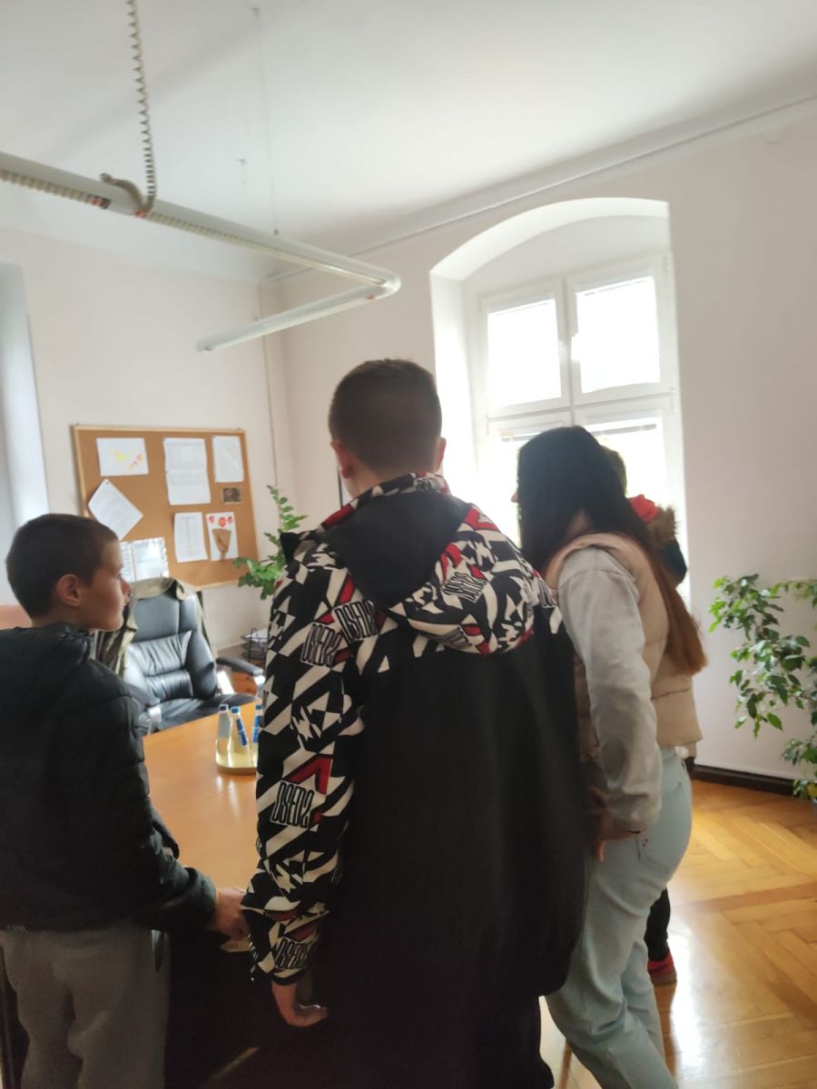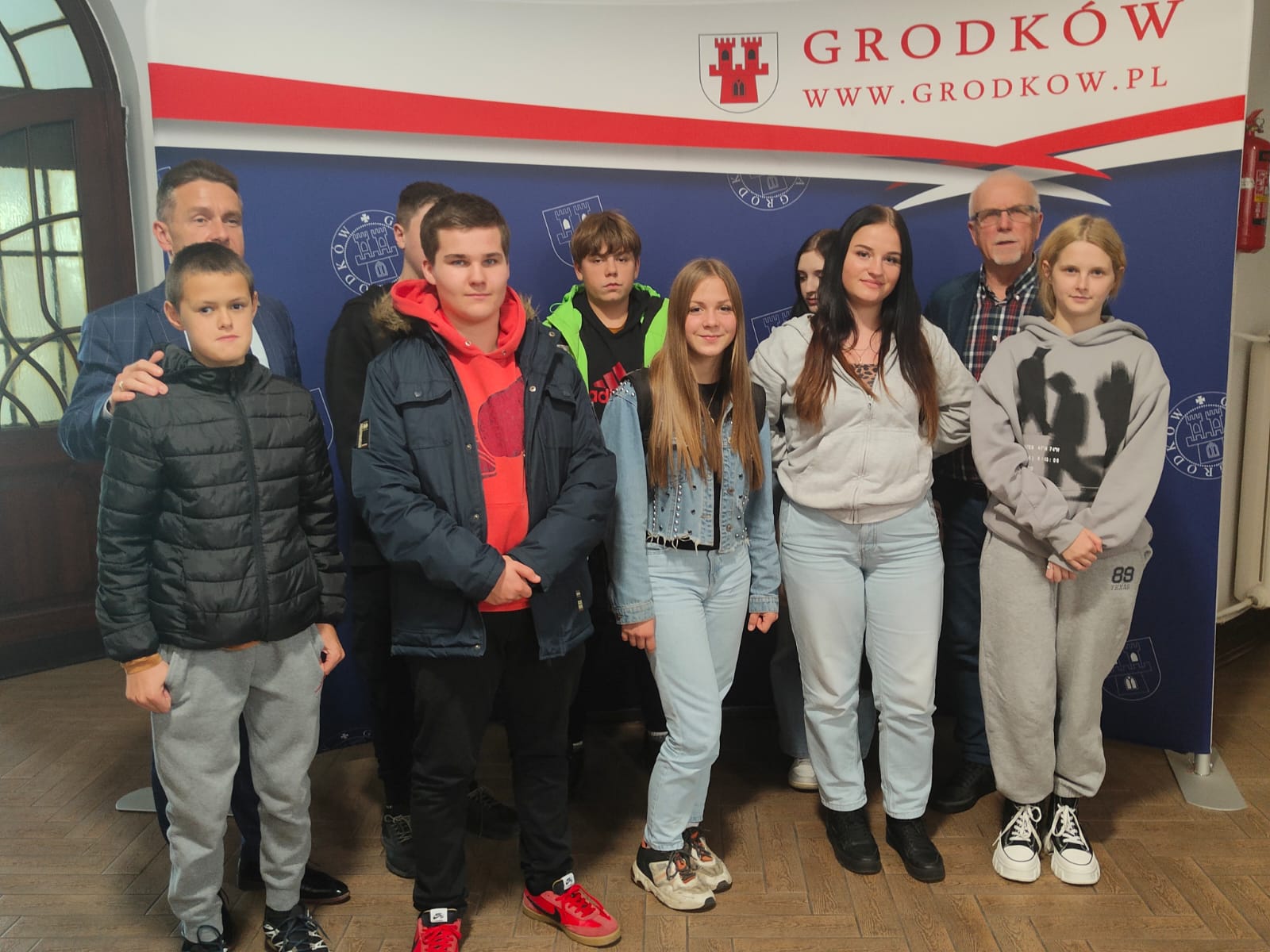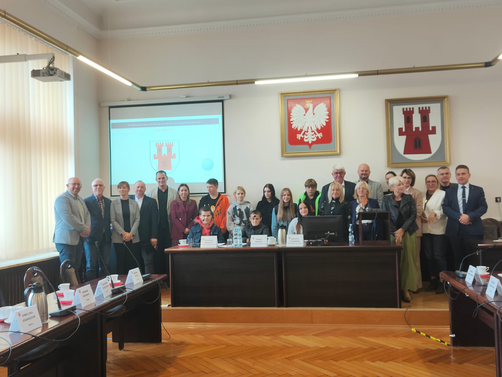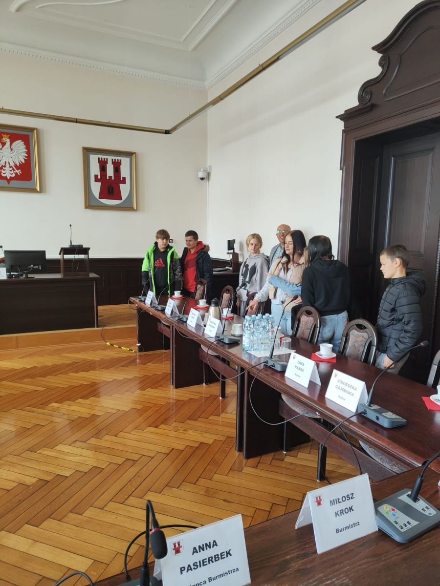 Na zakończenie wizyty wykonaliśmy wspólne zdjęcia, odbyliśmy rozmowy i podzieliliśmy się spostrzeżeniami. Nie zabrakło także chwili na przymierzenie się do fotela burmistrza oraz przewodniczących Rady.