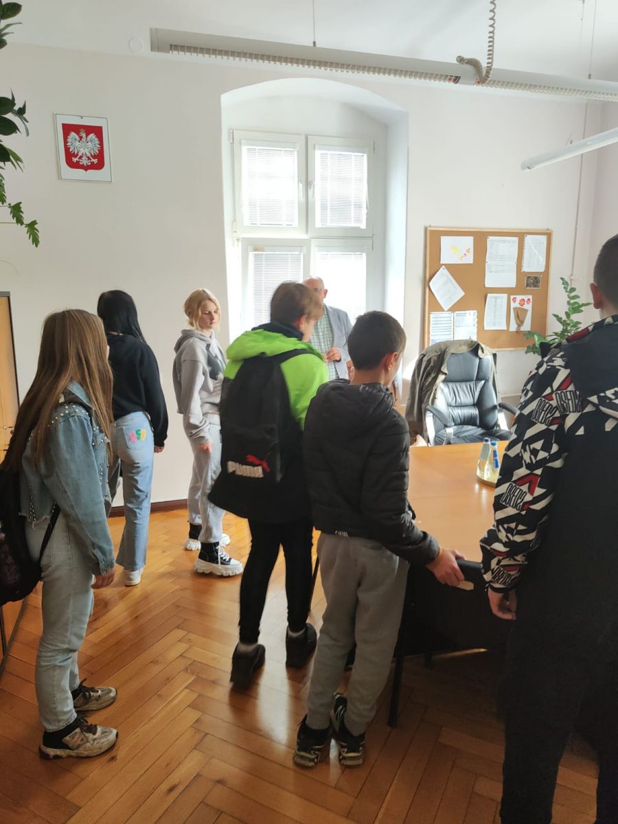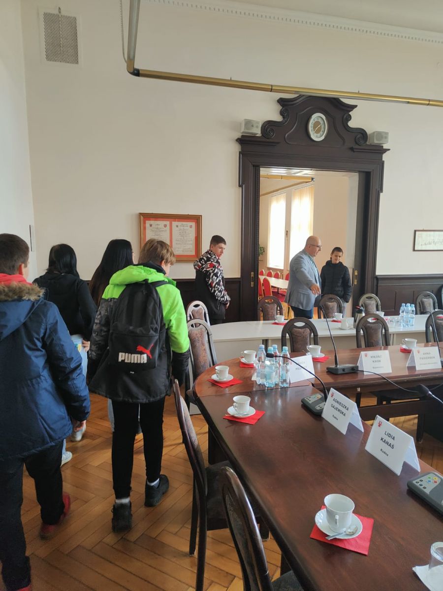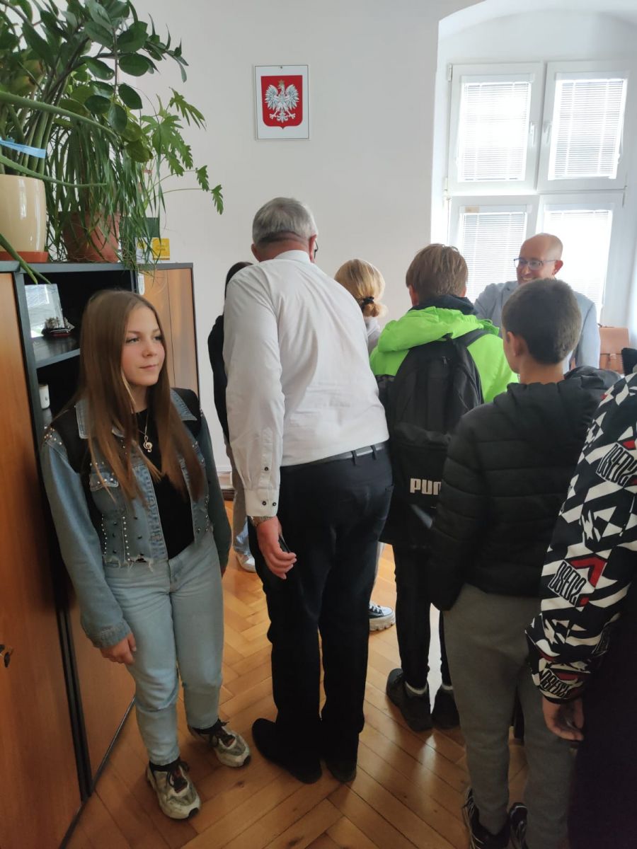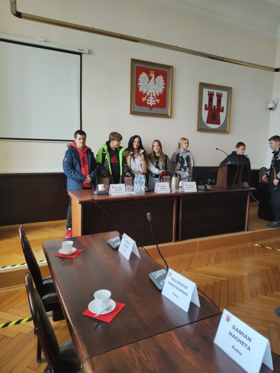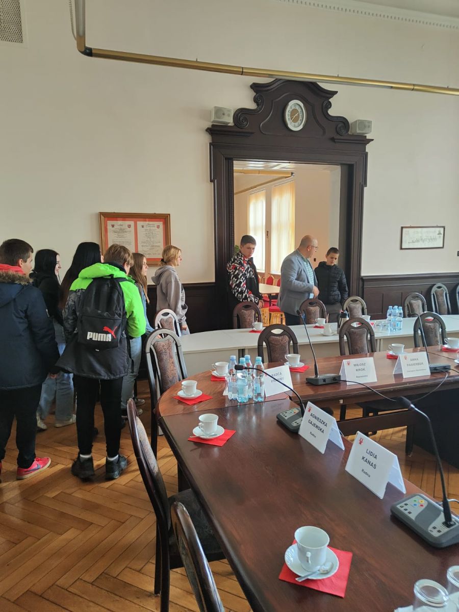 Dodatkową atrakcją była wizyta w gabinetach burmistrza, sekretarza oraz pani skarbnik. Mieliśmy również okazję poznać radnych uczestniczących w obradach.