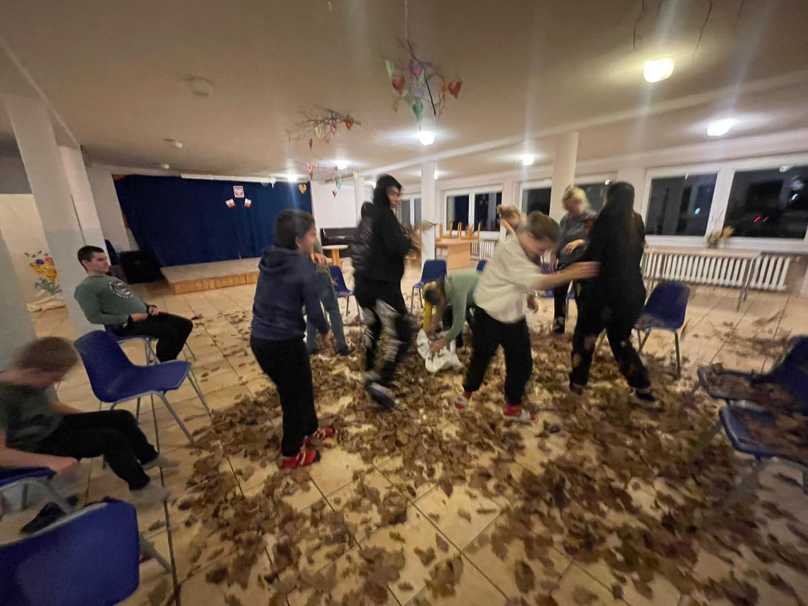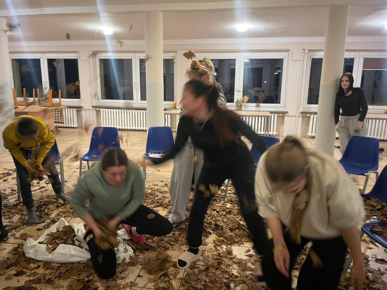 Zwieńczeniem obchodów Światowego Dnia Mycia Rąk była radosna „bitwa na liście”. Ta pełna śmiechu i twórczego bałaganu zabawa zakończyła się wspólnym sprzątaniem, dokładnym i prawidłowym myciem dłoni. Wychowankowie przypomnieli sobie w ten sposób, że po dobrej zabawie zawsze należy zadbać o czystość.