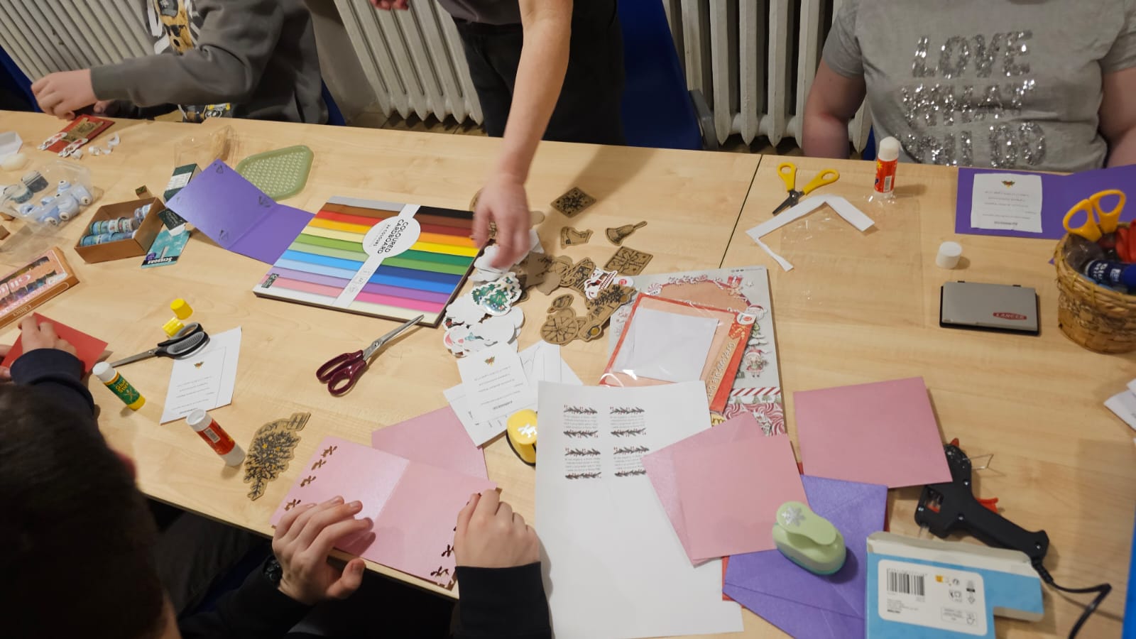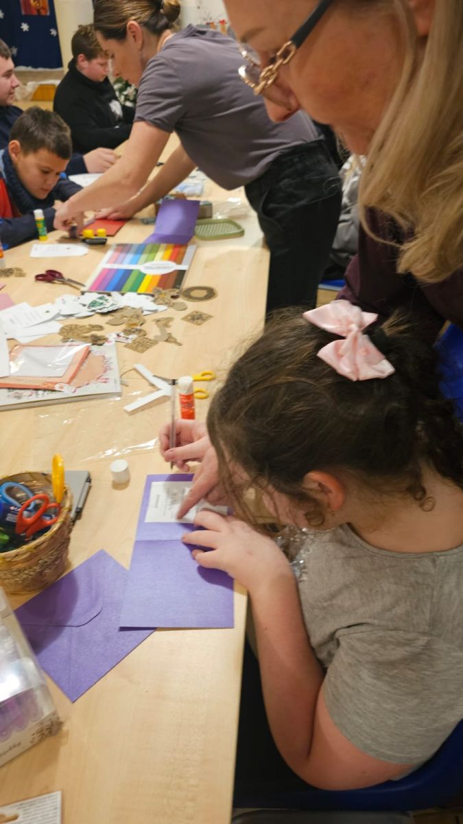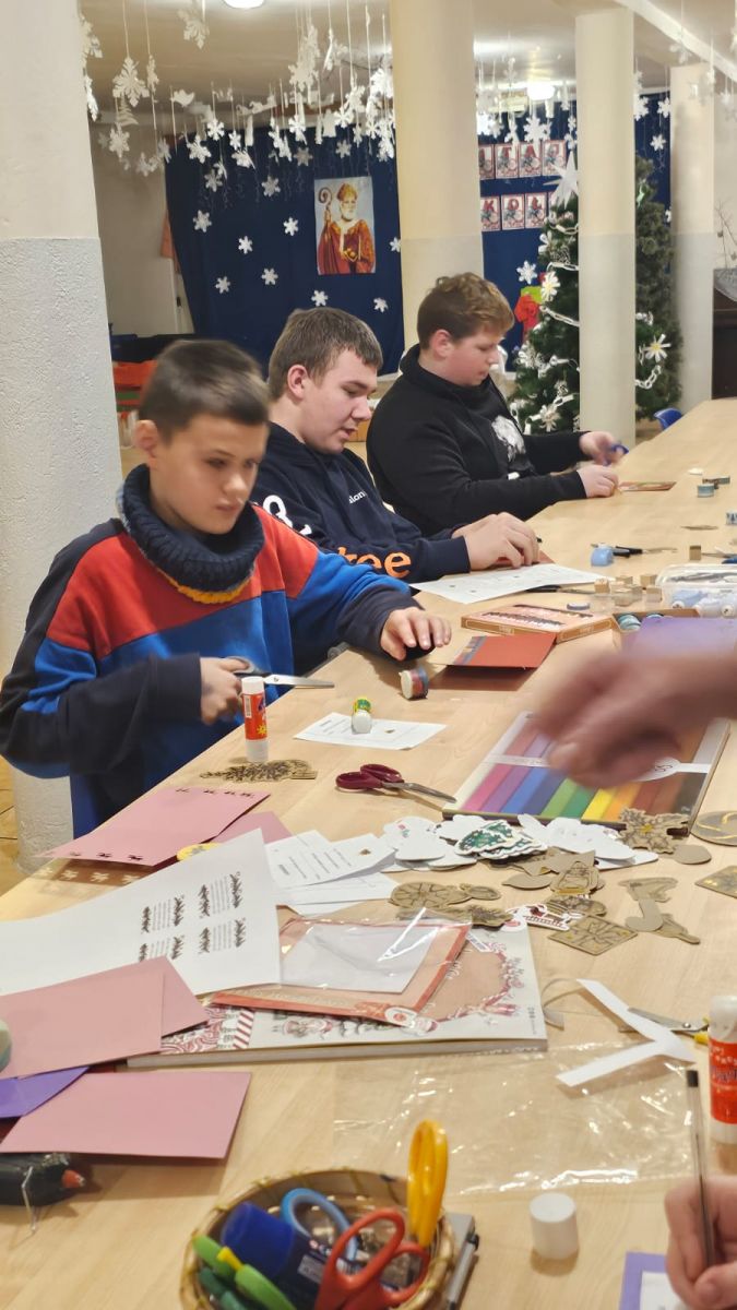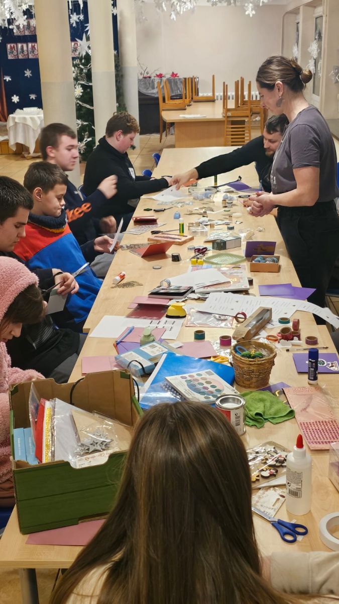 Pod okiem wychowawców wychowankowie własnoręcznie tworzyli niepowtarzalne kartki świąteczne. Każda z nich była małym dziełem sztuki, w które młodzi artyści włożyli całe swoje serce. Na kartkach znalazły się ciepłe życzenia oraz zaproszenia dla rodziców na uroczystą kolację wigilijną, połączoną z przygotowywanym przez dzieci występem artystycznym.