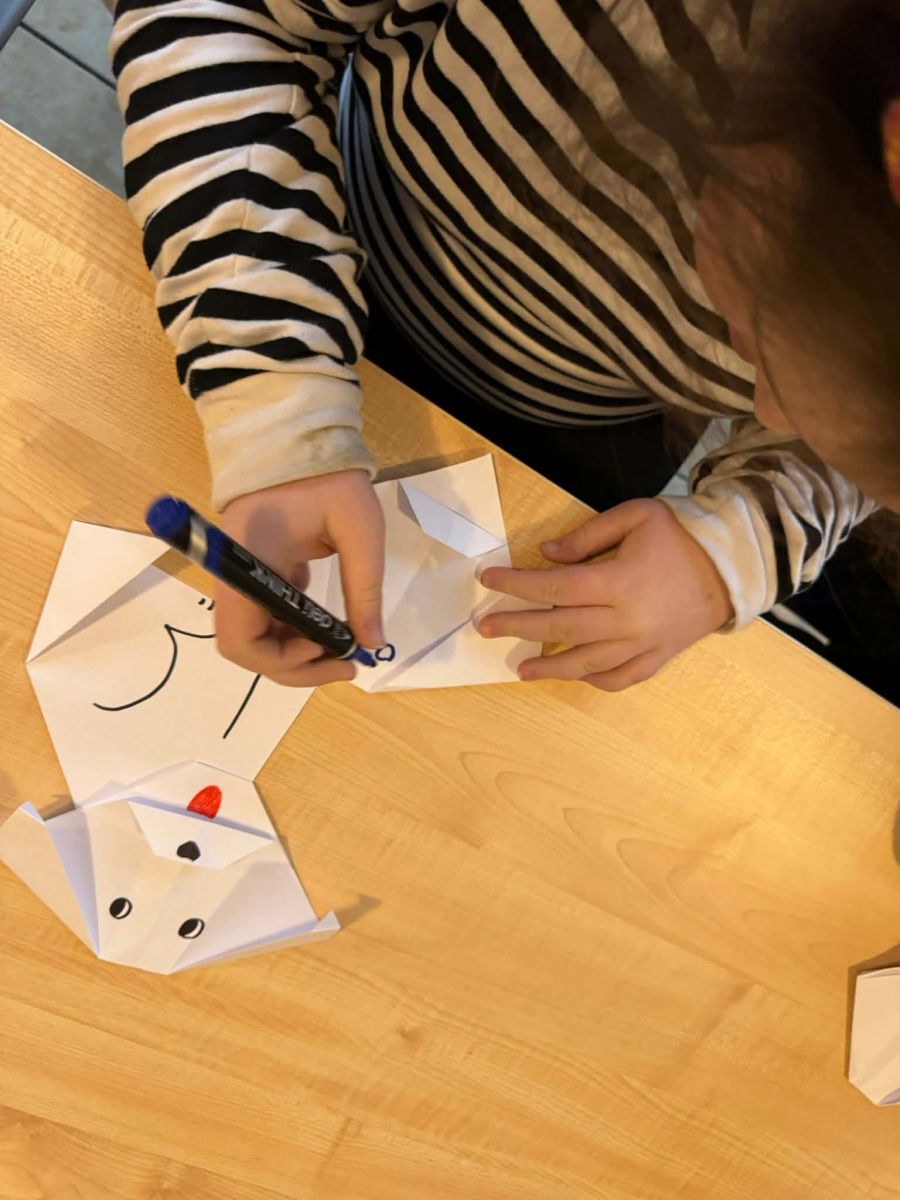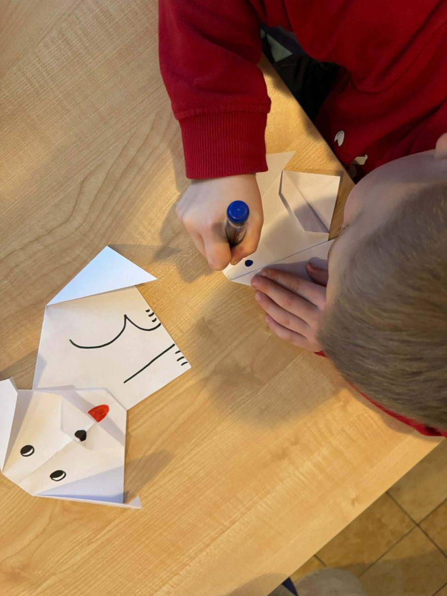 Dnia 27.01.2025 r. w grupach wychowawczych odbyły się kolejne zajęcia z origami – japońskiej sztuki składania papieru. W zajęciach uczestniczyły wszystkie trzy grupy wychowawcze, co sprzyjało integracji wychowanków oraz budowaniu pozytywnych relacji rówieśniczych.