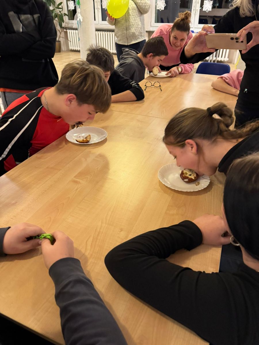 Dnia 29 stycznia 2026 r. odbyły się zajęcia pod nazwą „Dzień Pączka”, w których brały udział wszystkie grupy wychowawcze. Zorganizowano wiele konkurencji, m.in. zdobienie pączków, jedzenie pączków oraz przenoszenie przedmiotów za pomocą balona i kubeczka. Wyłoniono zwycięzców, którym serdecznie gratulujemy.
