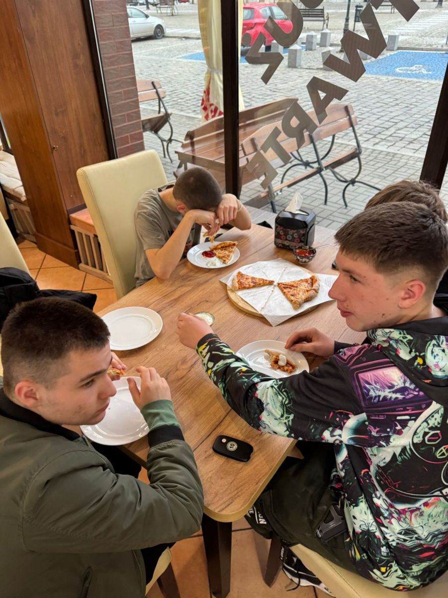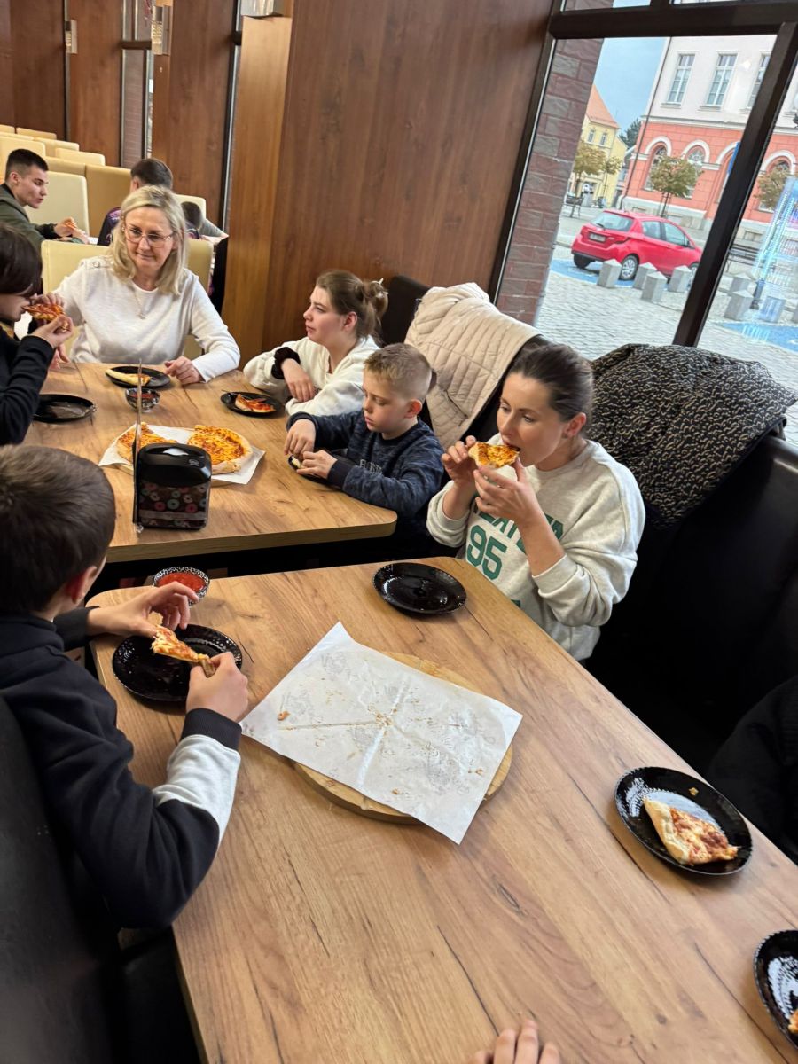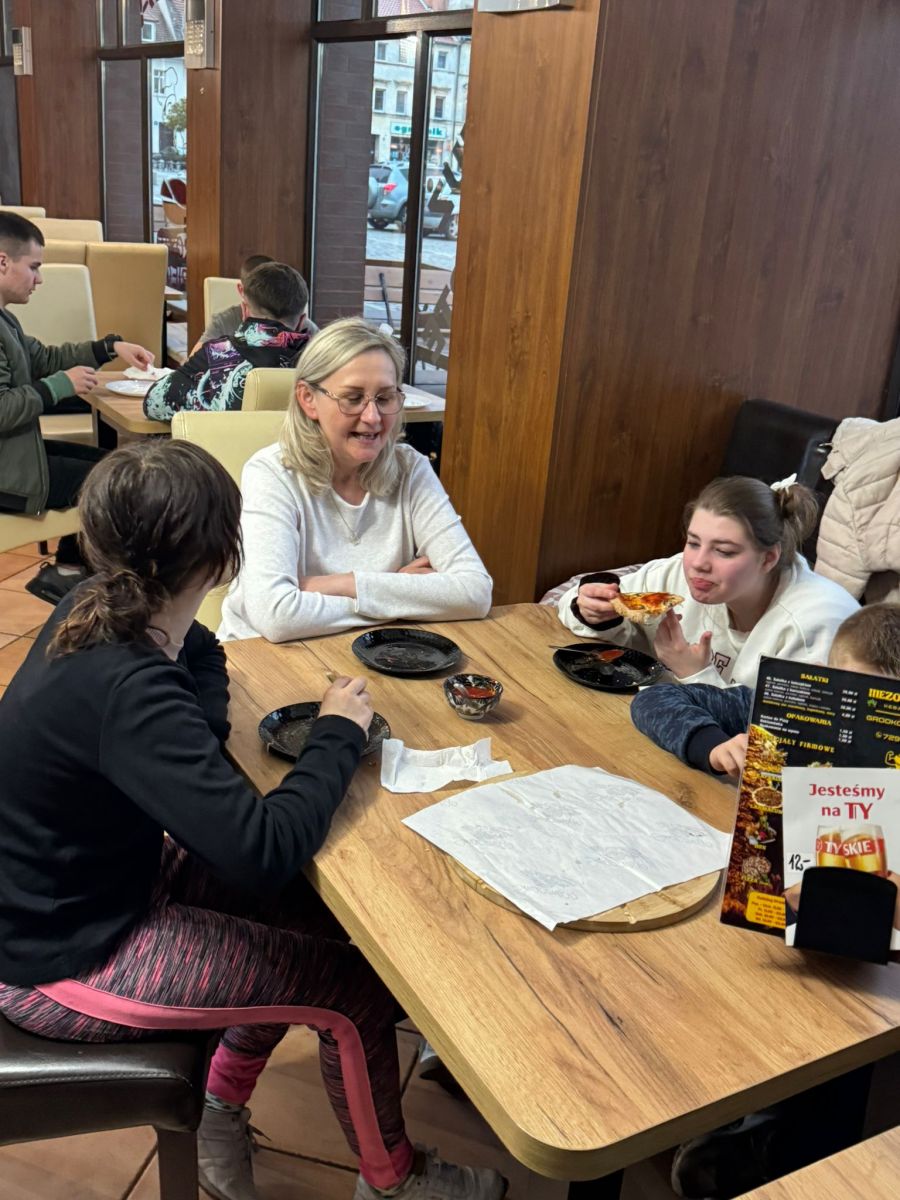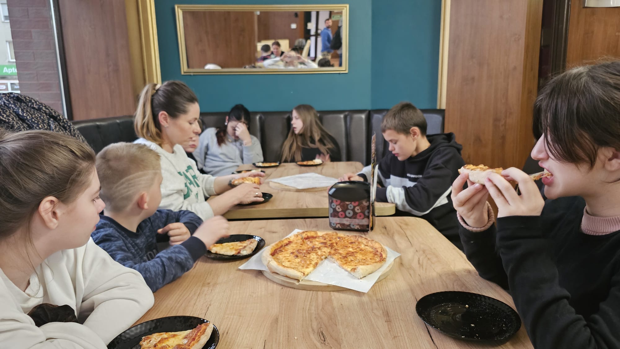 Wyjście z wychowankami do restauracji na pizzę w dniu 20.04.2026 r. zostało zorganizowane jako forma nagrody za ich zaangażowanie i udział w przedstawieniu. Celem wyjścia było nie tylko wyróżnienie uczestników, ale także kształtowanie umiejętności społecznych i życiowych.
