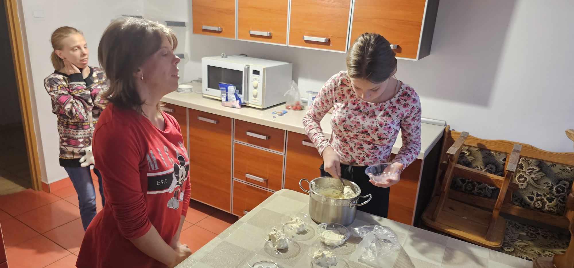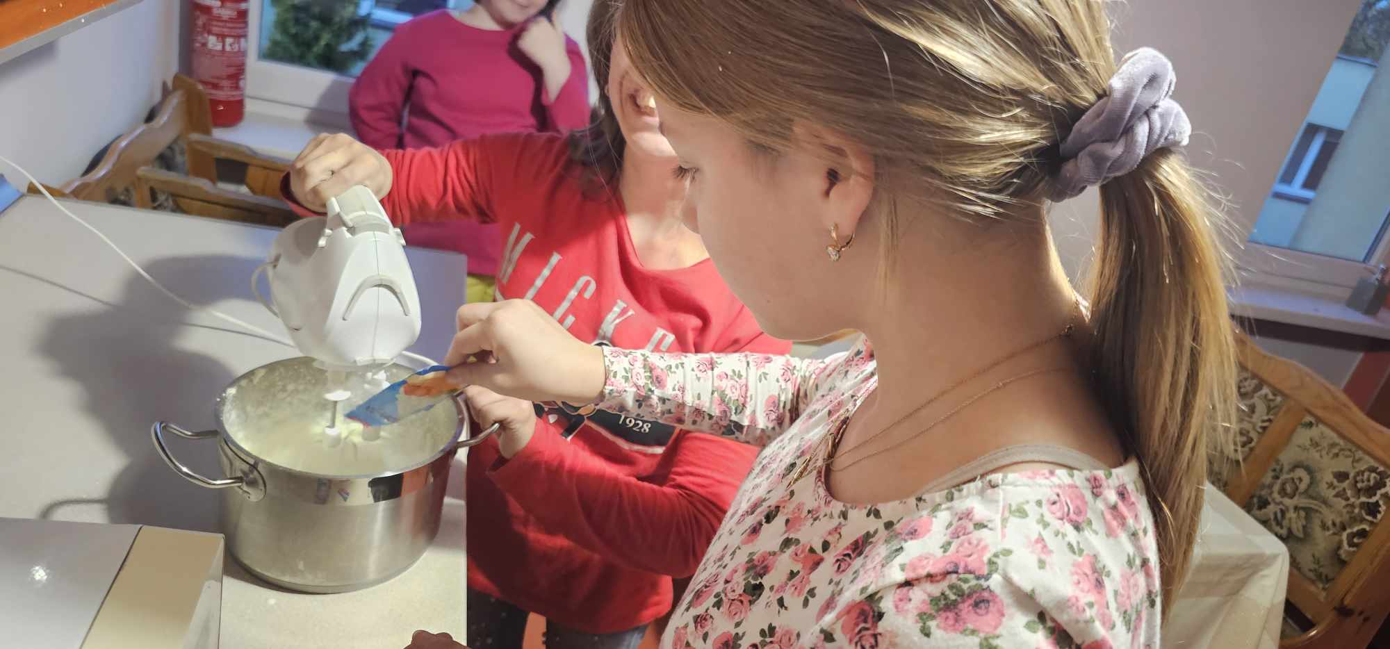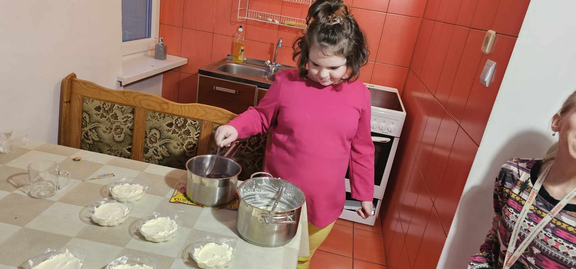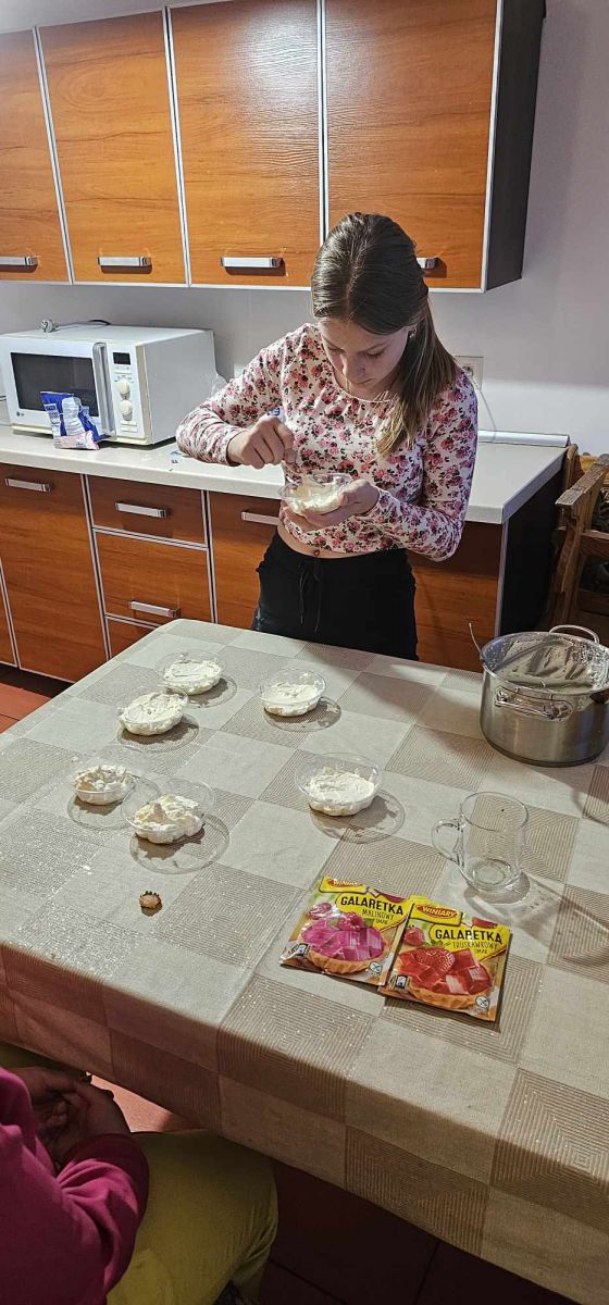 Po rozmowach przyszedł czas na działanie. Dziewczęta przygotowały smaczne i estetycznie wykonane deserkiw barwach narodowych, które wspólnie degustowały.