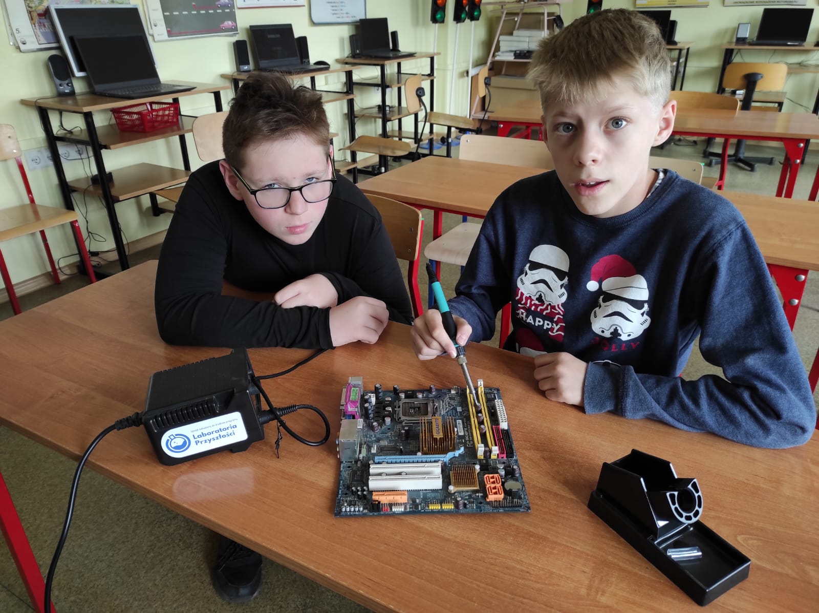 Klasa 7 w ramach lekcji techniki uczy się wykonywać połączenia dwóch metali za pomocą lutowania. Na płytkach elektronicznych instalowali i usuwali podstawowe elementy, które znajdują się w każdym urządzeniu elektronicznym. Okazało się, że nauka lutowania to nic trudnego.
