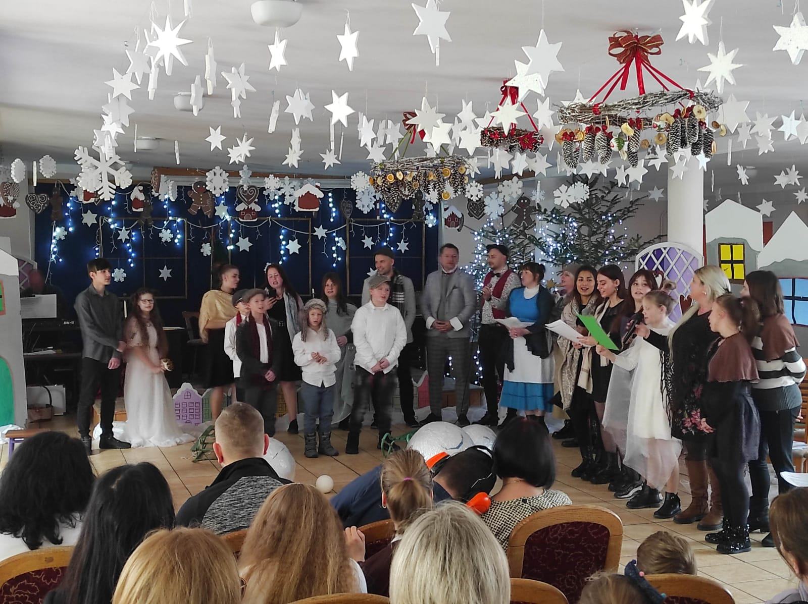 Społeczność szkolna, nauczyciele, pracownicy szkoły dzieci i młodzież mogli dzisiaj zobaczyć spektakl teatralny pt. „Opowieść wigilijna”Ch. Dickens’a.